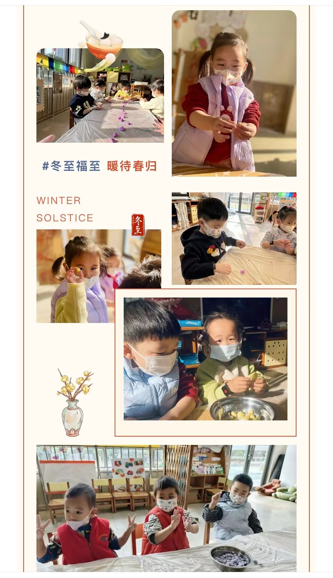 值此冬至佳节,平江新城幼儿园祝愿所有宝贝们冬至安康,在美食与陪伴中快乐成长;祝愿各位家长朋友们阖家团圆,暖冬常伴;愿每一个家庭都能在这寒冷的冬日里,收获满满的爱与温暖,静待春暖花开~