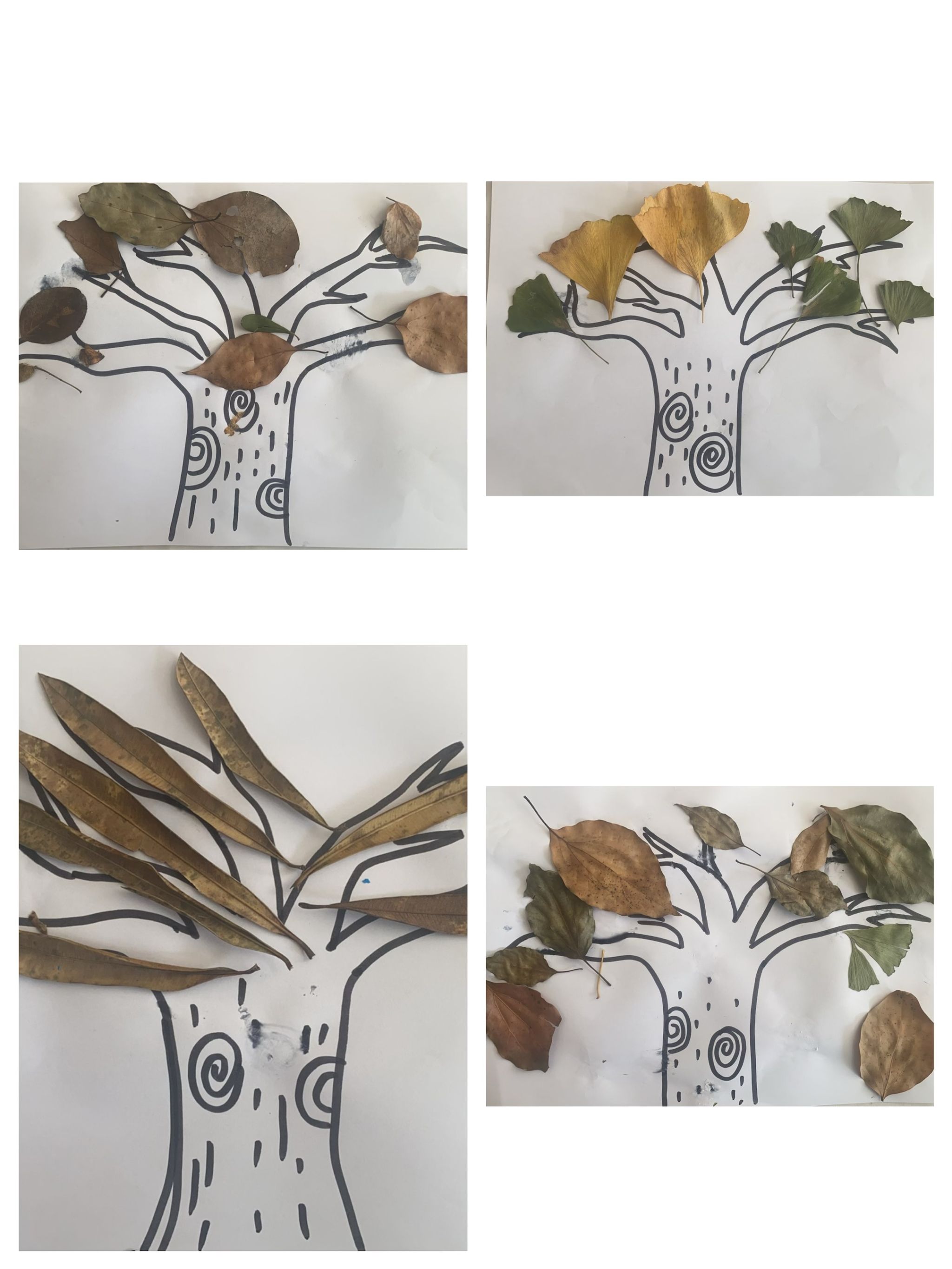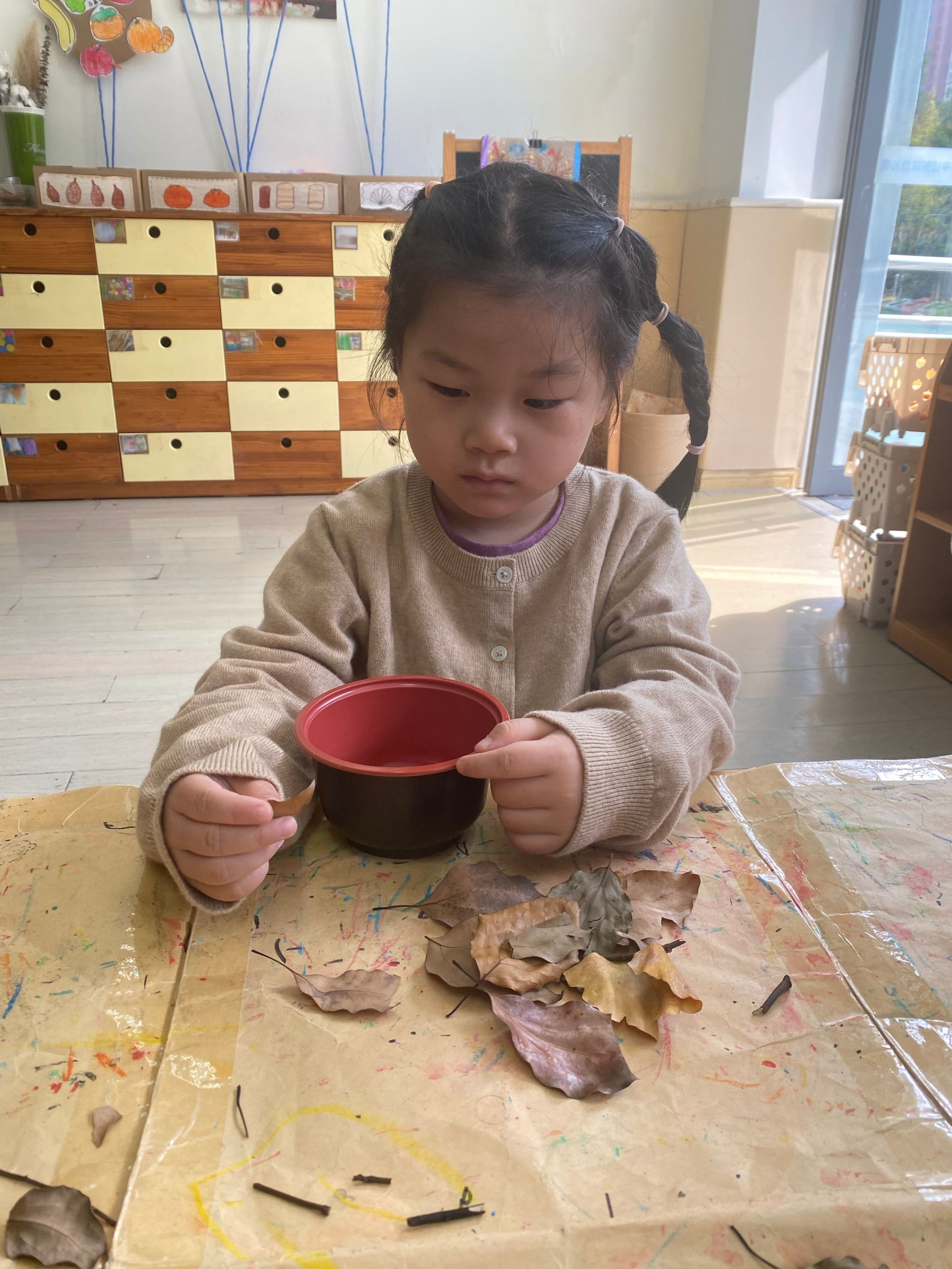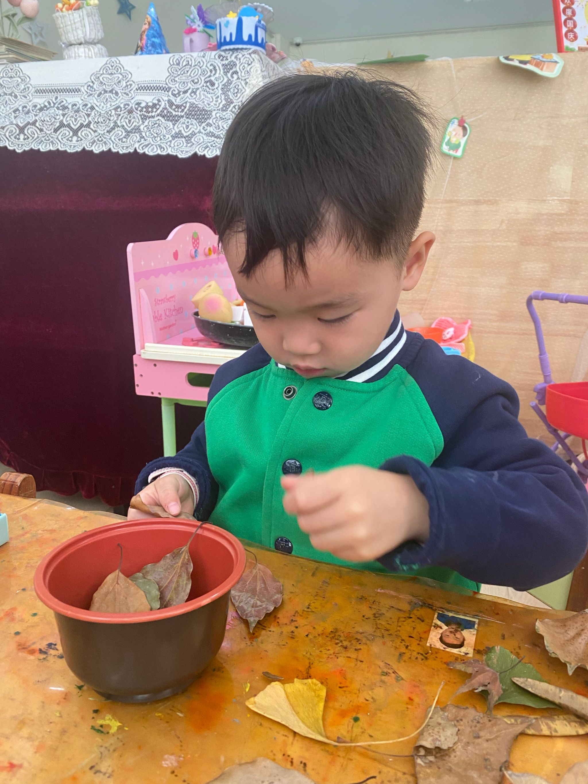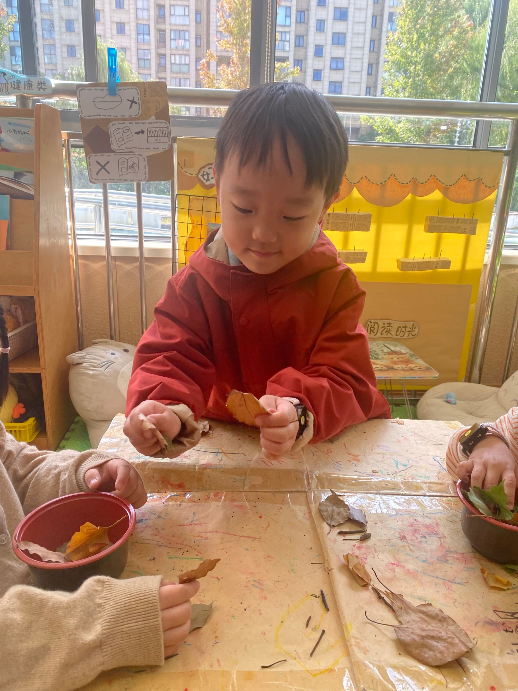 小朋友们观察各种树叶的外形特征,并将相同的树叶进行分类放好。