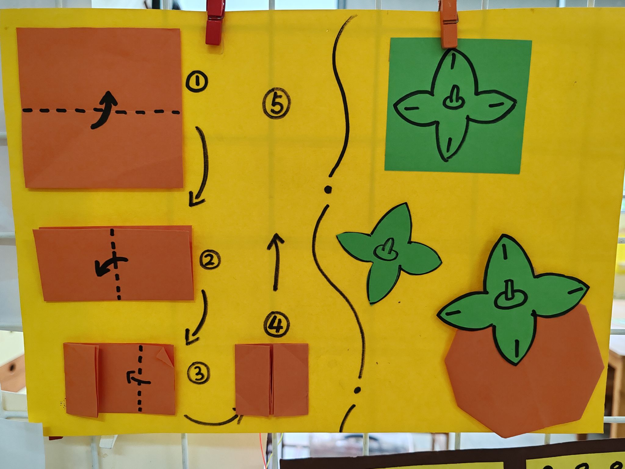秋天到,柿子大丰收,让我们用自己的巧手折出美丽的“柿子”装点教室吧!