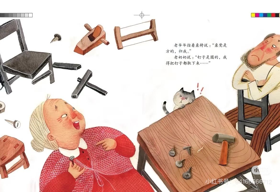 故事里的老爷爷和老奶奶都有自己的偏好:老爷爷喜欢方形物品,老奶奶喜欢圆形物品。