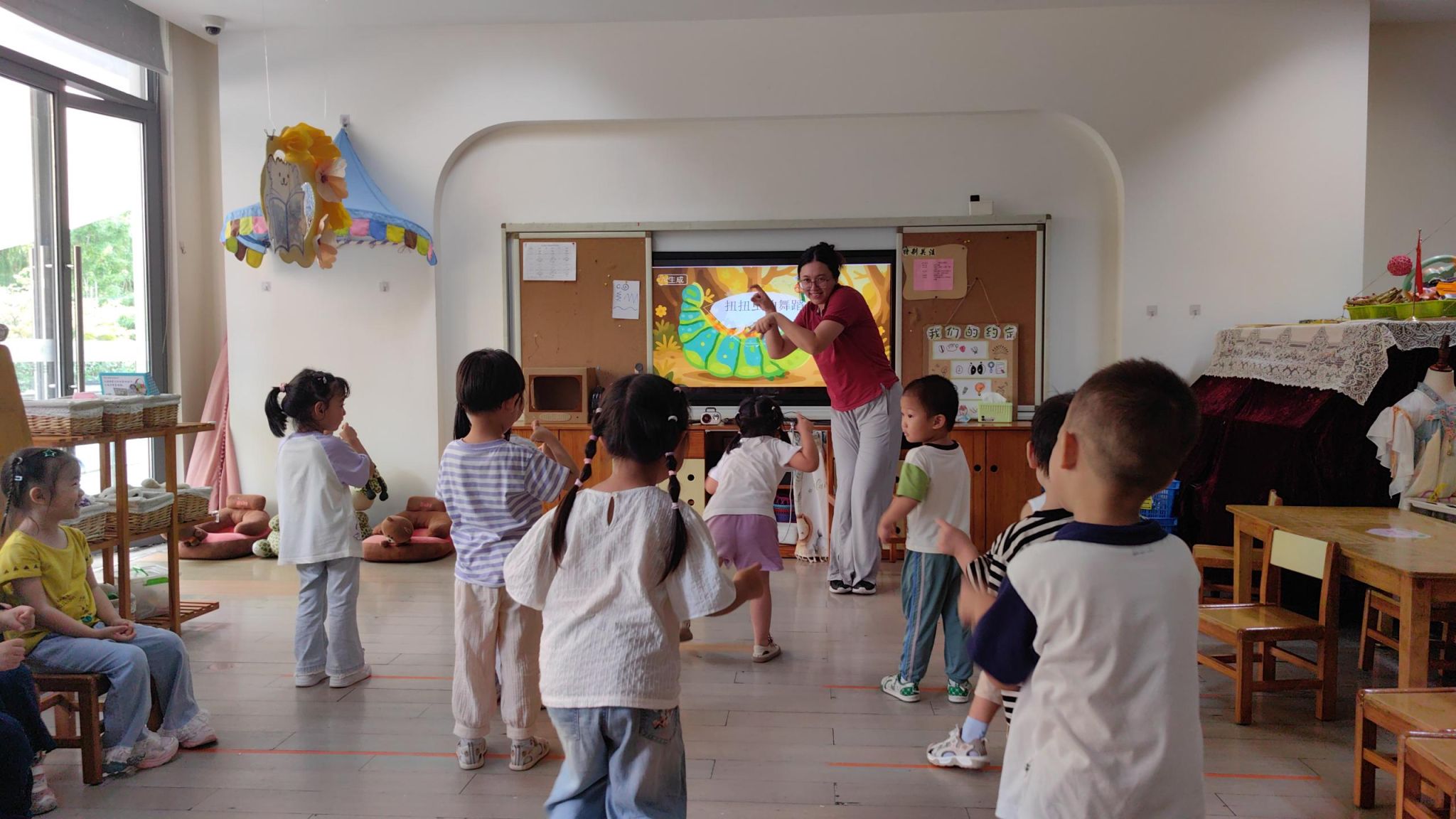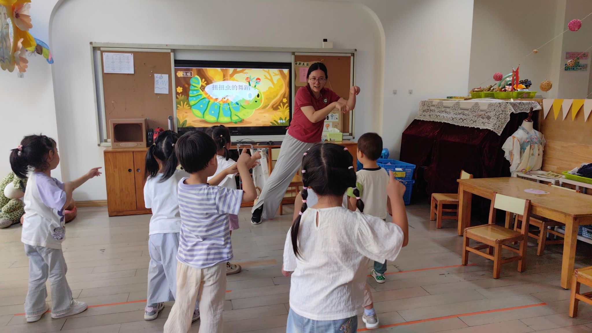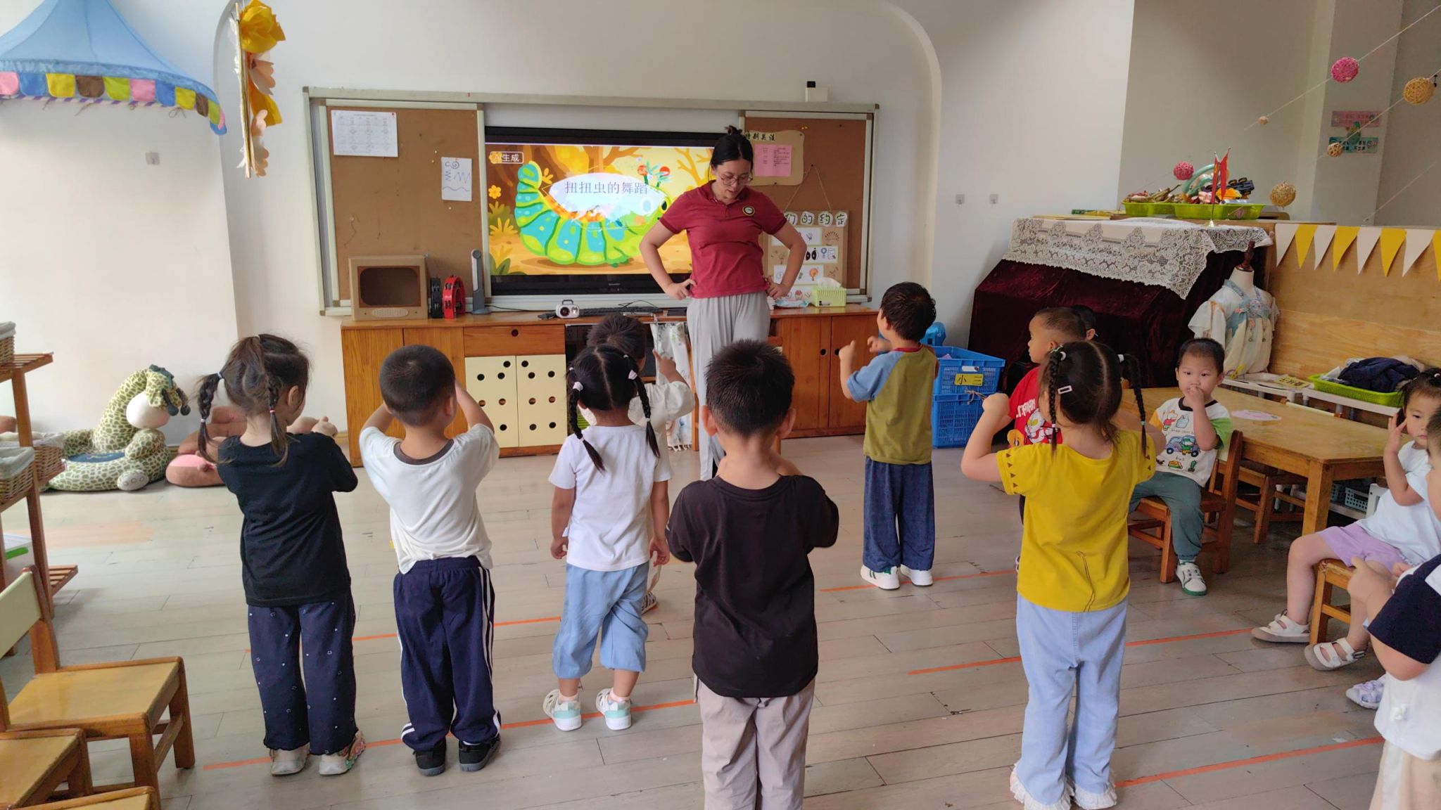 今天宝贝们化身一条条可爱的“扭扭虫”,用手指、手臂、躯干的扭动来表现“扭扭虫的舞蹈”。宝贝们随着音乐有节奏地扭动身体,体验与小伙伴一起跳舞的快乐。