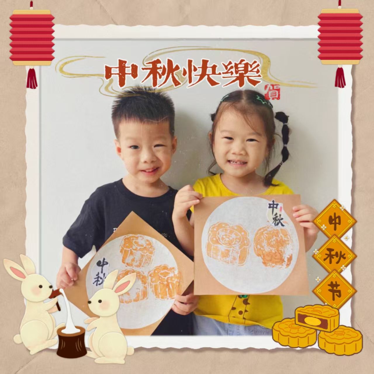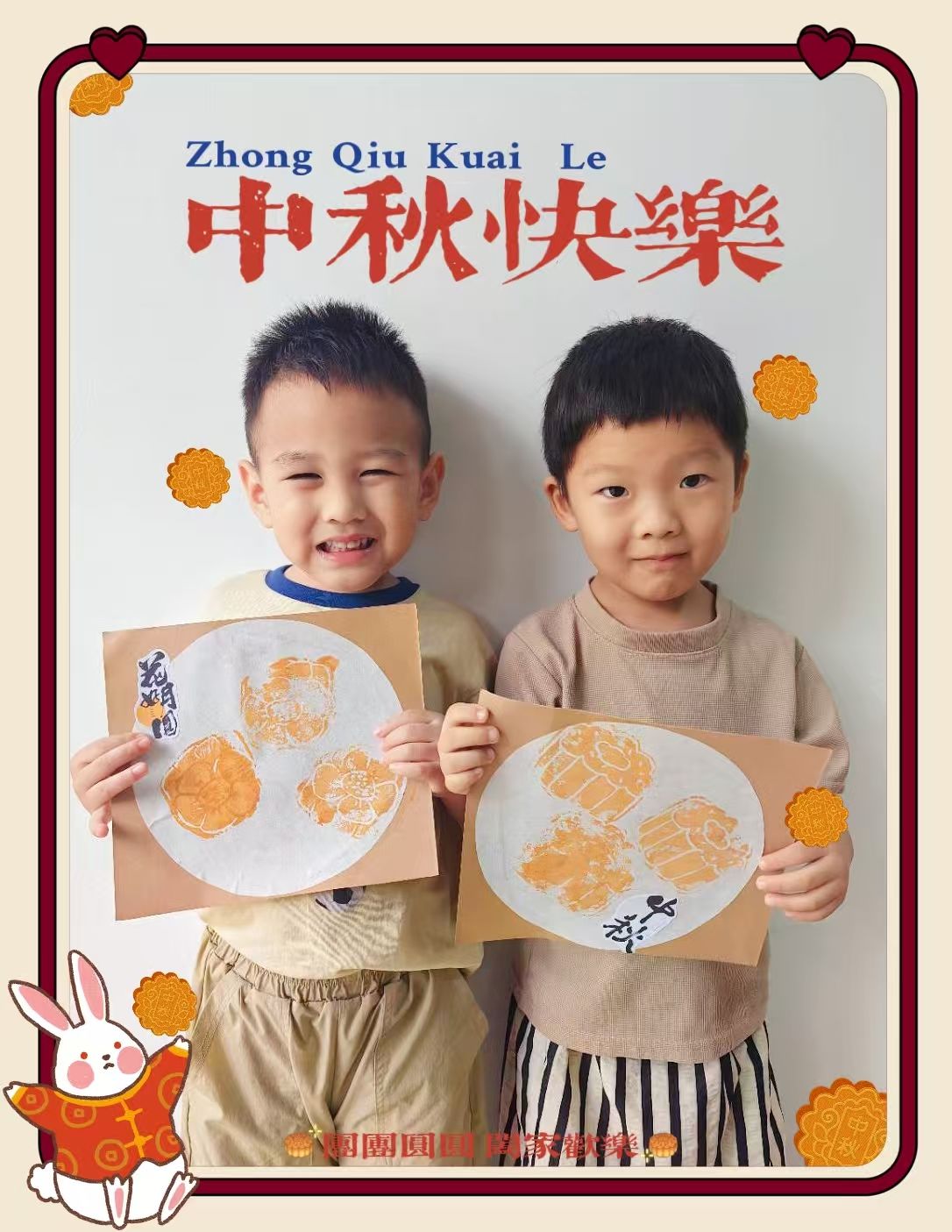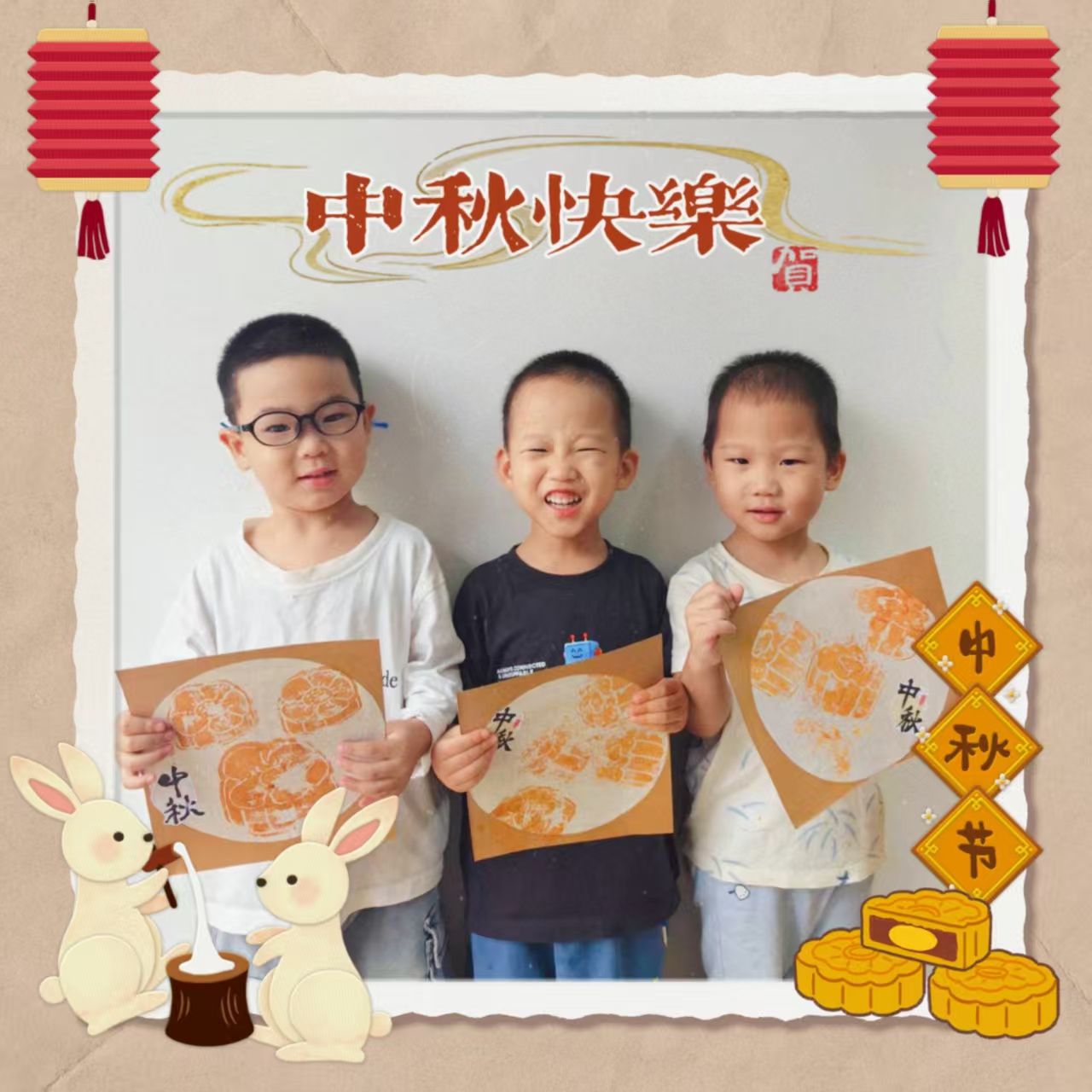 中秋节快到啦~今天我们制作了🥮月饼拓印画哦~小宝贝们第一次尝试这种方式进行绘画创作,都很认真呢!