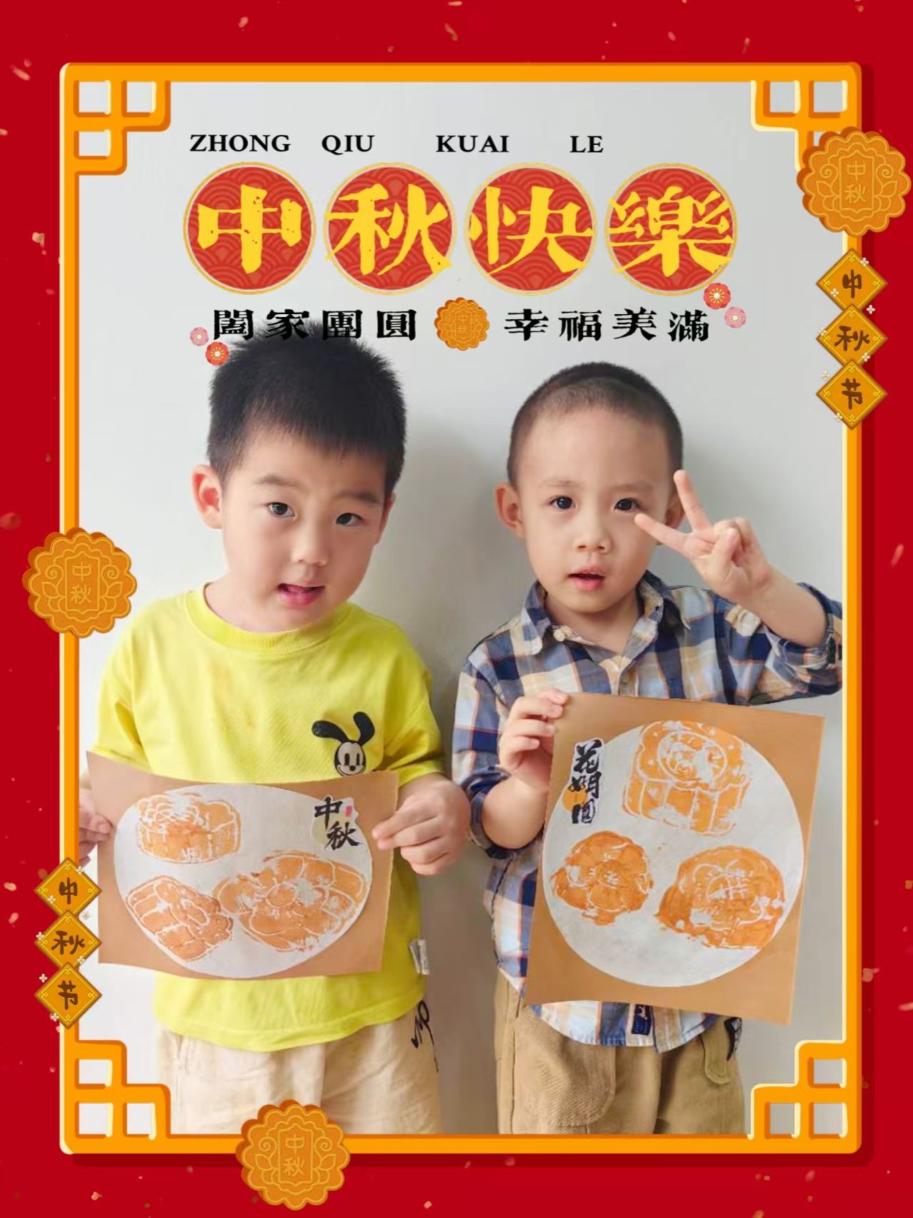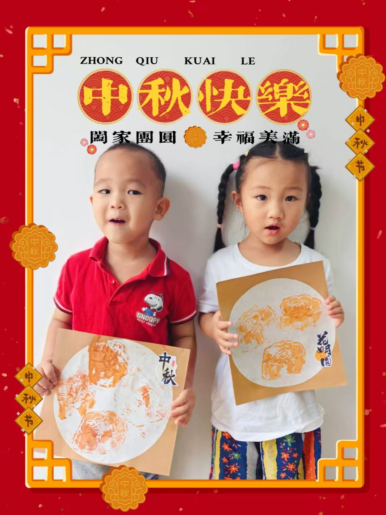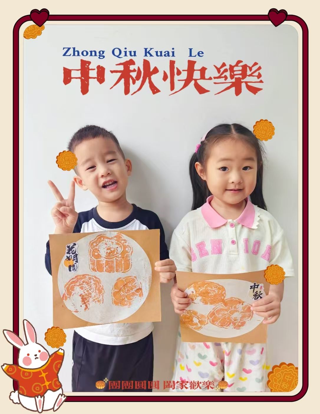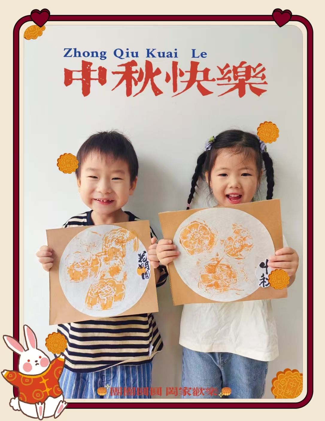 中秋节快到啦~今天我们制作了🥮月饼拓印画哦~小宝贝们第一次尝试这种方式进行绘画创作,都很认真呢!