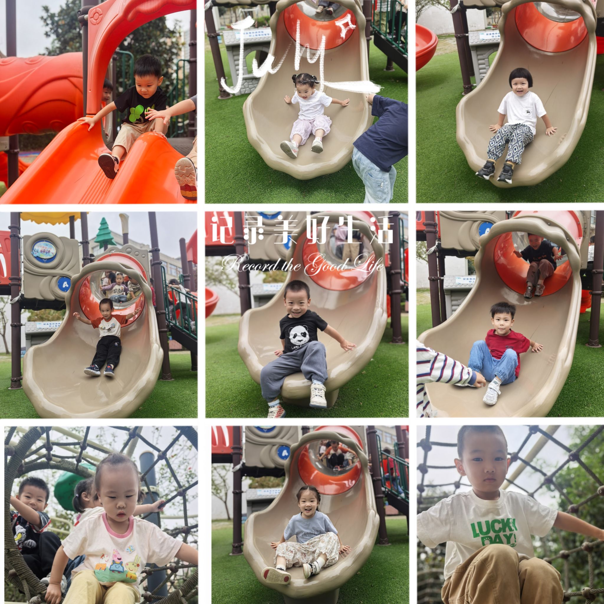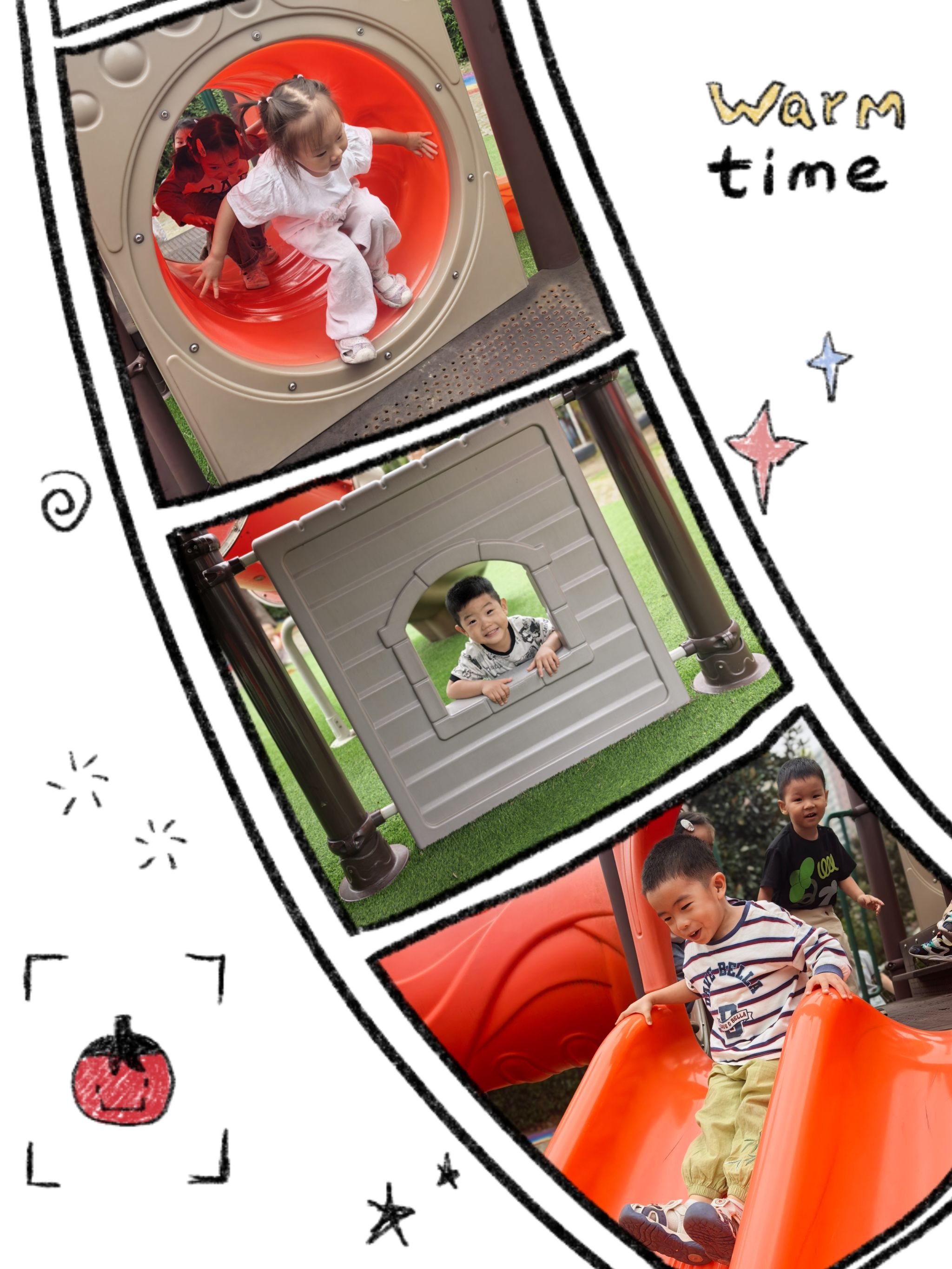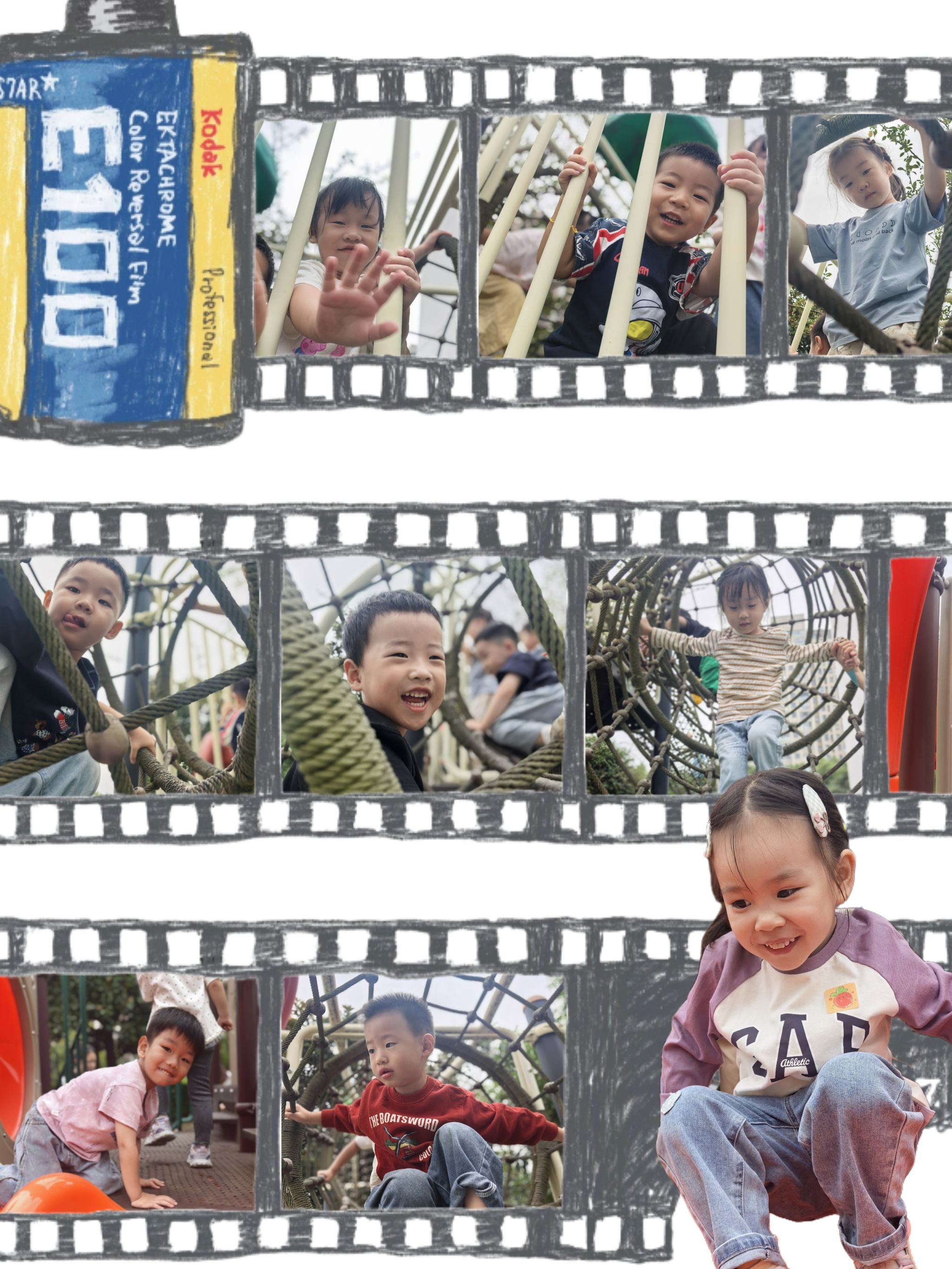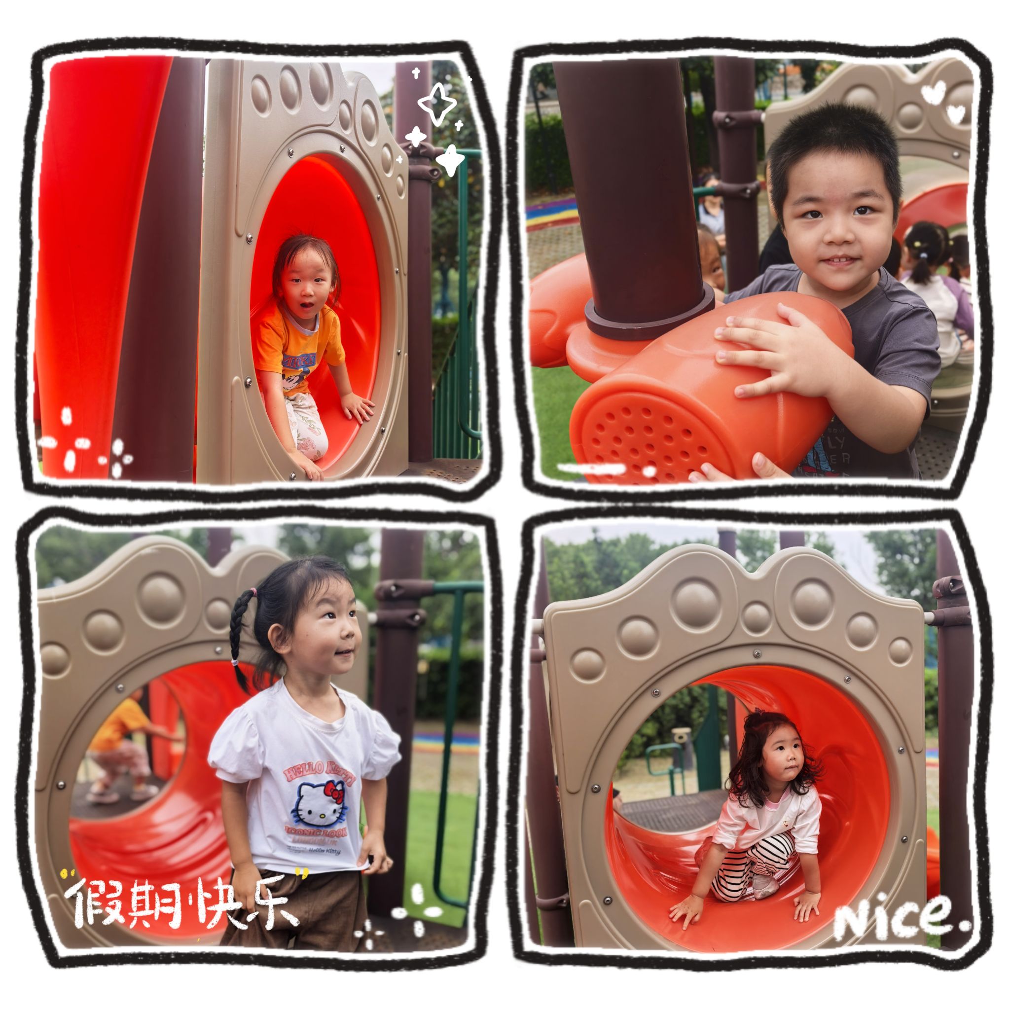 我们是小勇士,不但会玩滑滑梯,还会爬钻笼哦。