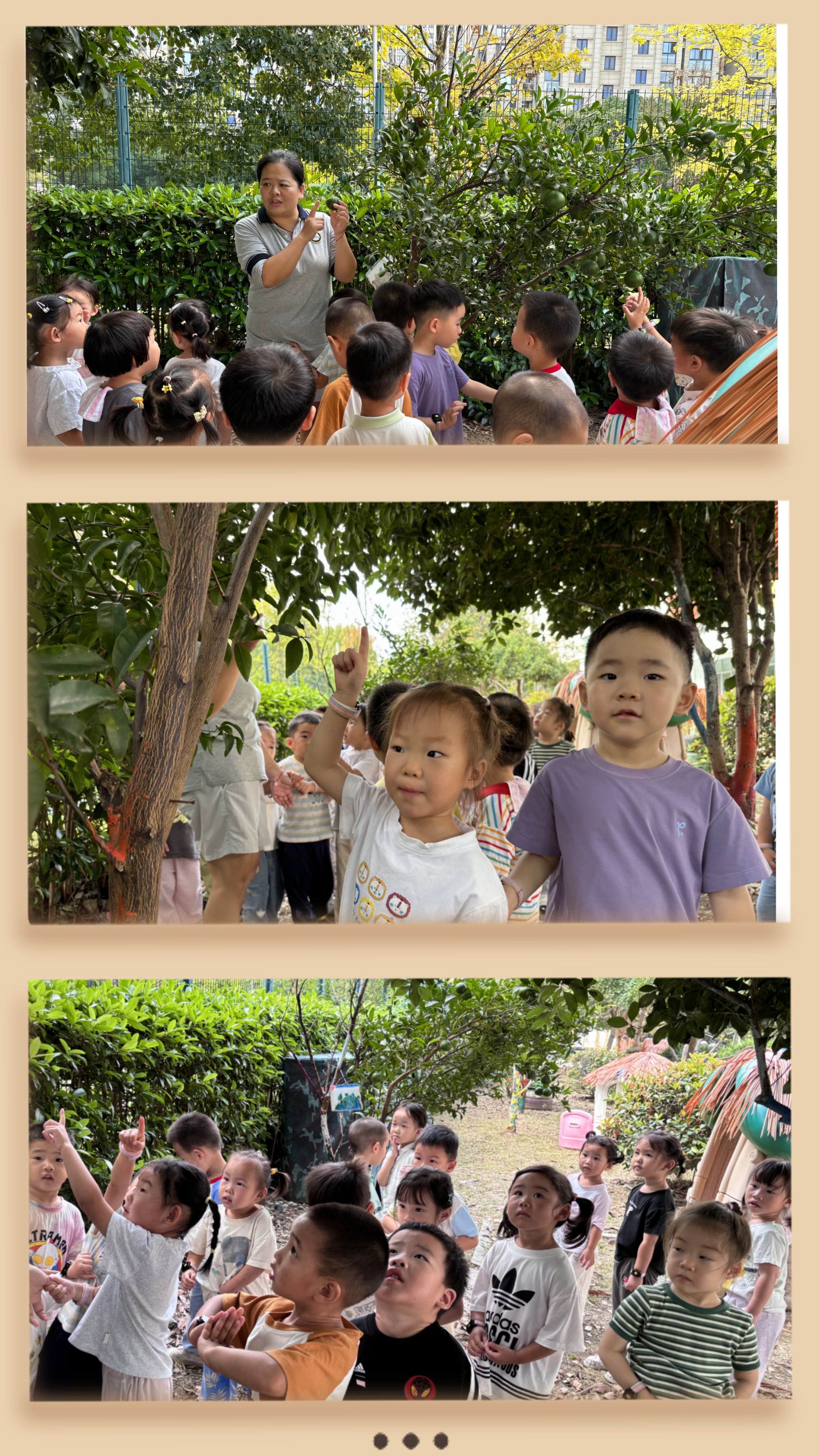 幼儿园里有好多的果树,今天我们一起来找一找,认一认,看看都有哪些果树呢。