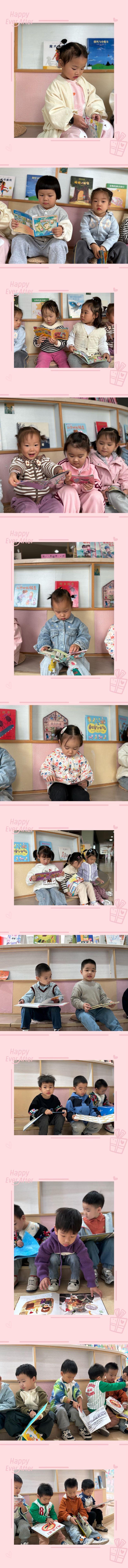 今天我们一起爬楼梯去二楼啦!幼儿园有一个大大的图书室,里面有好多的书呀。快来一起看书吧。