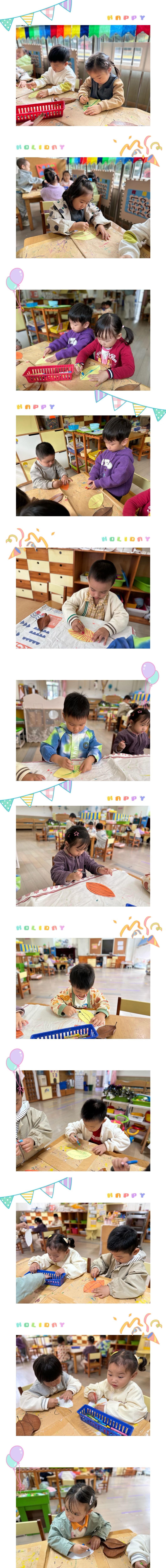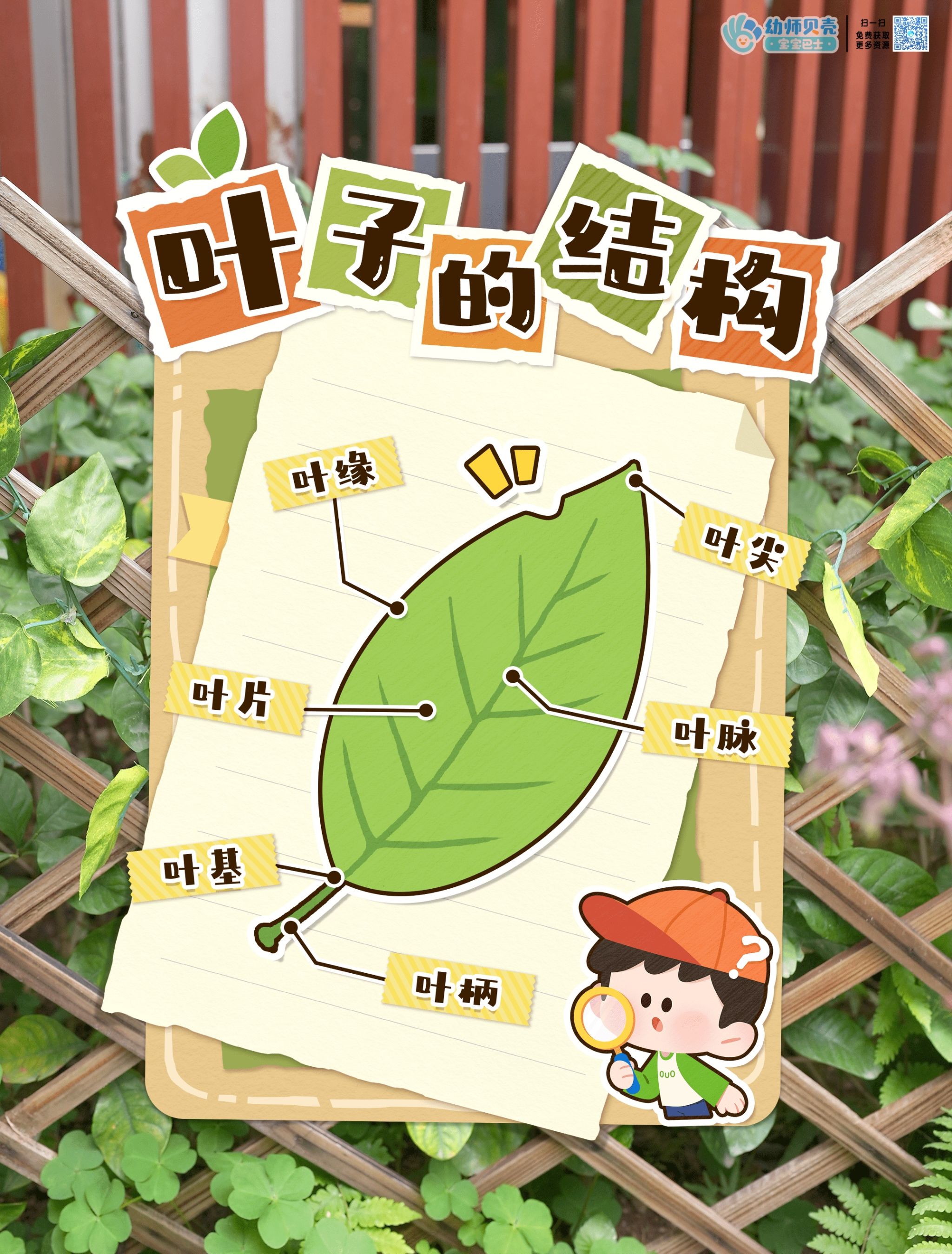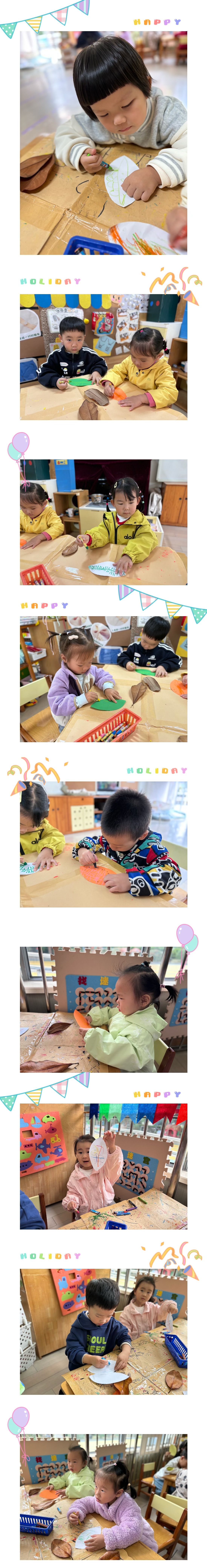 今天我们跟着老师认识了树叶的结构,原来树叶上一条条透明的线叫叶脉。我们今天也给树叶宝宝添上叶脉。