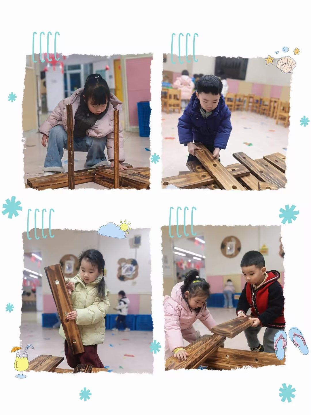 今天的宝贝们变成了一个个搭建小能手,用不同的材料搭建了“美味”的糖果屋。