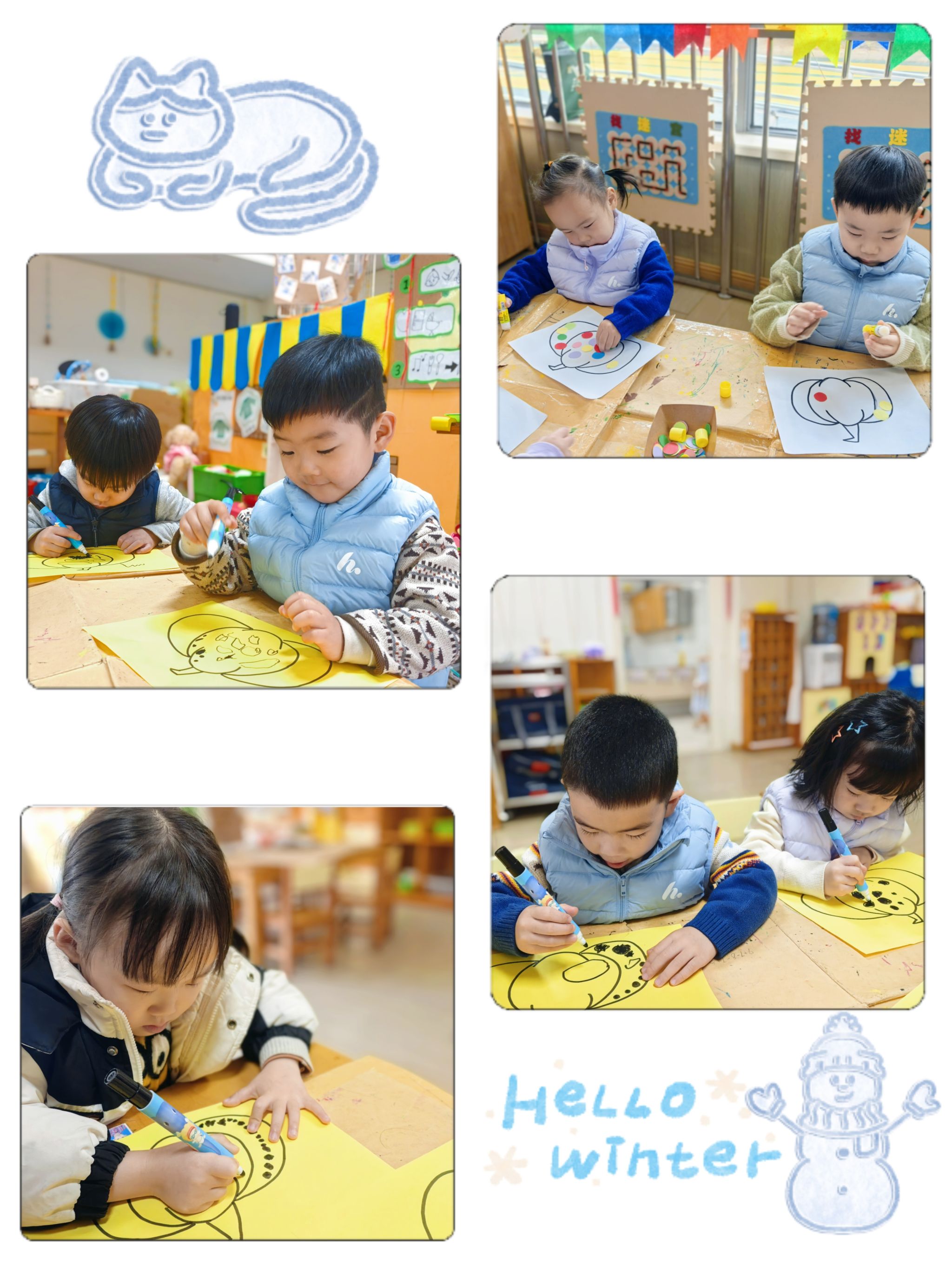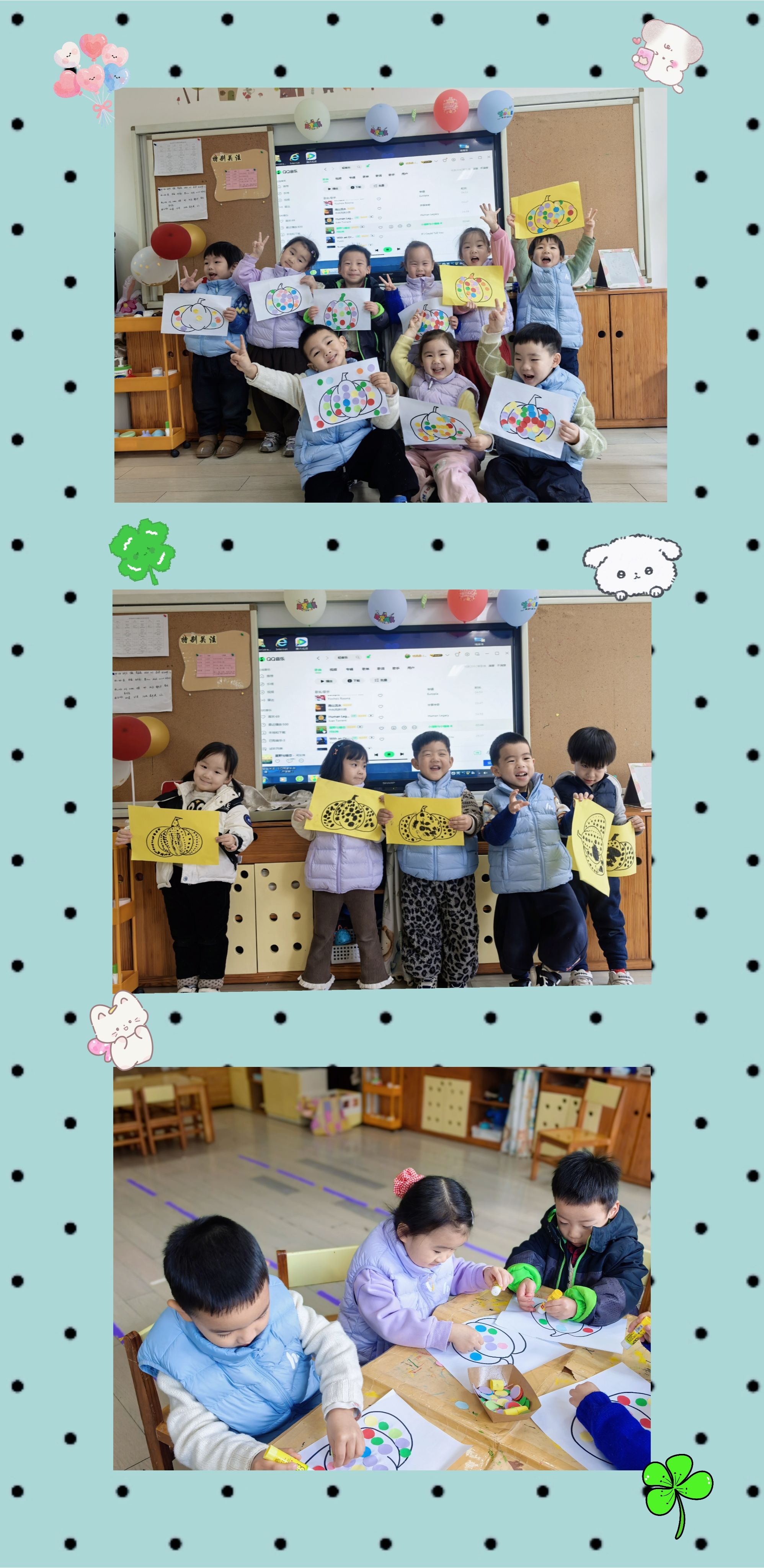 今天是和波点做游戏的一天,小朋友们用彩色的波点来装饰南瓜,让南瓜变得与众不同。