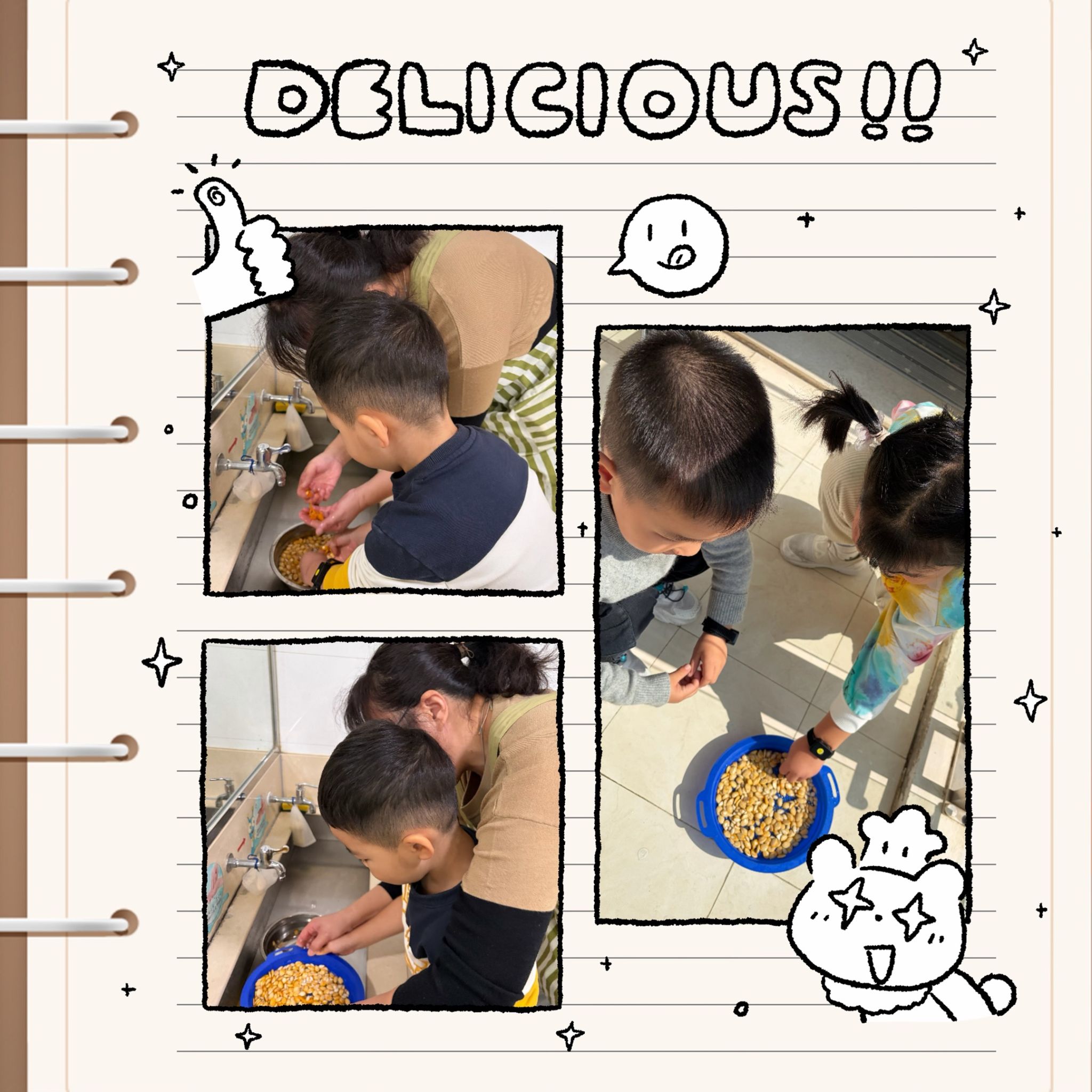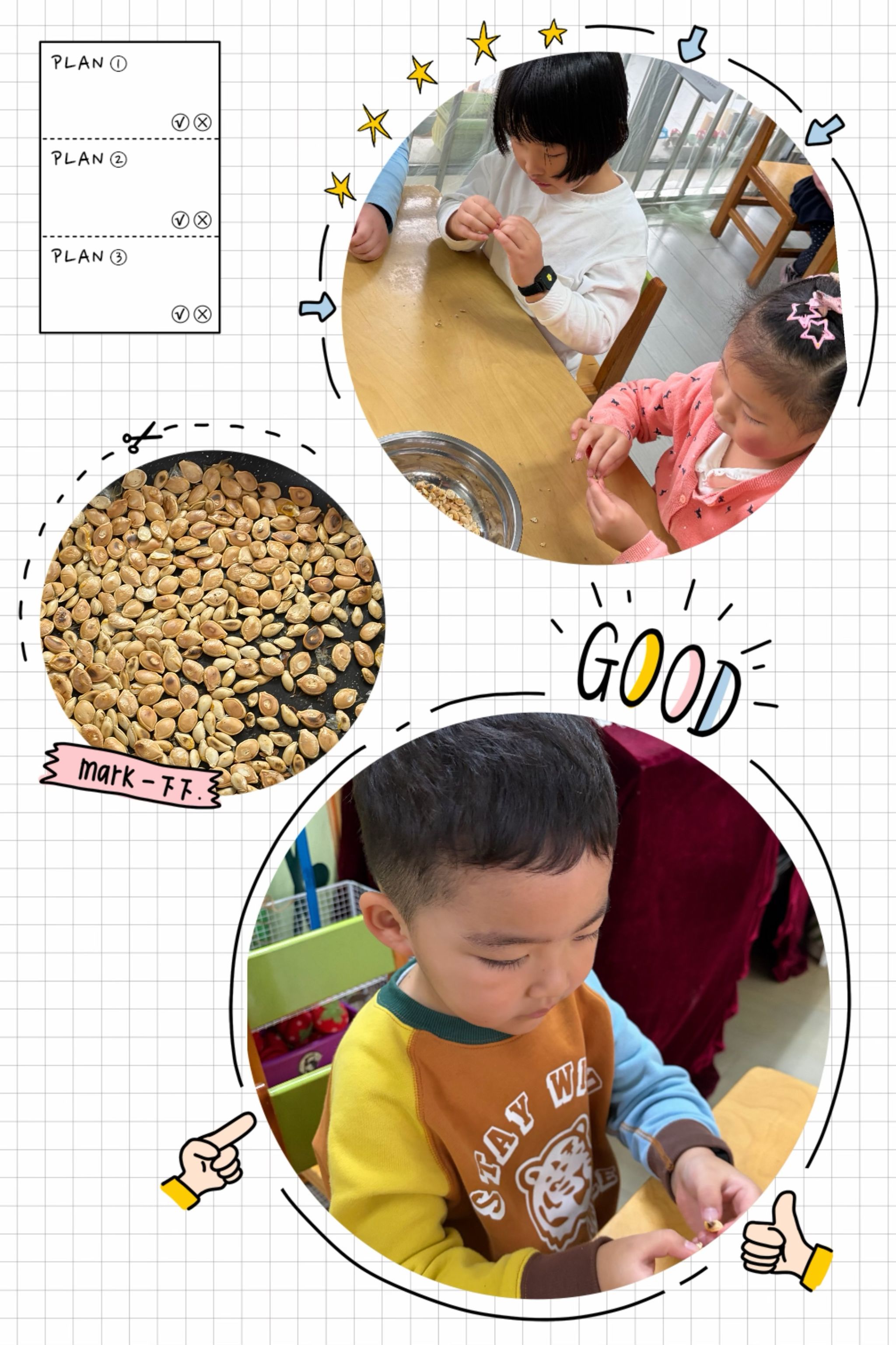 小小的南瓜籽里藏着大大的惊喜!今天宝贝们化身“小小美食家”,亲手开启南瓜籽的变身之旅。从挑选饱满的籽儿,到仔细清洗沥干,再跟着老师一起在锅里翻炒,听着籽儿在锅中“噼啪”作响,鼻尖萦绕着渐渐浓郁的香气,每一步都充满期待。当金黄的南瓜籽盛出,宝贝们迫不及待尝一口,酥脆的口感混着焦香,满满的成就感在舌尖绽放。这不仅是一次有趣的美食制作,更是一场用小手探索、用感官体验的快乐成长之旅!