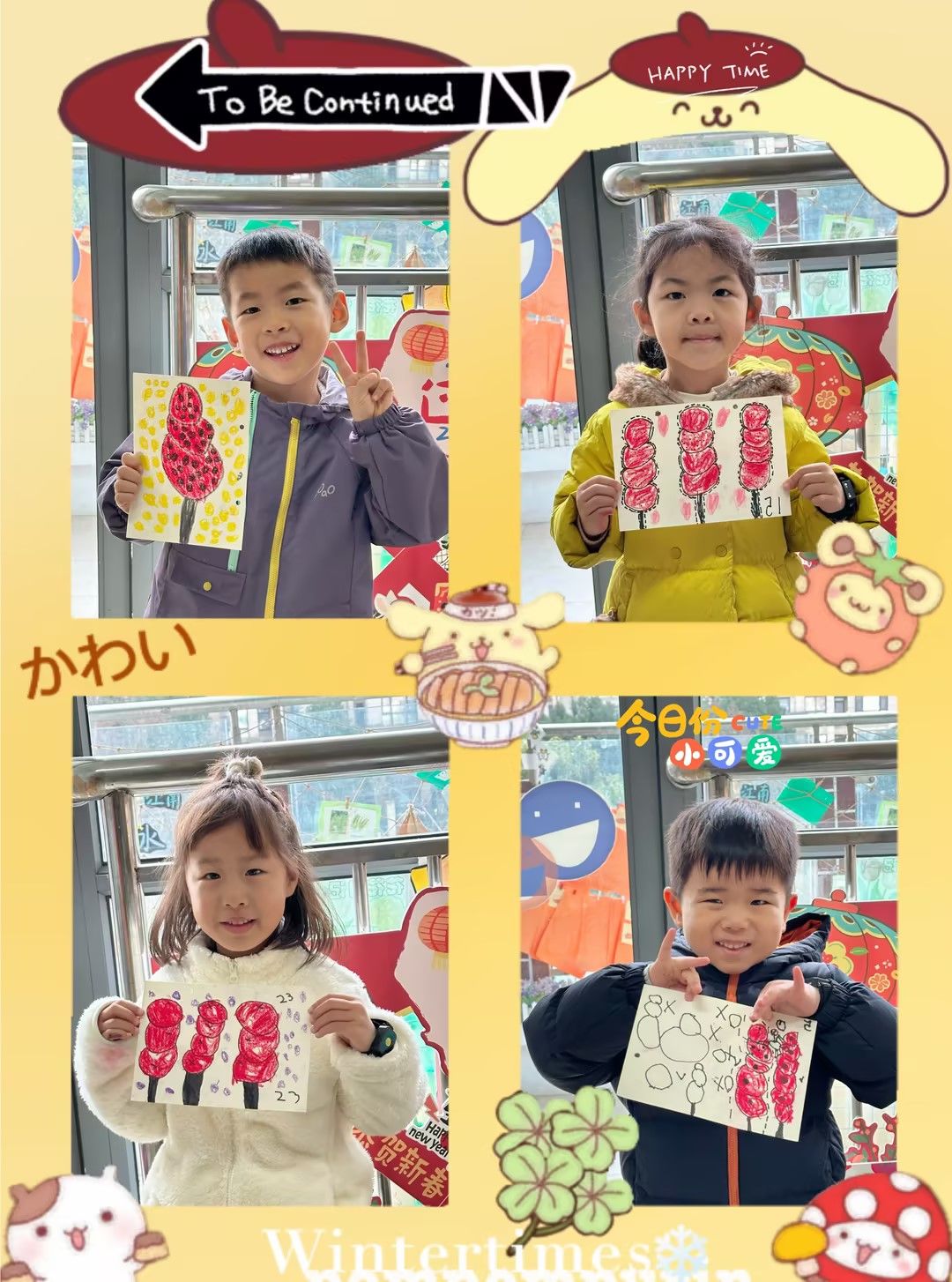 冬日限定的甜蜜,是画笔间的冰糖葫芦!红果串起欢喜,糖衣裹着温柔,宝贝们用五彩画笔,绘出舌尖上的冬日美好~