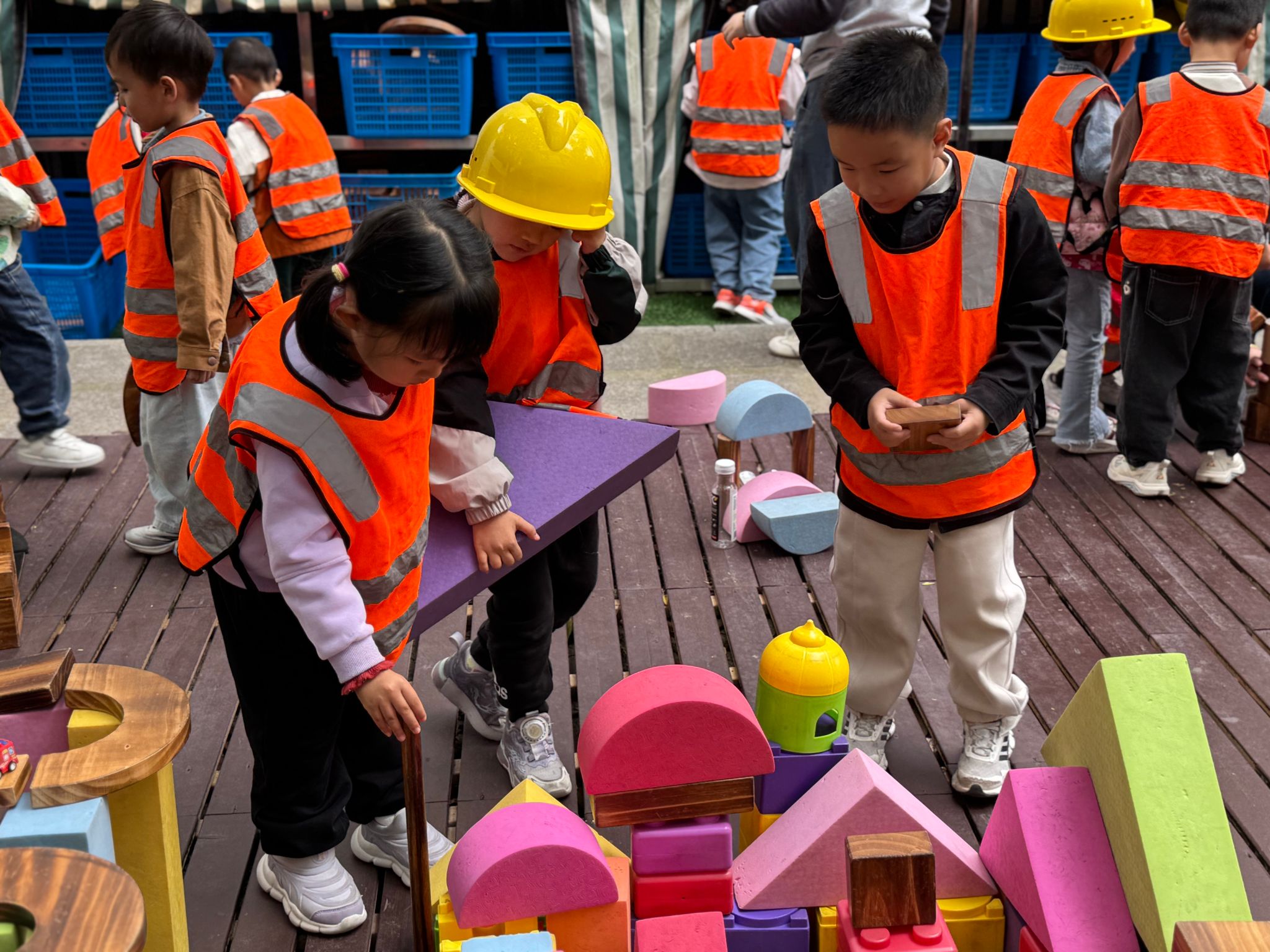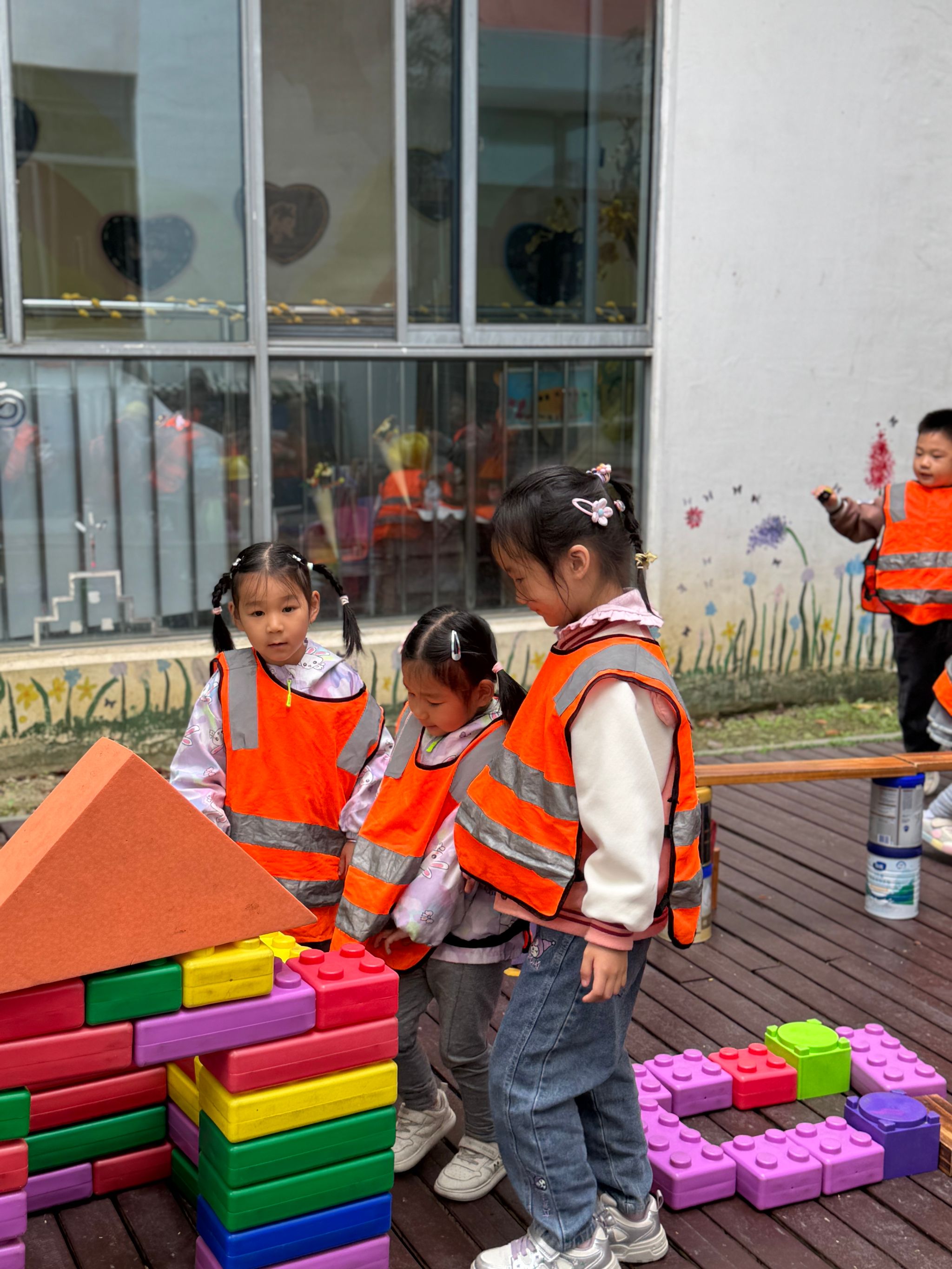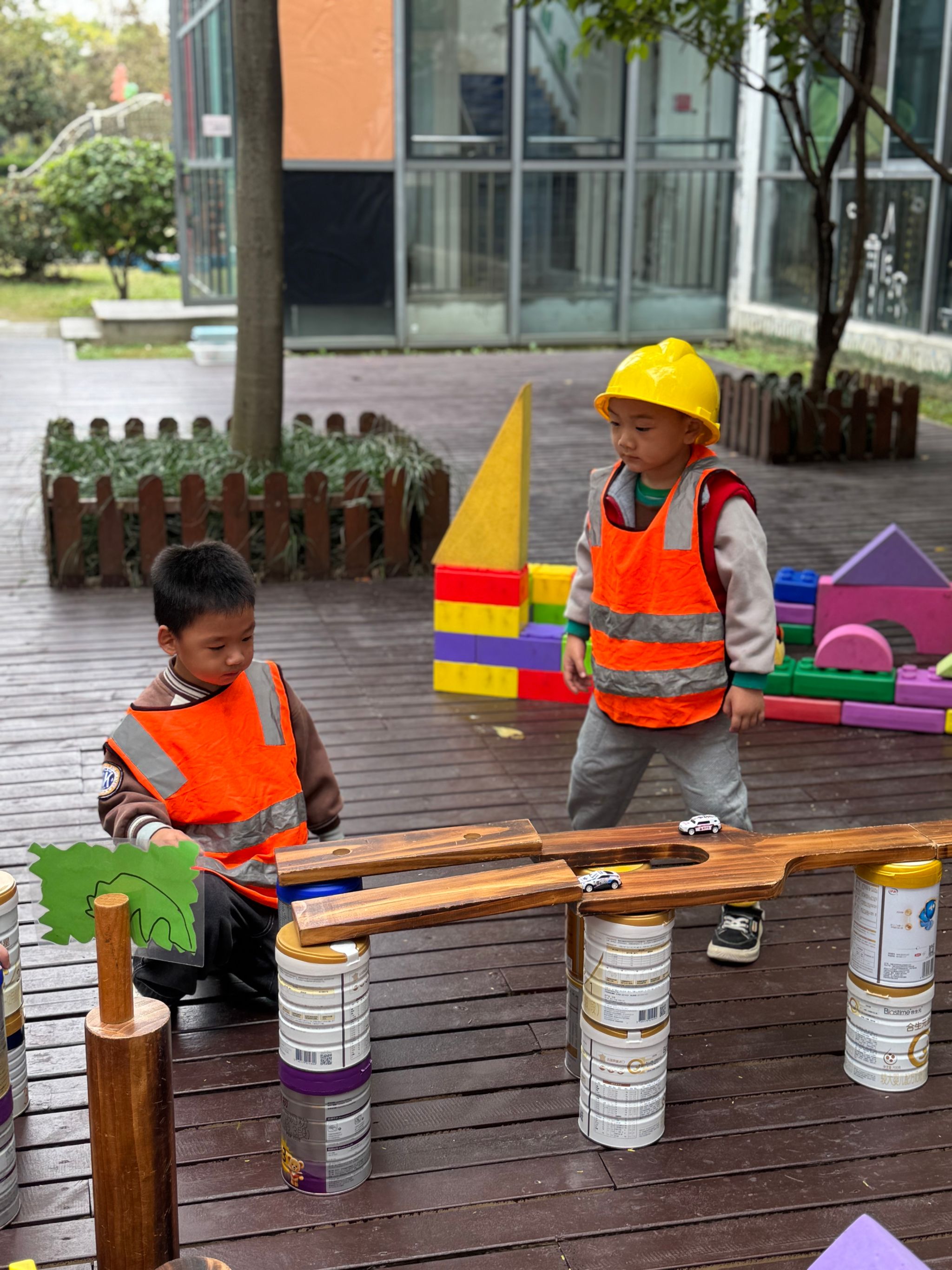 本次户外自主建构活动中,幼儿以“搭建高架”为主题,充分发挥想象力与动手能力,在合作探索中完成了充满创意的建构作品。活动前,幼儿围绕高架的形态、功能展开讨论,分享对高架的已有认知;活动中,大家分工协作,有的搬运积木、有的规划路线、有的搭建桥墩,在尝试与调整中解决了“高架不稳”“坡度太陡”等问题。