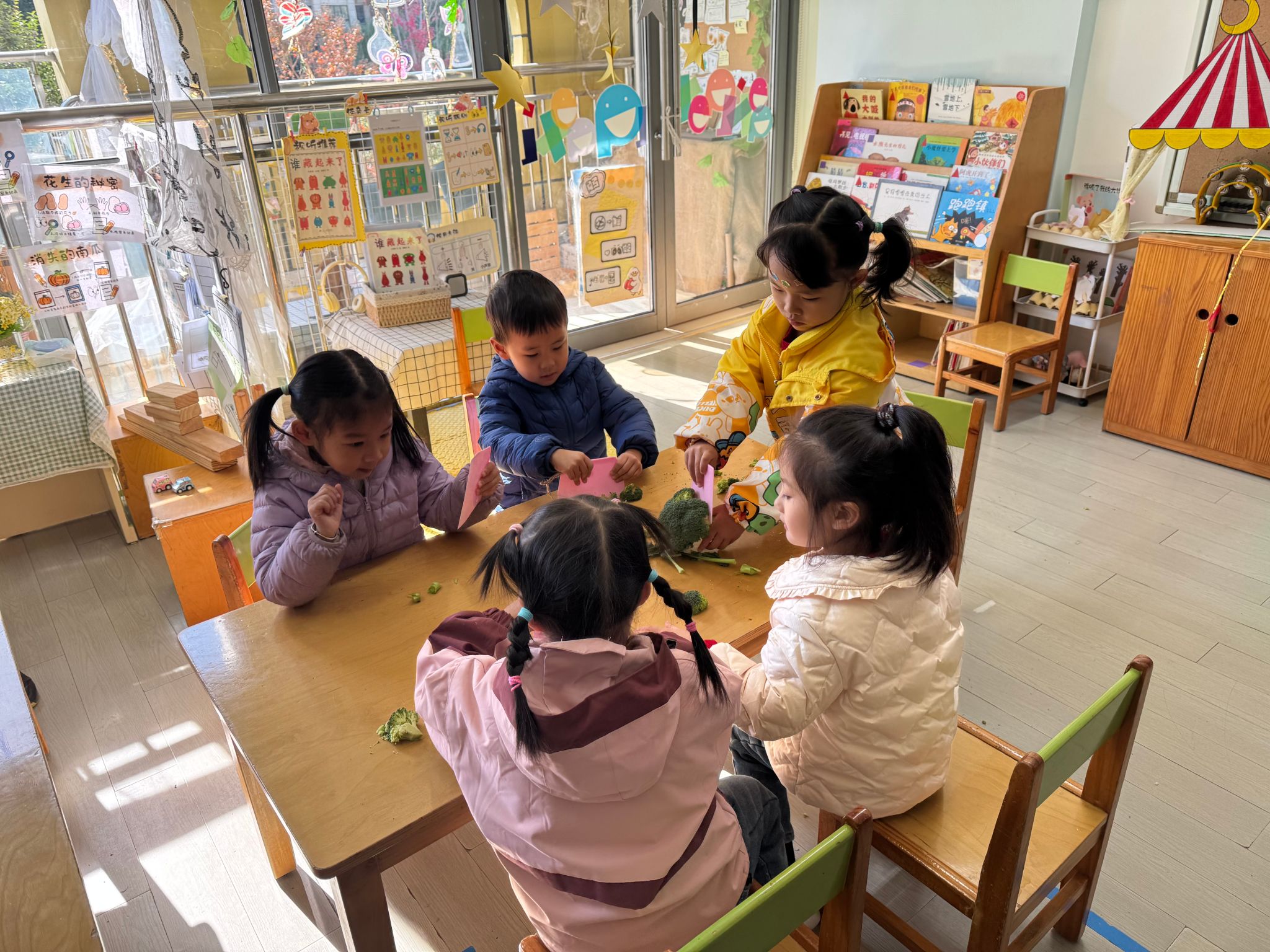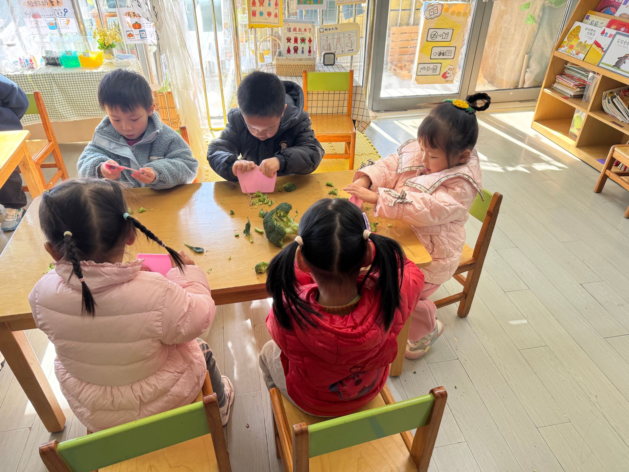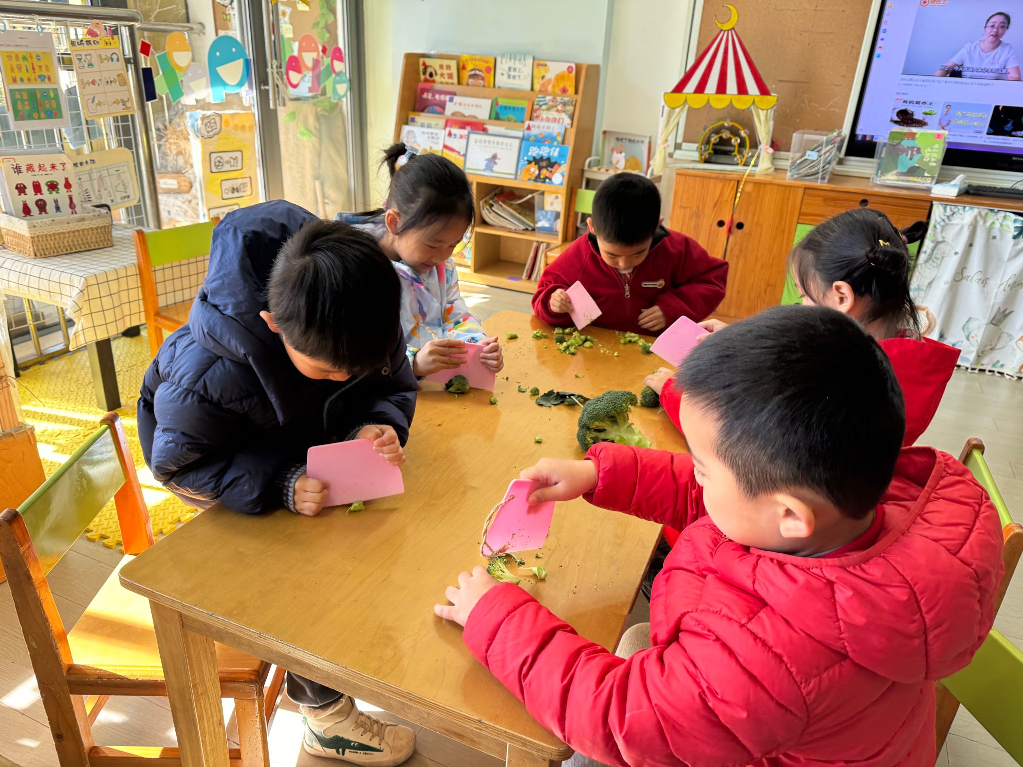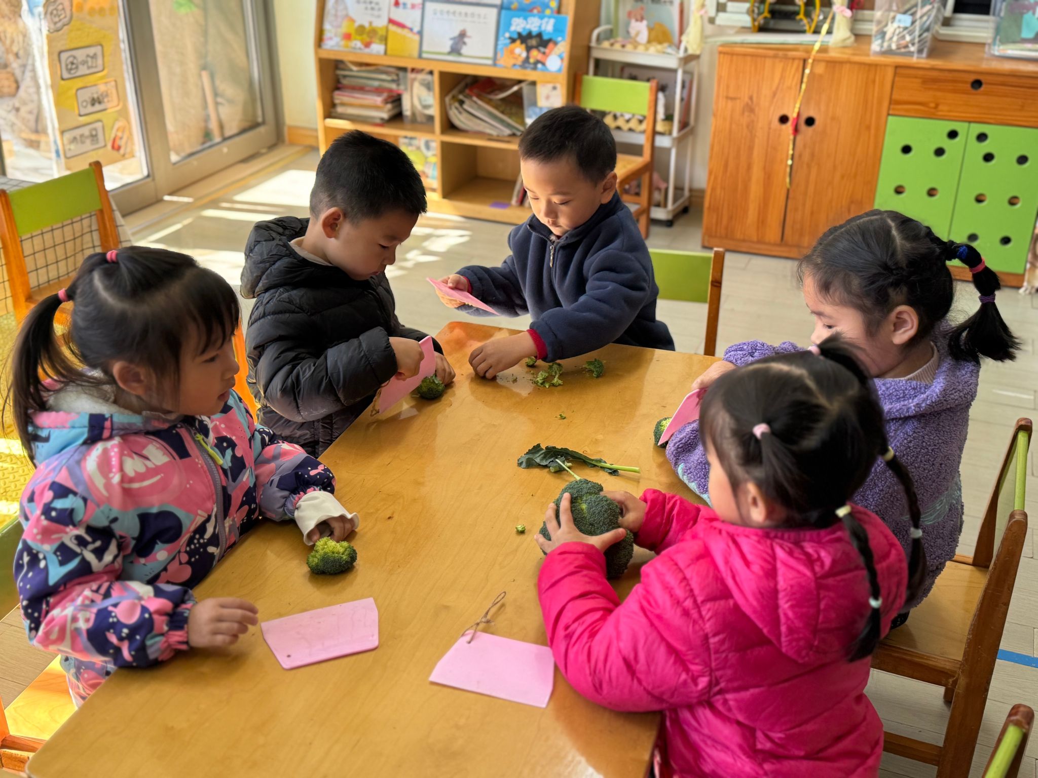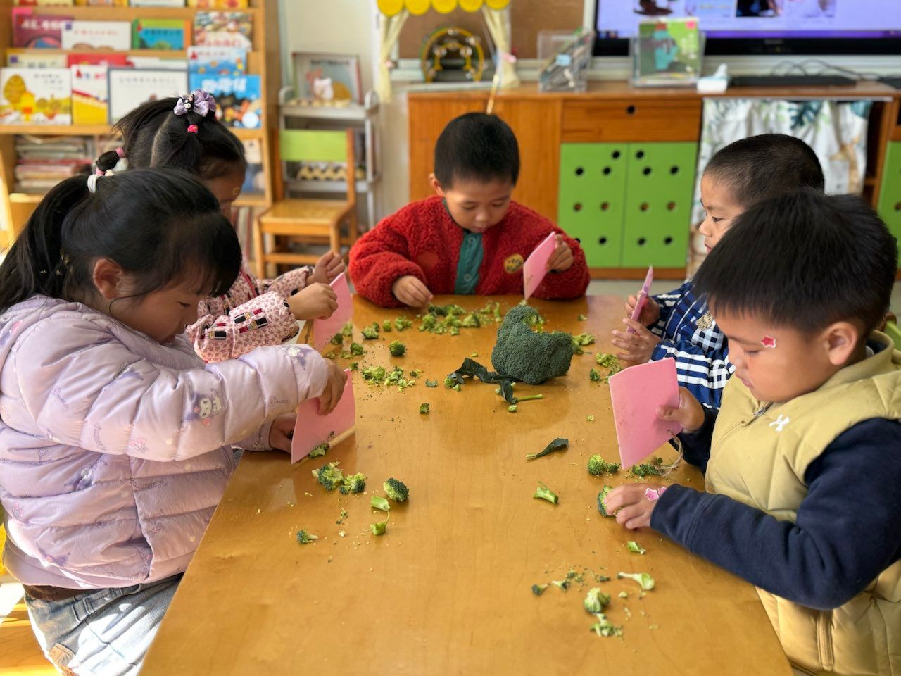 🥬蔬菜是幼儿日常生活中每天都接触的食物,很多孩子头头是道地说:“蔬菜是很有营养的,多吃蔬菜身体好”。而实际上我们发现,无论是对蔬菜的认识程度还是对蔬菜的喜爱程度都并不是幼儿口中的“模样”今天带着孩子们一起认识了西兰花,通过观察、触摸发现西兰花的好处多多,午餐愿意吃西兰花的孩子们也多了起来。