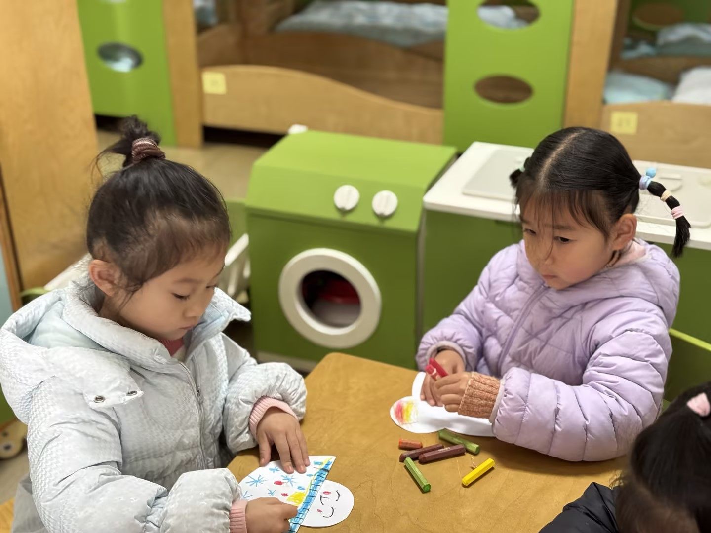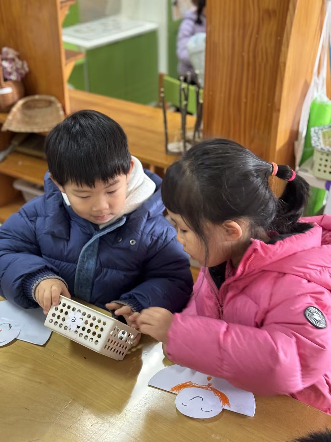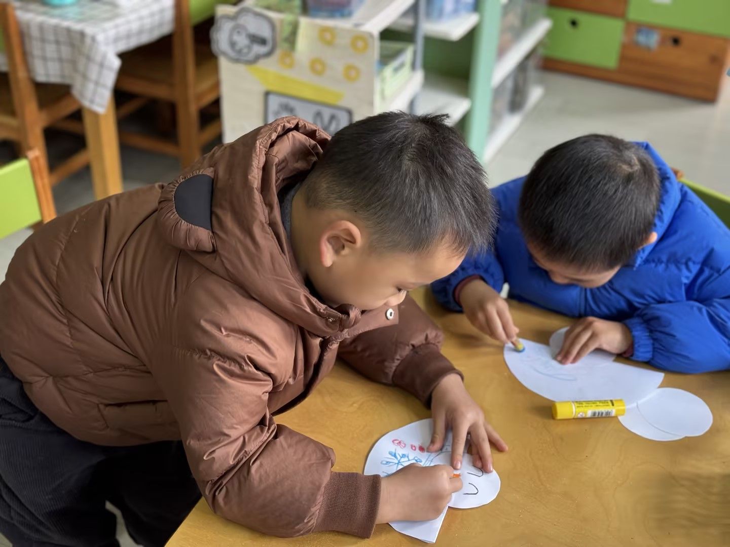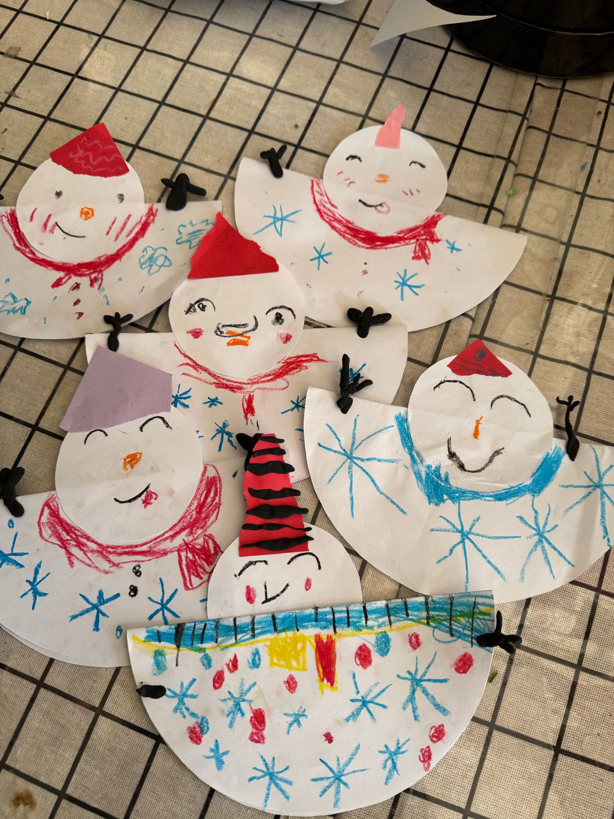 今天和孩子们一起做了冬天里的第一个“小雪人”!用到的材料有白纸、黏土、蜡笔和胶棒,简单又好玩,孩子们做的成品一个个都很可爱呢!