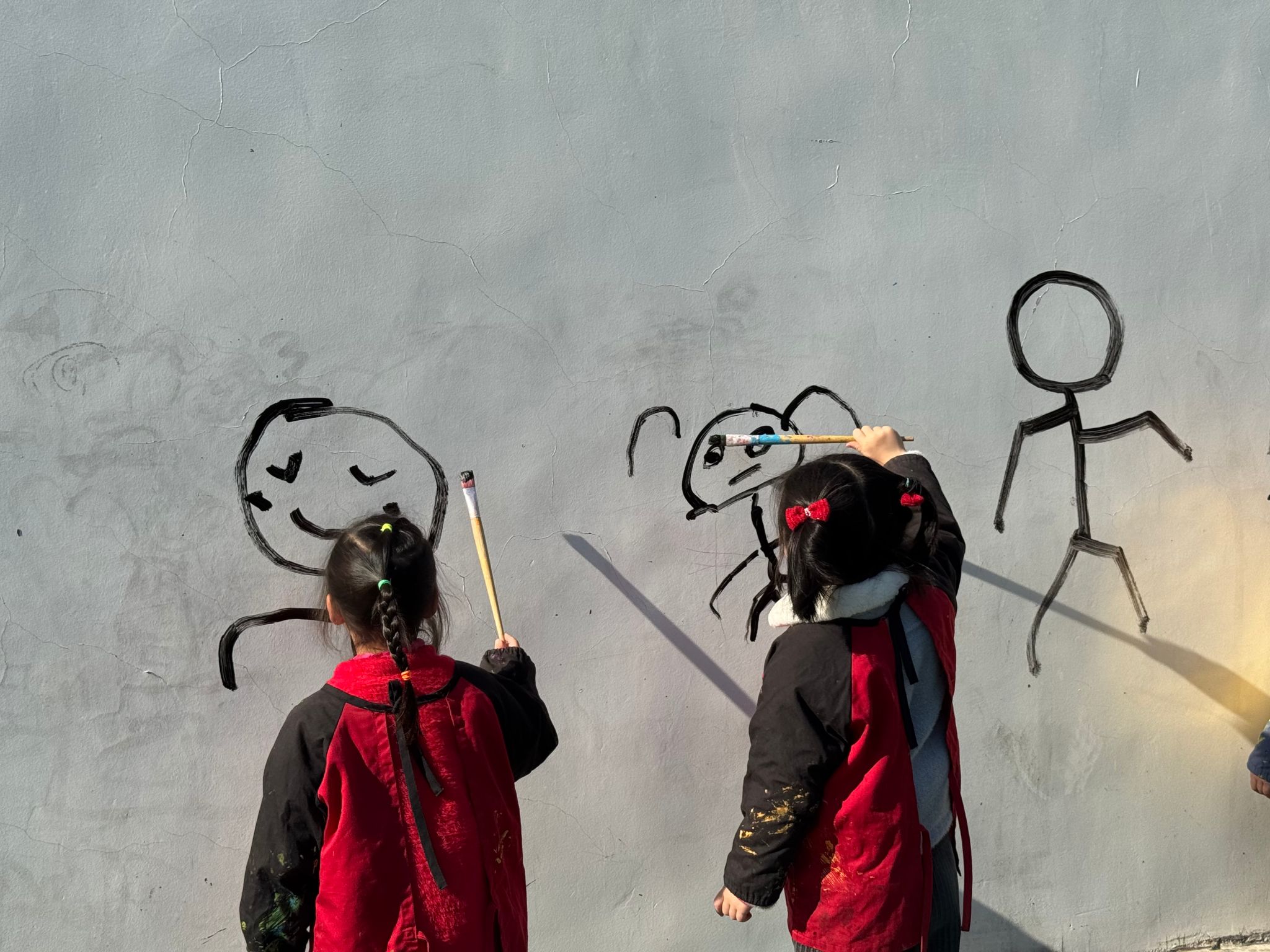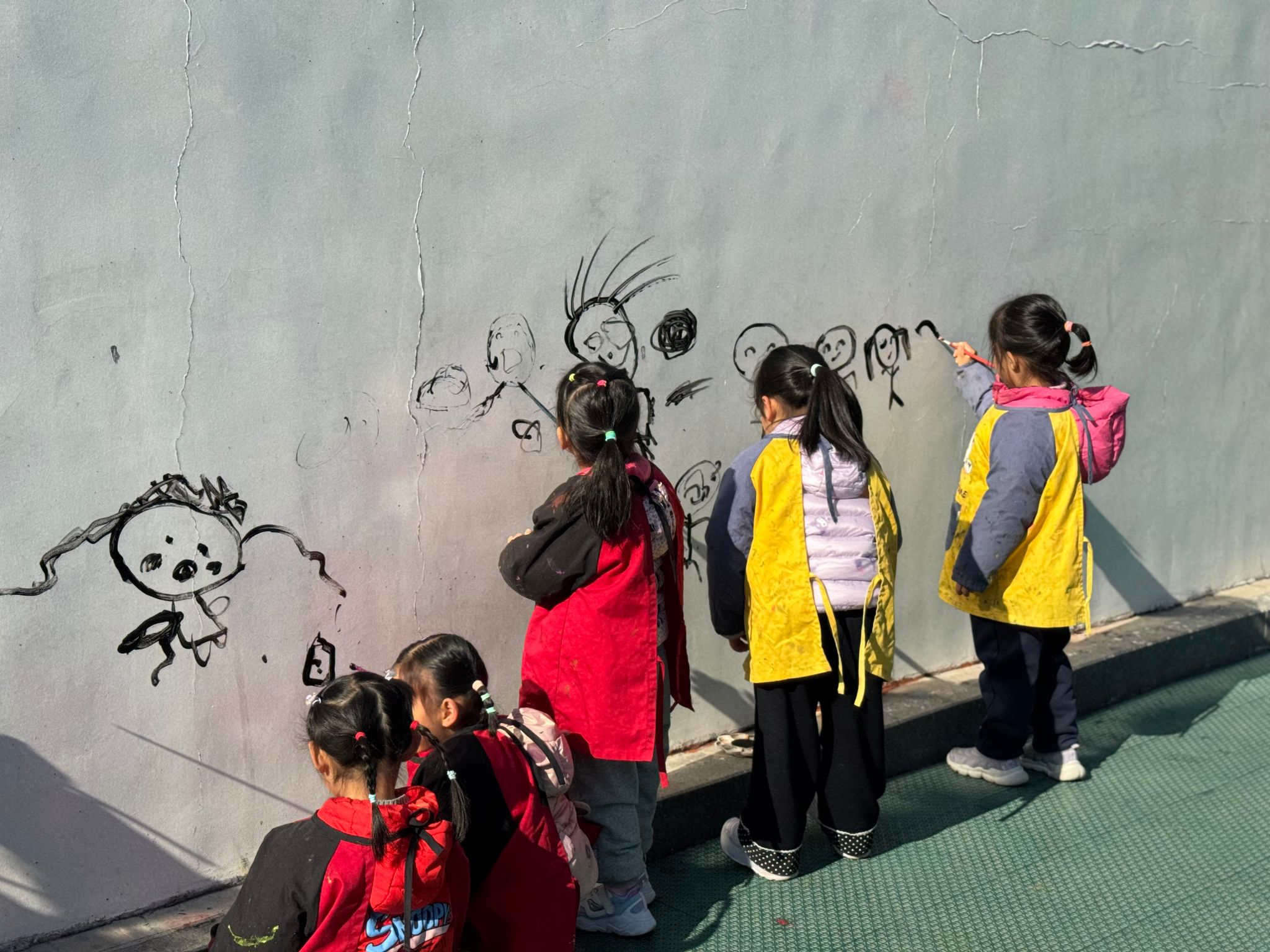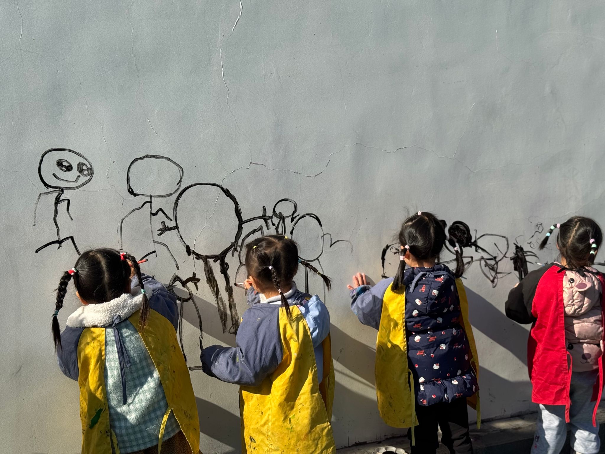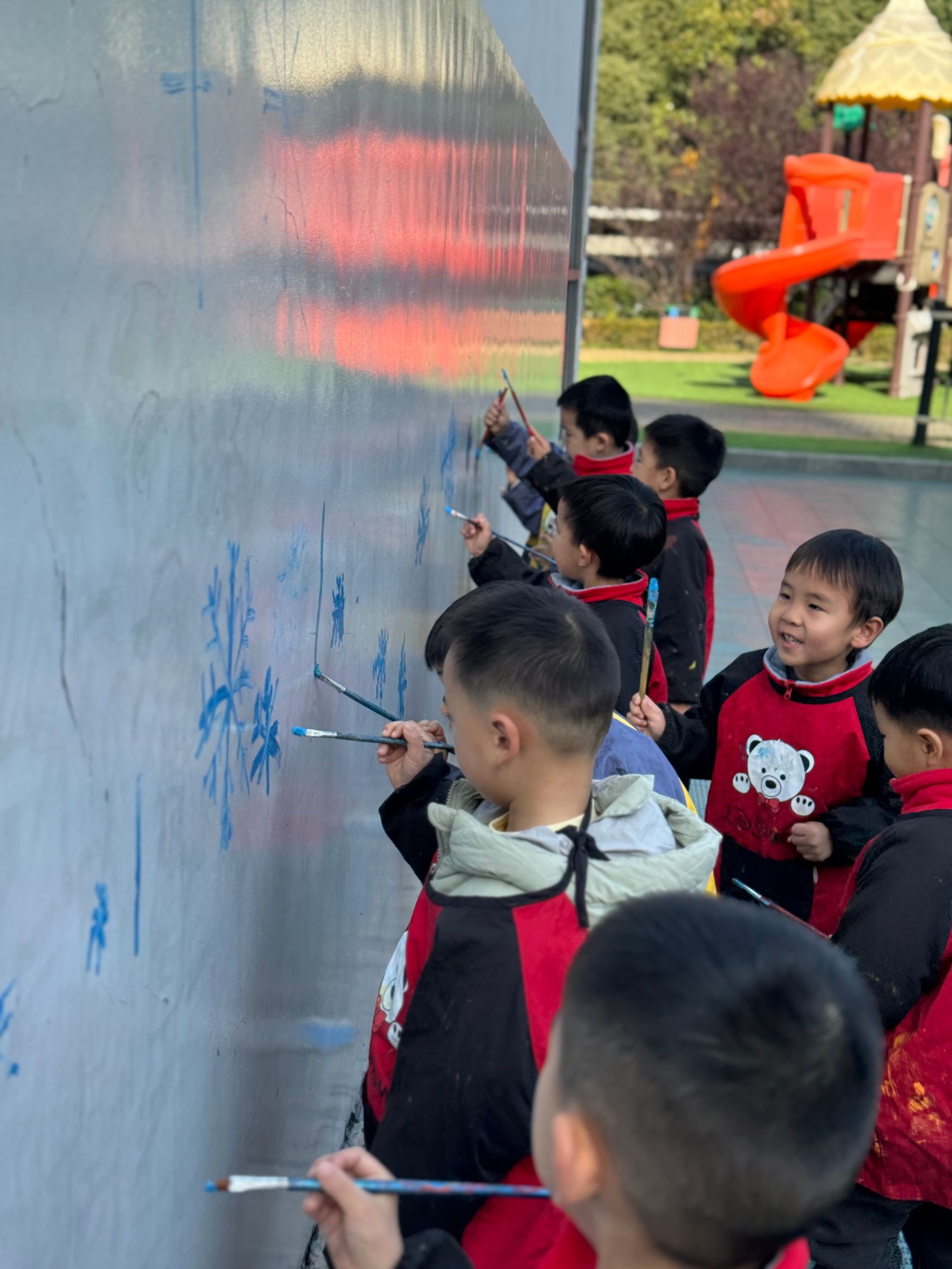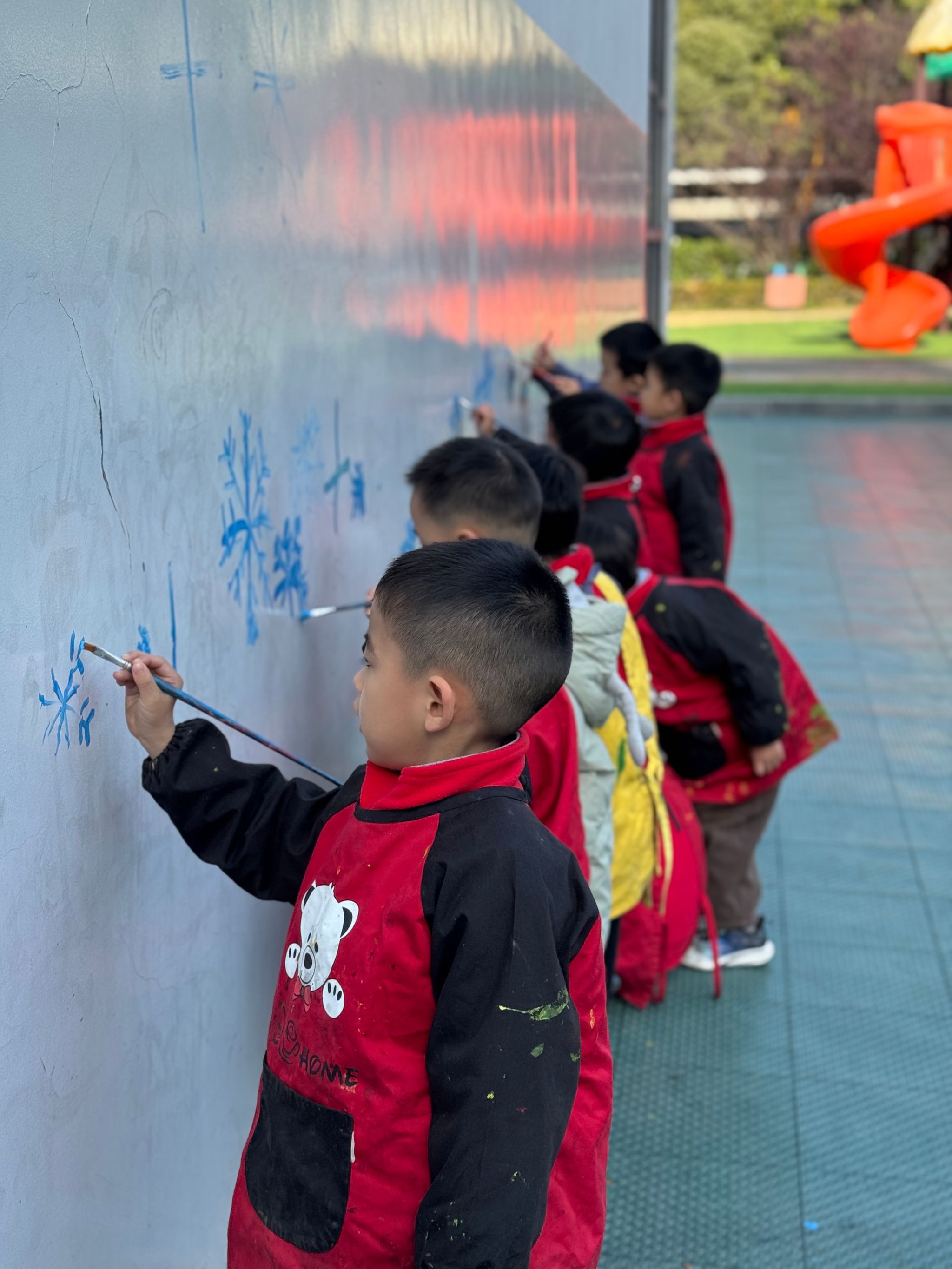 🎨和孩子们一起趣涂鸦啦!🎨在这银装素裹的冬天,我们用画笔自由挥洒,把雪花、雪人、运动小人都绘于墙上,用色彩描绘对冬天的爱🥰。那画面氛围感直接拉满,超温馨!沉浸式画画超快乐!让我们在涂鸦中感受快乐!