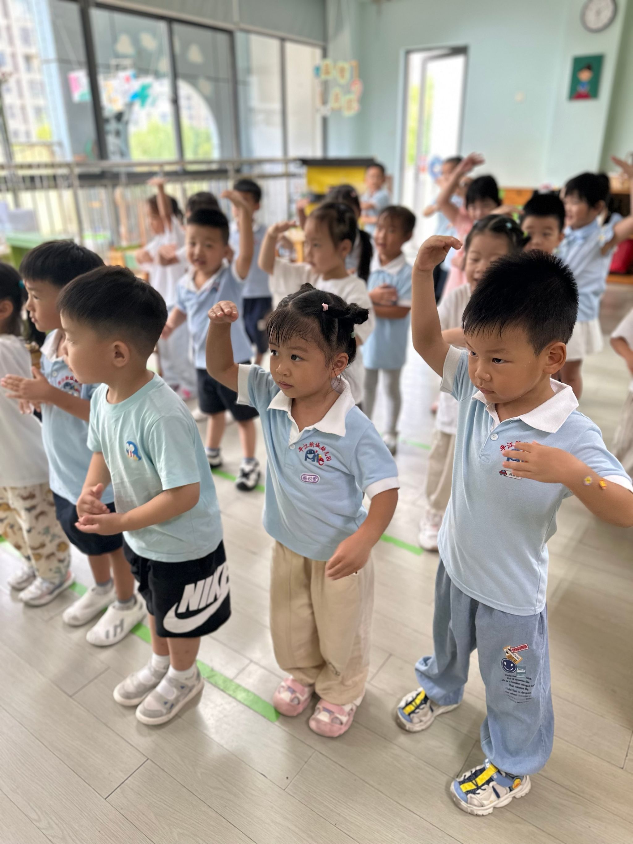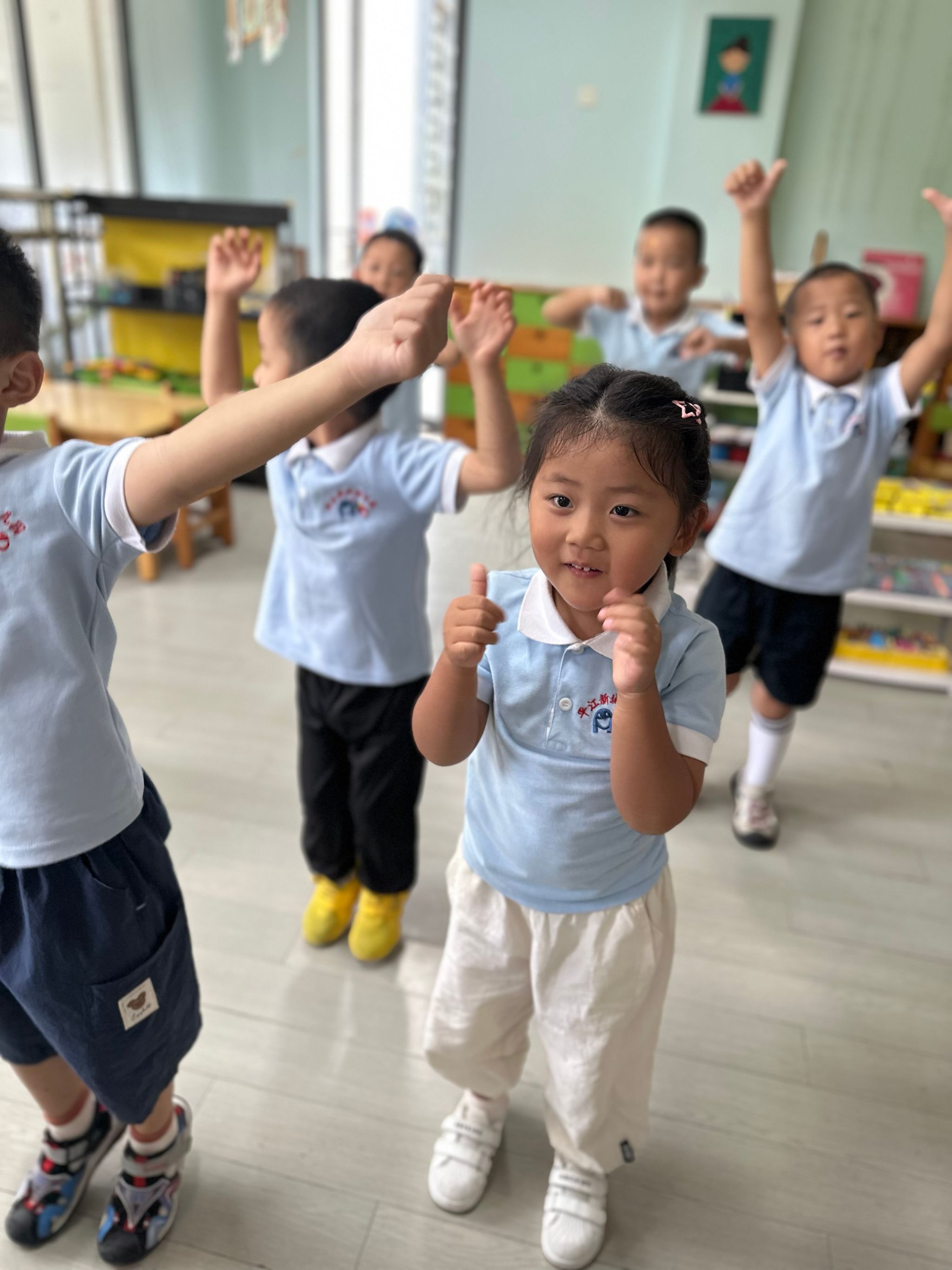 我们升班啦~现在的我是中班的小朋友啦!新学期,老师正带着我们一起学习新的律动操呢~~~