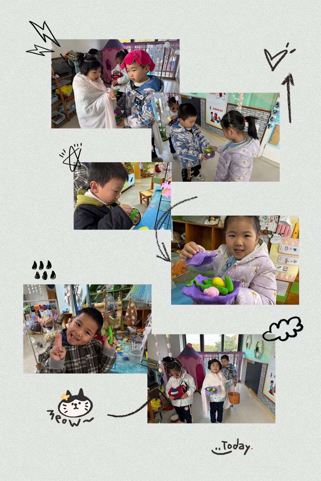 制作完美味的泡菜,孩子们也一起去到区域中玩起了游戏,在美工区用粘土捏成泡菜罐子,捏成胡萝卜、黄瓜……