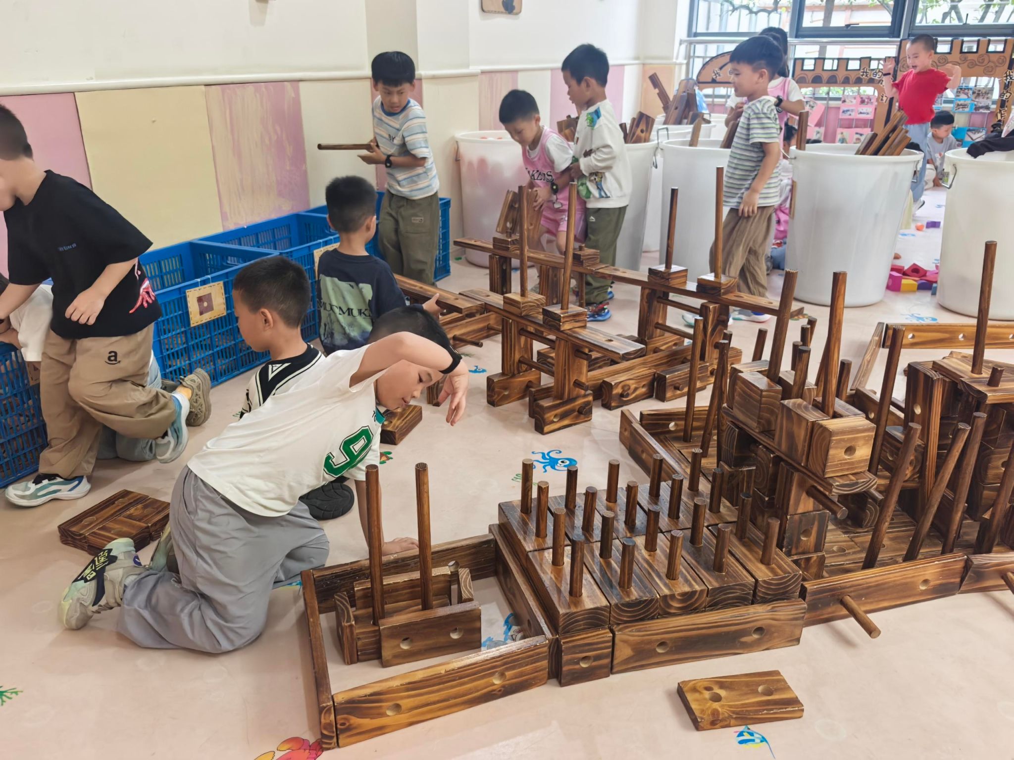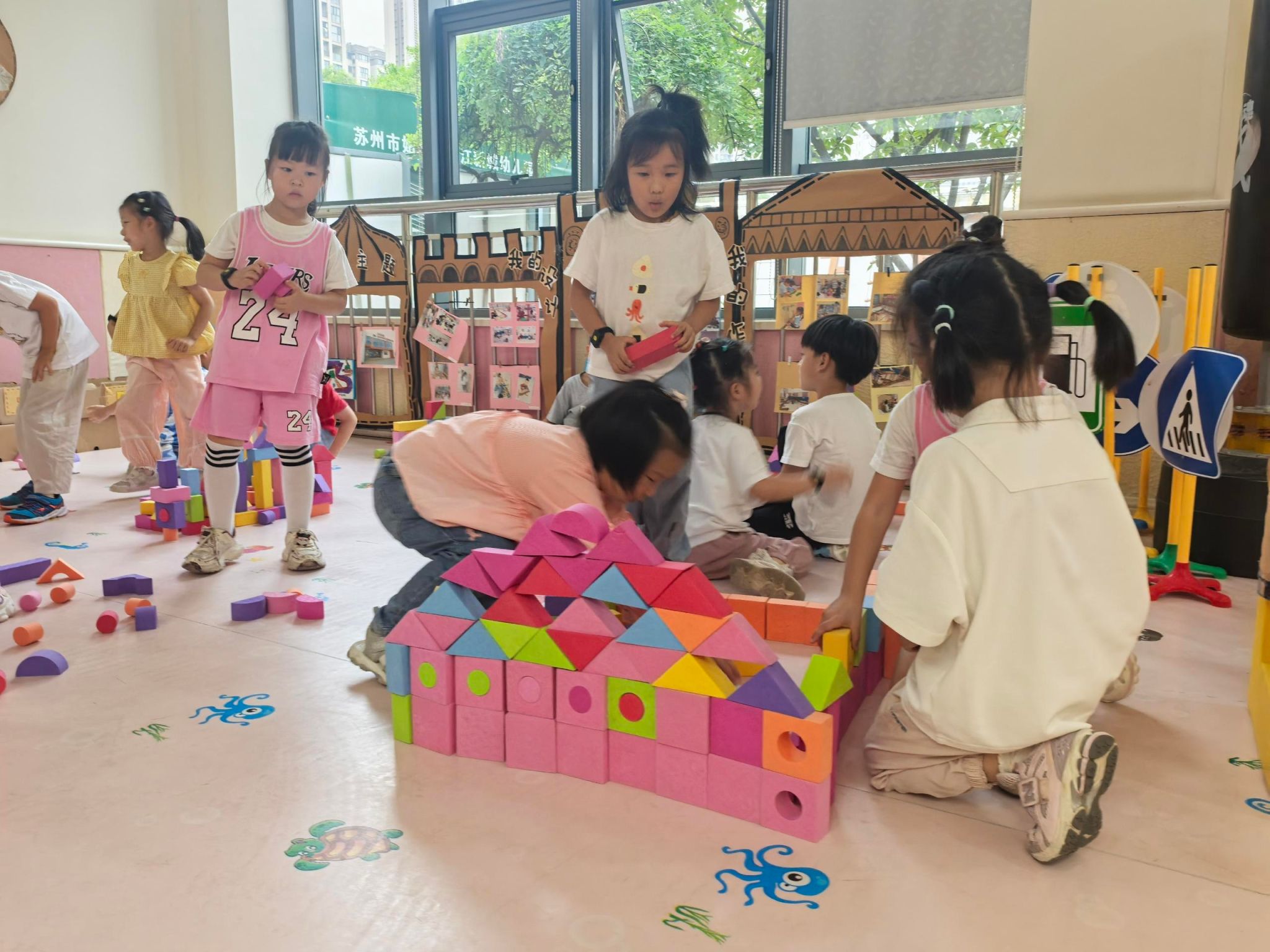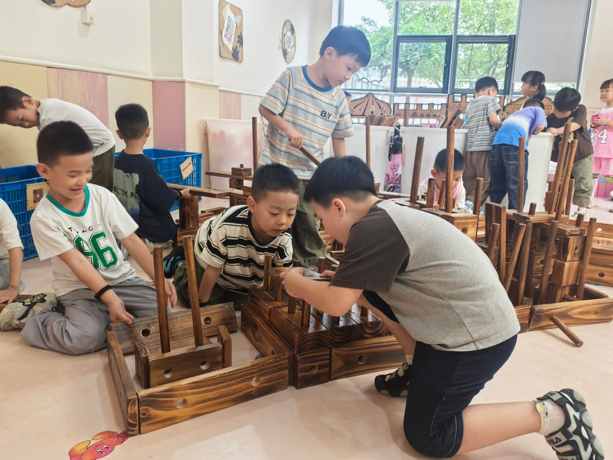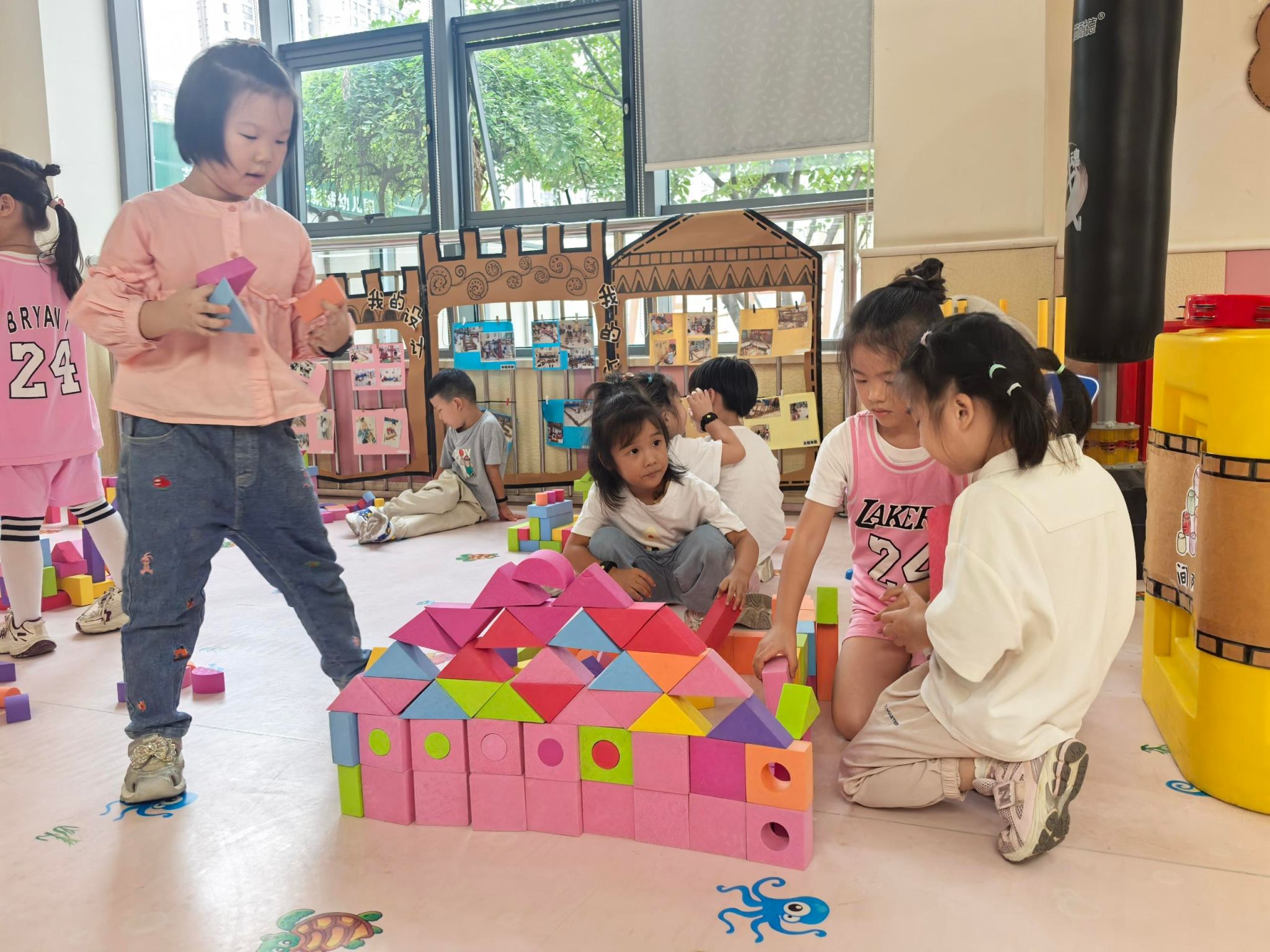 从一张图纸的设想到一座建筑的落成,需要什么?需要团队的合作,需要智慧的碰撞!看,我们“室内建筑工地”的小工友们,正分工合作,克服“施工”难题,共同完成这项了不起的工程呢!