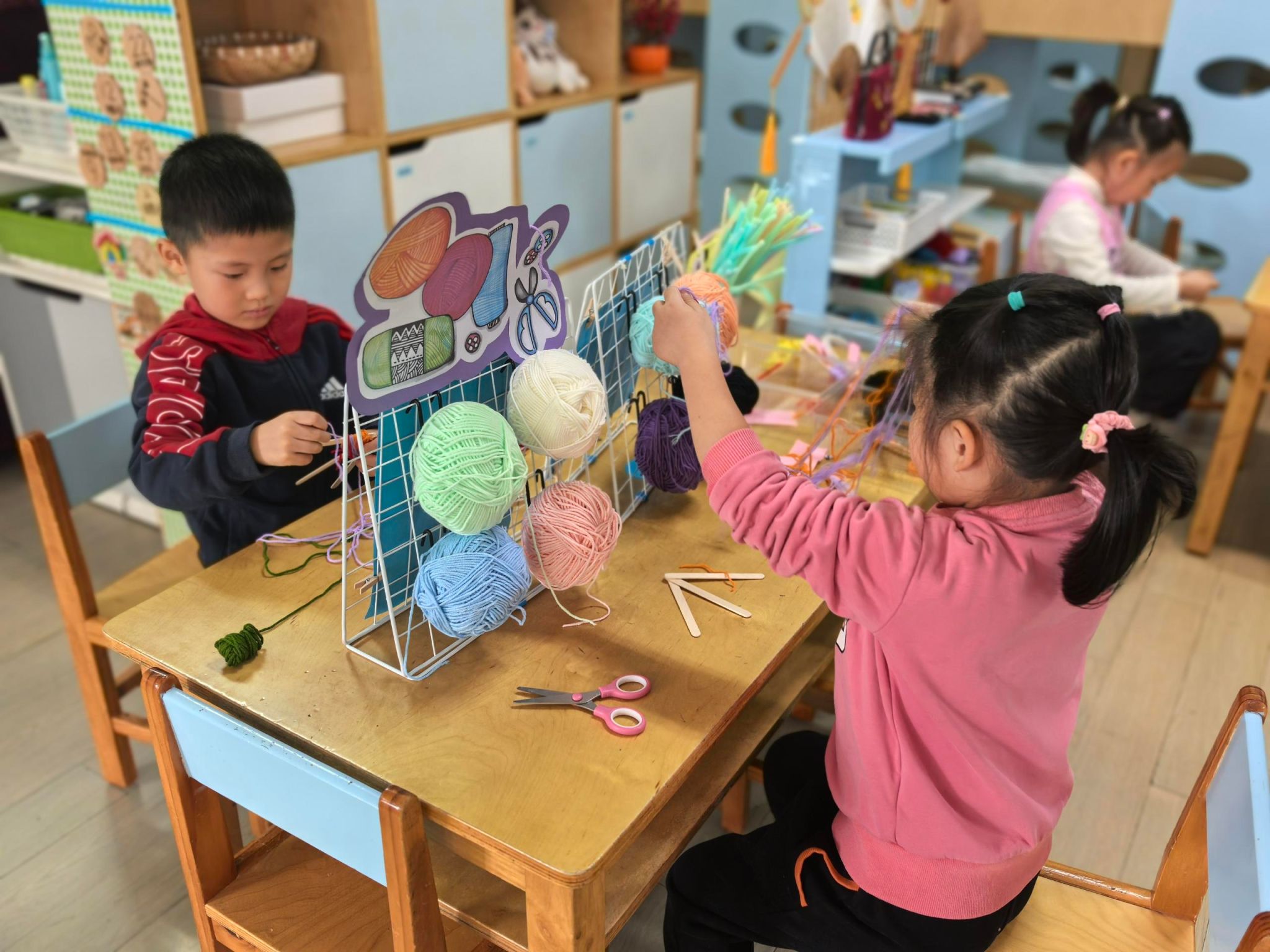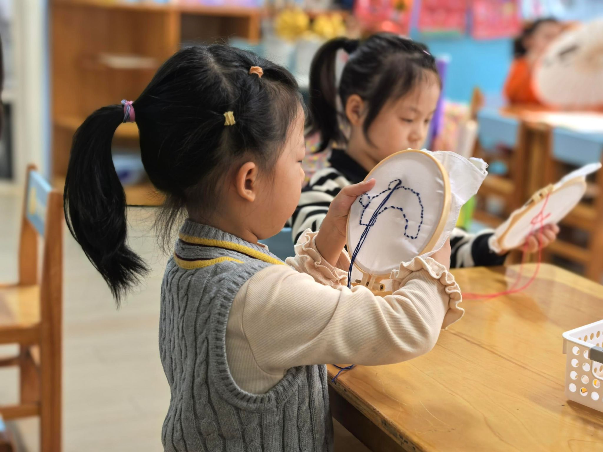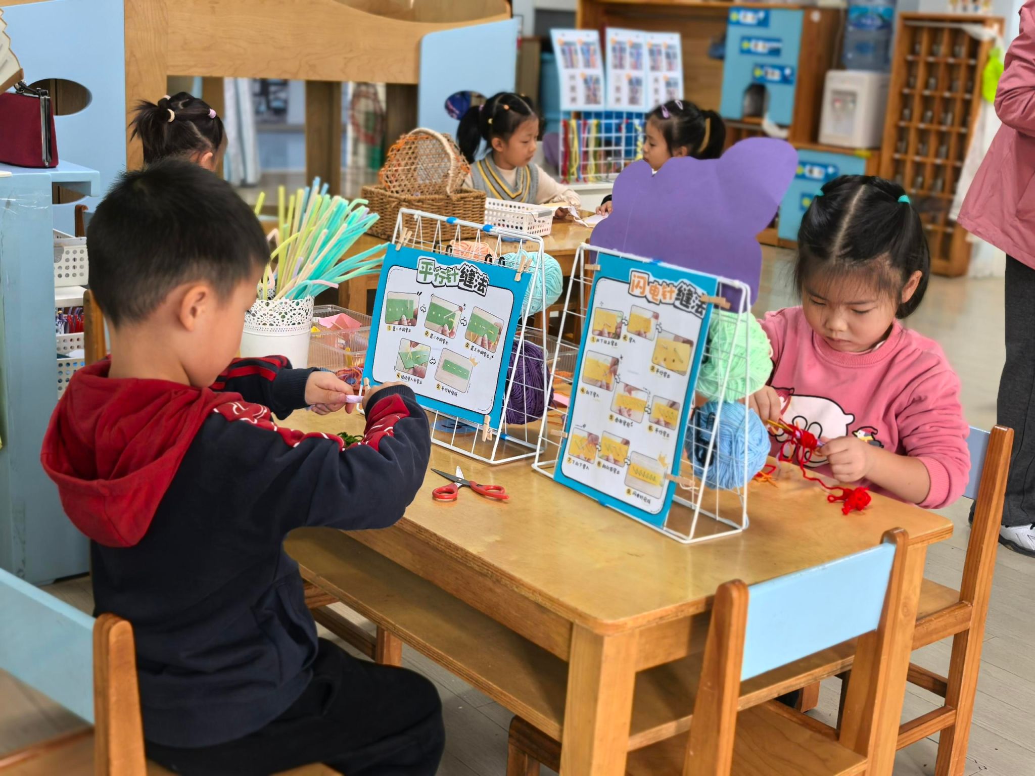 活动区域内精彩纷呈:“小巧匠”们用彩线刺绣,感受苏绣的细腻;在宣纸上晕染,体会水墨画的意境;用毛线编织,锻炼耐心与巧思。最受欢迎的当属“美食坊”,孩子们用黏土惟妙惟肖地制作出定胜糕、方糕等苏州糕点;建构区里,他们则用积木、彩纸设计出充满创意的现代花窗。