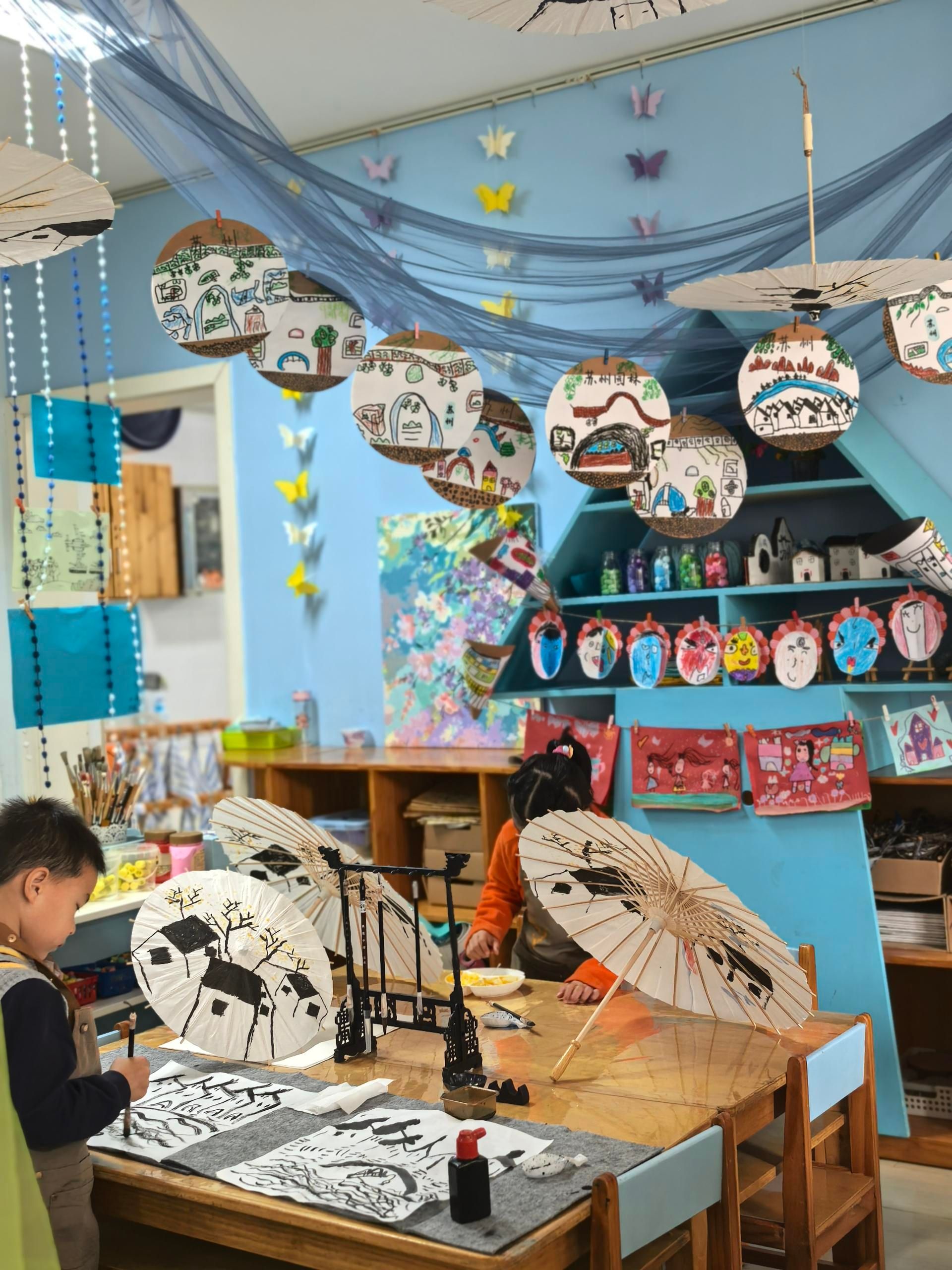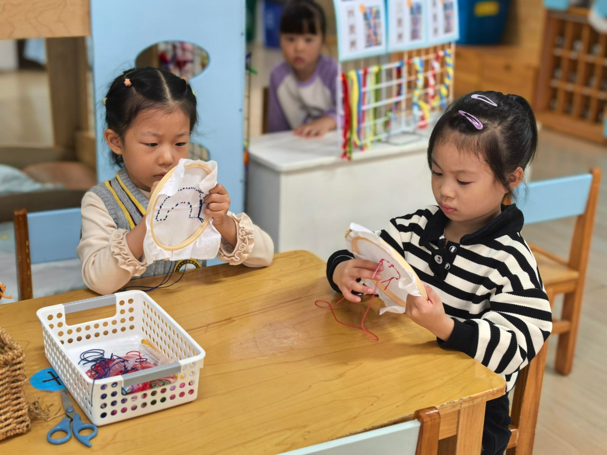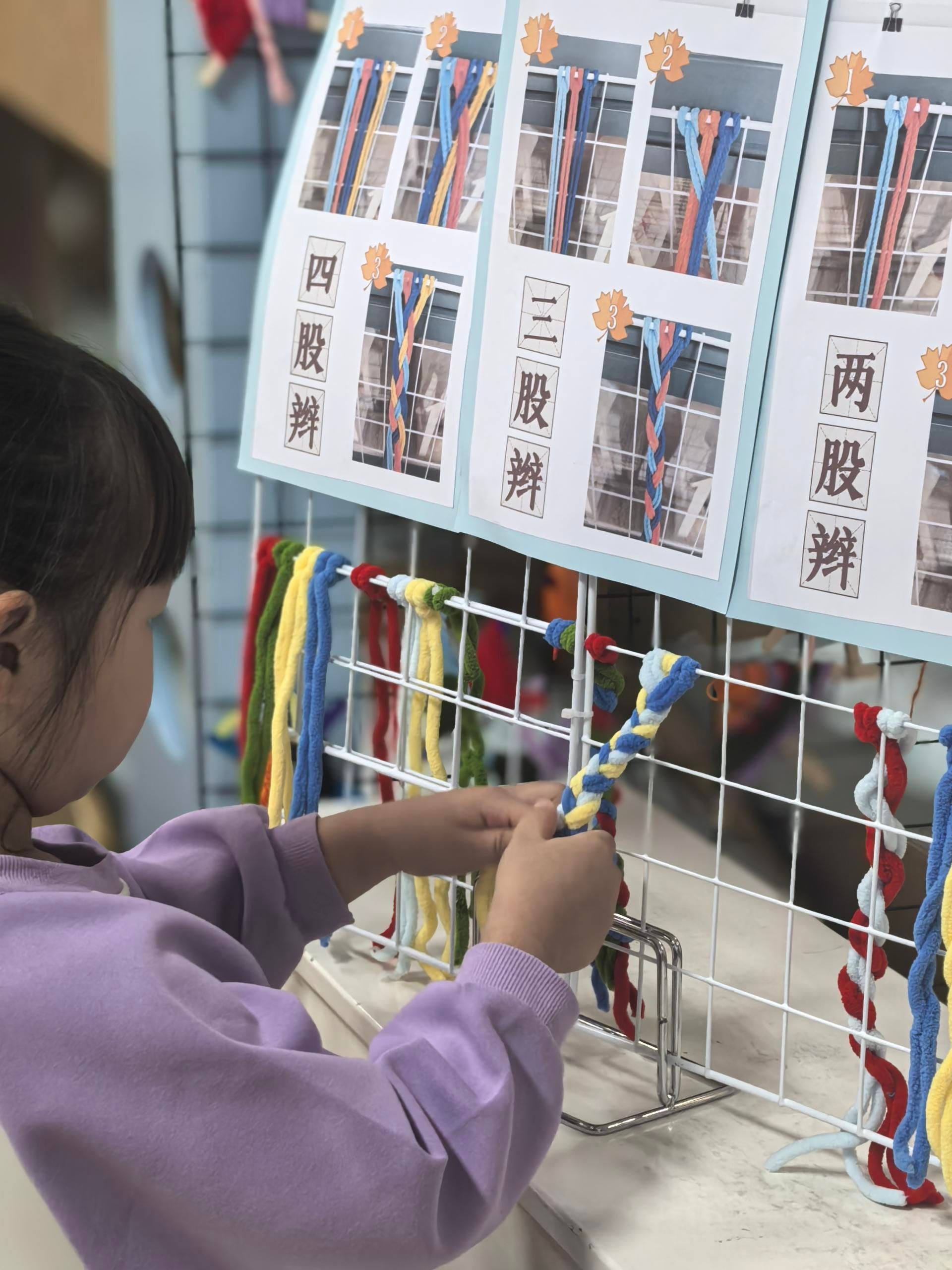 活动区域内精彩纷呈:“小巧匠”们用彩线刺绣,感受苏绣的细腻;在宣纸上晕染,体会水墨画的意境;用毛线编织,锻炼耐心与巧思。最受欢迎的当属“美食坊”,孩子们用黏土惟妙惟肖地制作出定胜糕、方糕等苏州糕点;建构区里,他们则用积木、彩纸设计出充满创意的现代花窗。