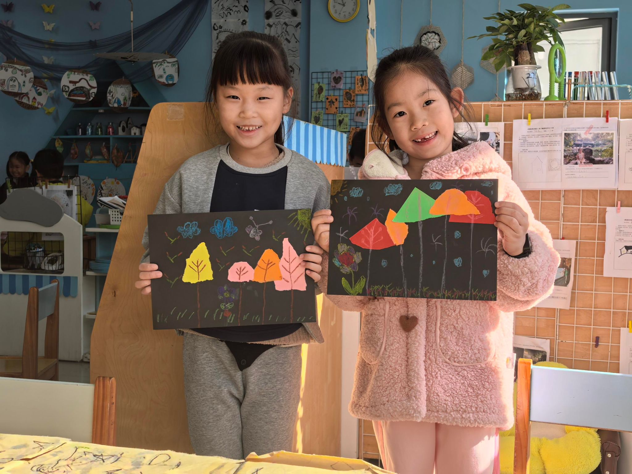 当创意遇见秋天,会碰撞出怎样的火花?在我园大班近日举行的撕贴画活动中,孩子们给出了答案。他们通过撕、贴、拼、叠等技巧,将普普通通的彩纸,变身为一幅幅色彩斑斓的“秋天的树林”。活动中,孩子们热情高涨,不仅体验了手工的乐趣,提升了动手能力与想象力,更在合作与分享中,加深了对季节变化的感知和对大自然的热爱。我们一起开看看孩子们的创作作品吧!