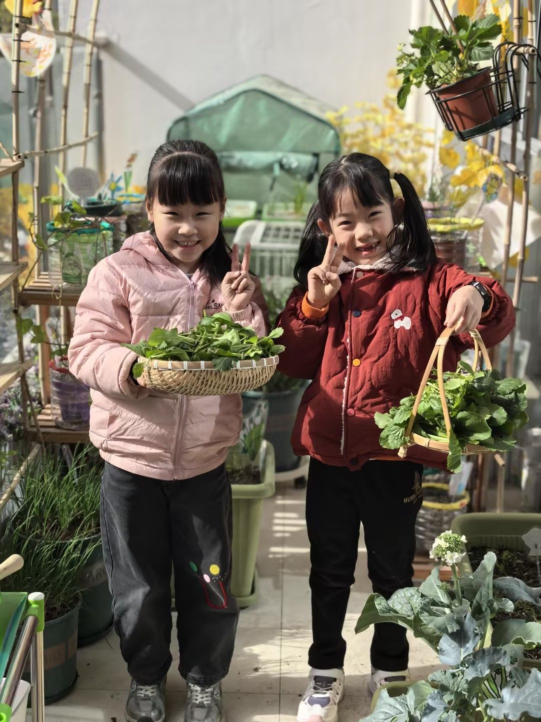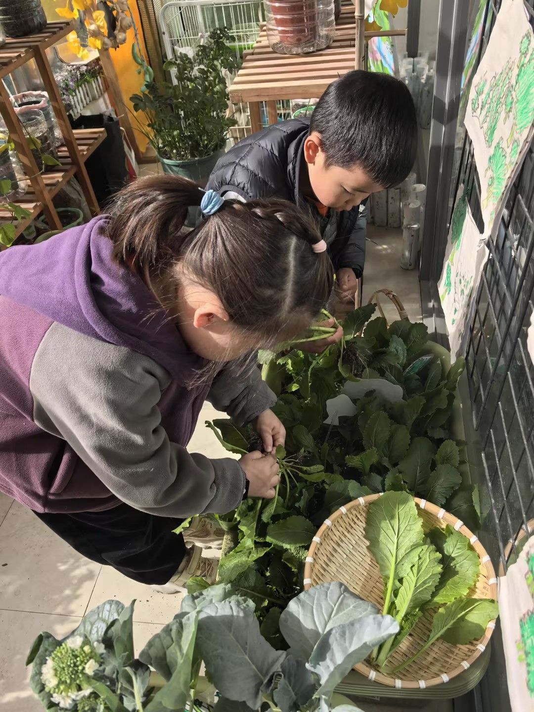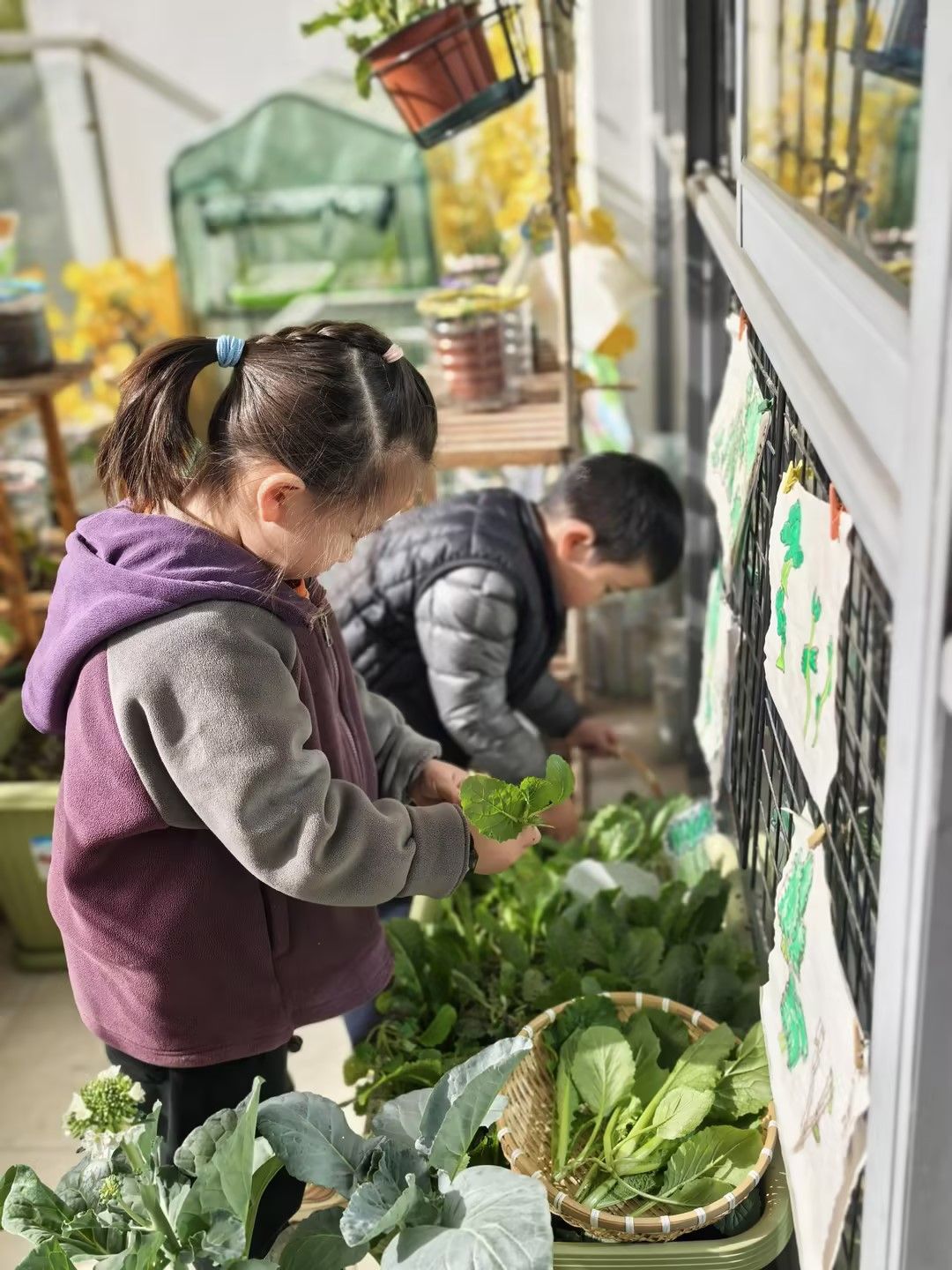 冬日暖阳下,班级阳台自然角一片欢声笑语。孩子们正收获自己亲手种植的油麦菜。他们细心采摘,清洗整理,脸上洋溢着自豪的笑容。这次从播种到收获的亲身体验,让孩子们成为了自然的小主人,在劳动中学习了植物知识,更真切地感受到了生命的力量与收获的满足,获得了宝贵的成长。让我们一起看一看孩子们的笑脸吧!