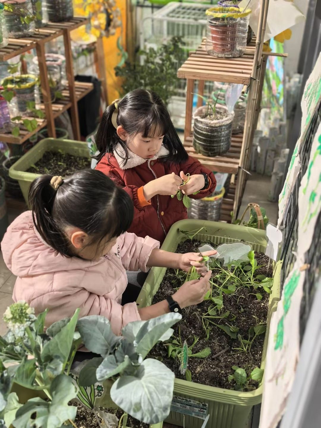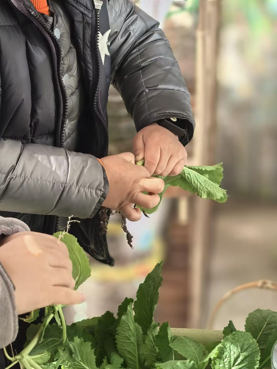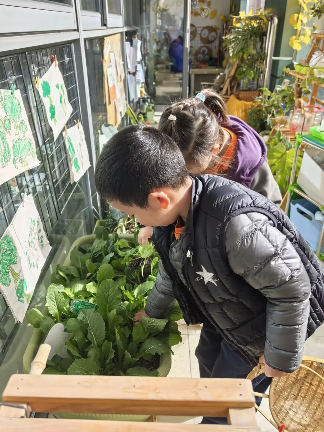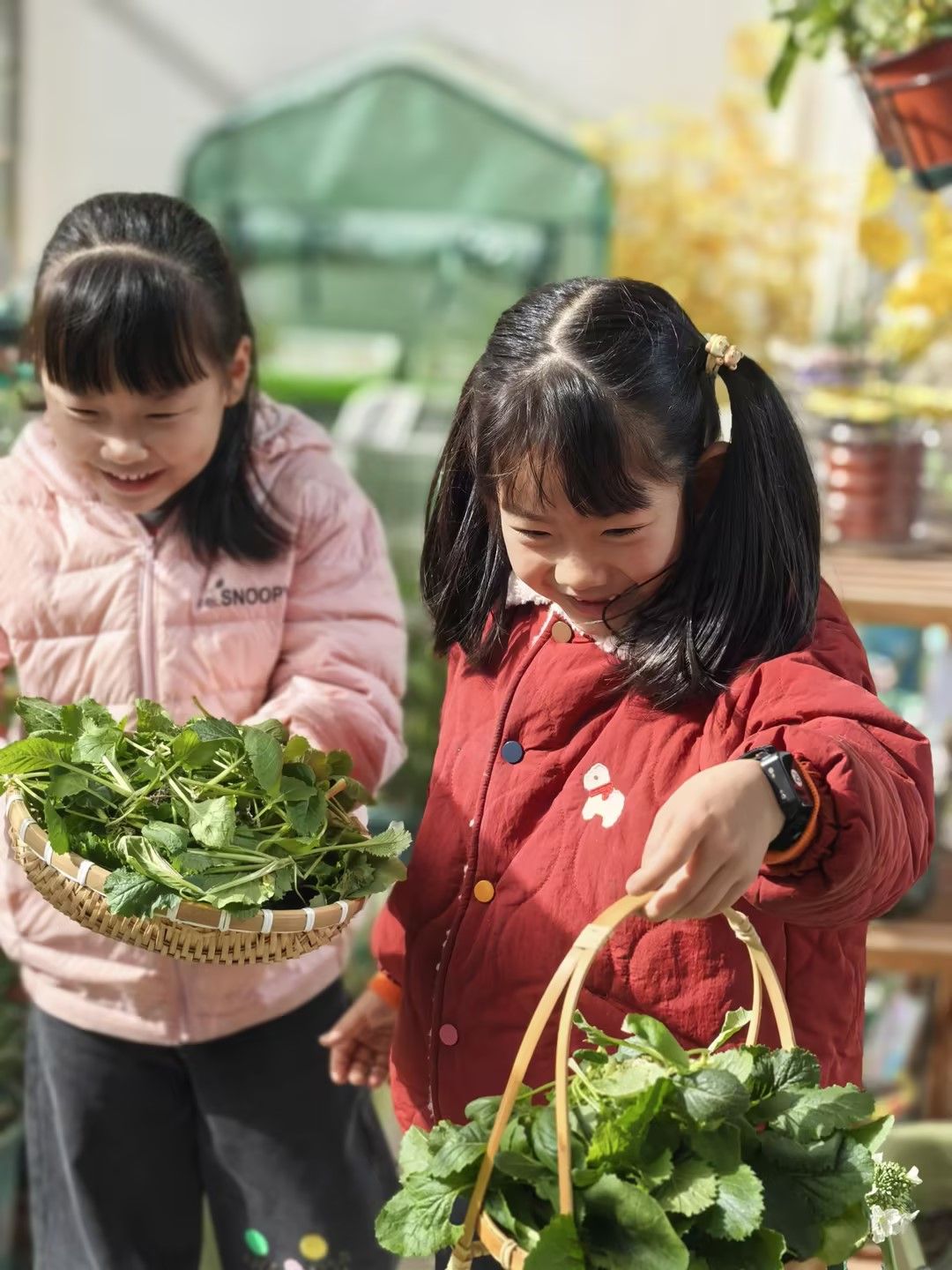 冬日暖阳下,班级阳台自然角一片欢声笑语。孩子们正收获自己亲手种植的油麦菜。他们细心采摘,清洗整理,脸上洋溢着自豪的笑容。这次从播种到收获的亲身体验,让孩子们成为了自然的小主人,在劳动中学习了植物知识,更真切地感受到了生命的力量与收获的满足,获得了宝贵的成长。让我们一起看一看孩子们的笑脸吧!