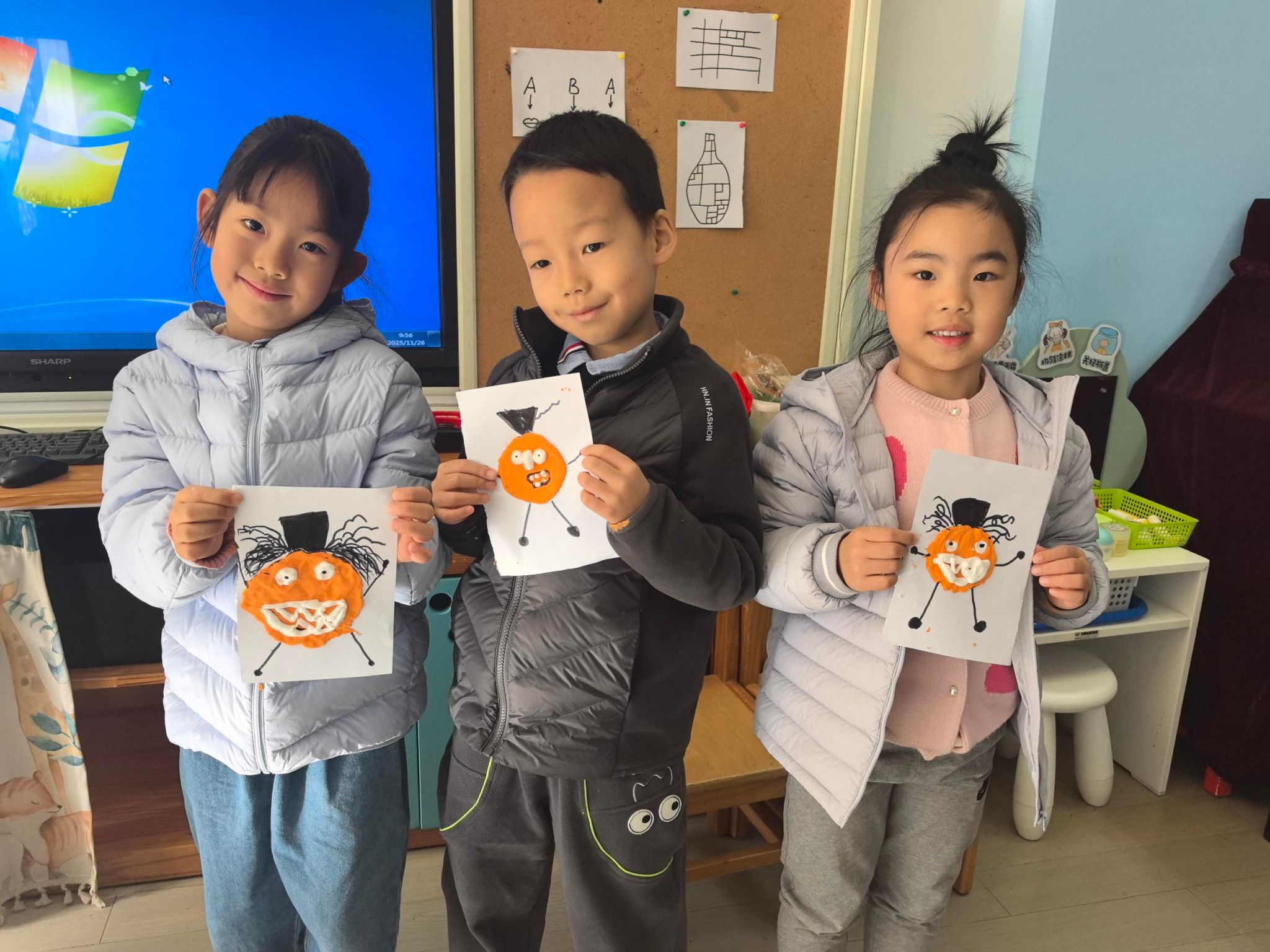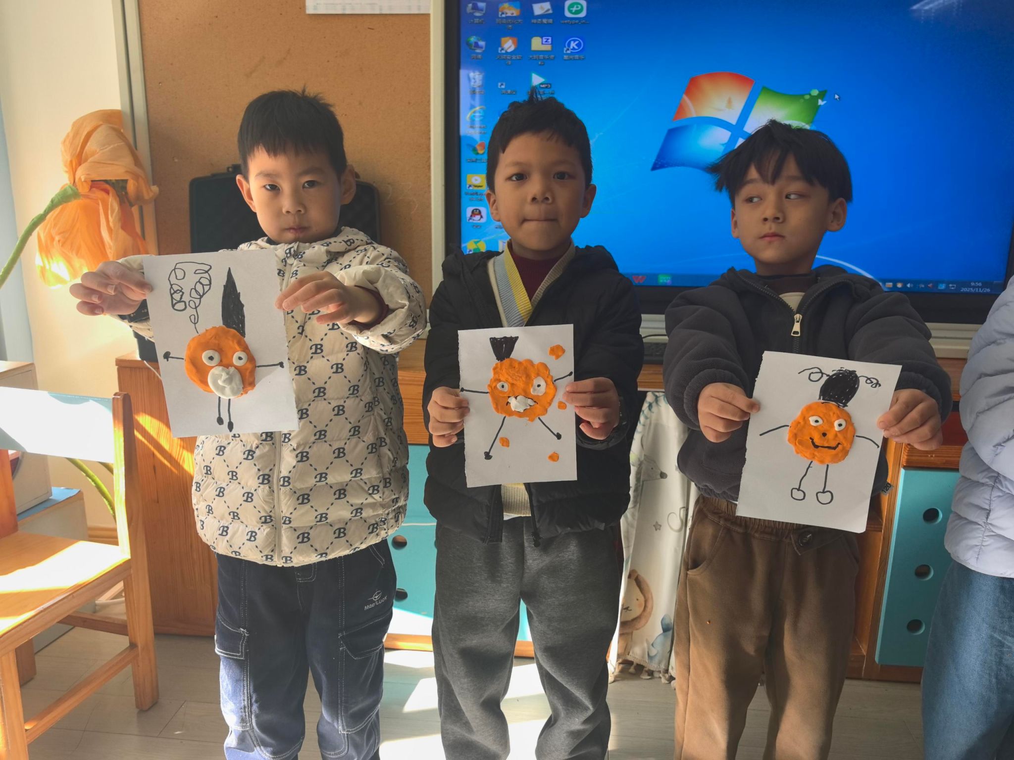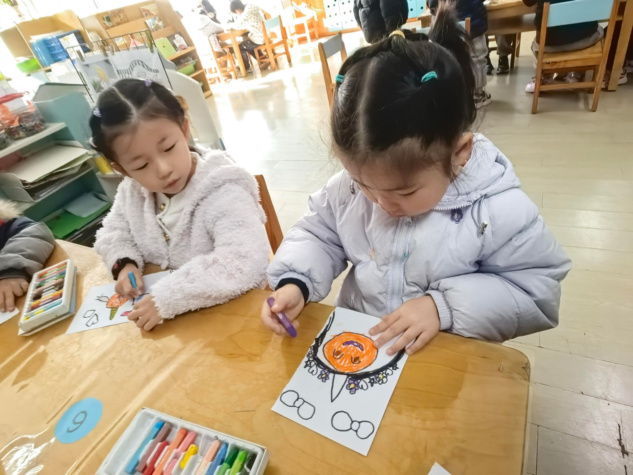 创作的高潮是用蜡笔进行添画。孩子们发挥想象,有的在南瓜旁边画上了栅栏和星空,有的用线条和图案装饰南瓜表面,还有的描绘出载满南瓜的马车。他们互相展示作品,分享着“我的南瓜最胖”“我的南瓜住在花园里”的童趣故事。活动中,揉捏、粘贴与绘画相结合,不仅锻炼了手部精细动作,更让孩子们在色彩与造型的组合中体验到艺术创造的无限乐趣。