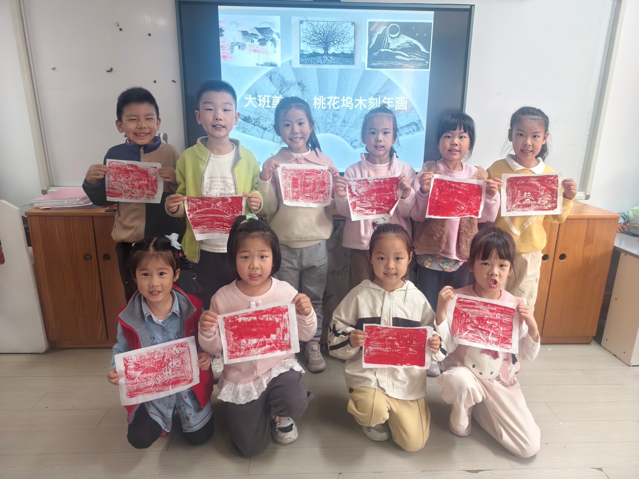 活动中我们欣赏了桃花坞木刻年画,了解了苏州传统手工艺制作的全过程,然后孩子们也开始了尝试!学着木刻年画的制作方法,我们用画——刻——印这三个步骤制作出了属于我们的版画!
