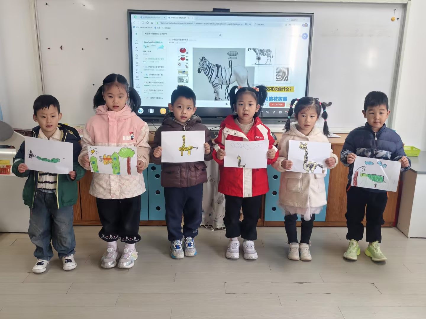 今天,我们认识了许多动物,仔细观察了这些动物身上花纹的特点,感受了动物花纹的美丽,了解了动物身上的花纹与环境之间的关系。然后用自己的画笔画出动物的花纹,给动物穿上新衣服,来看看小朋友们进行的创作吧!