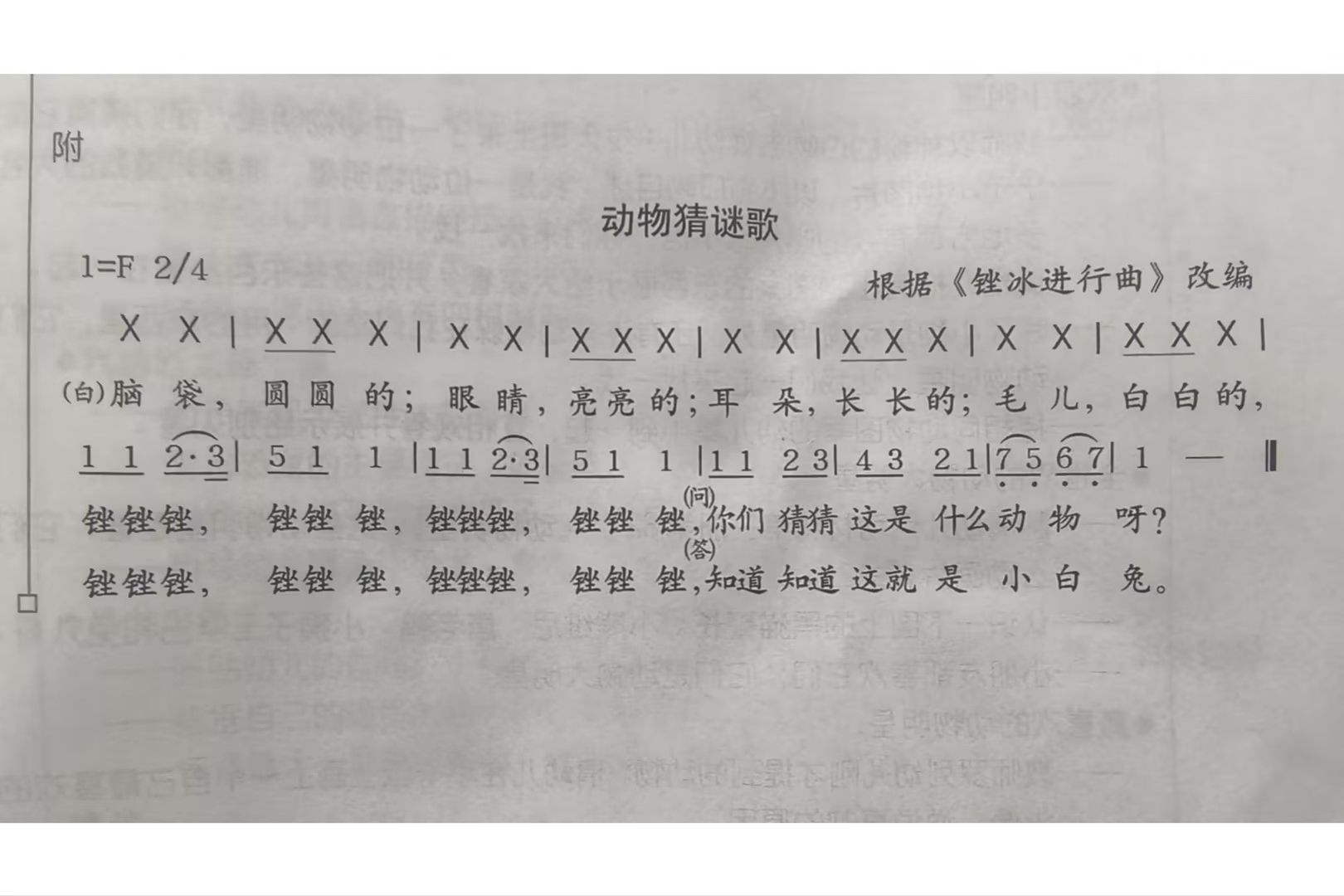 《动物猜歌迷》,这首儿歌,是采用对唱的形式,来感受歌曲的幽默、有趣,以及说唱结合的形式,体验说唱谜面和谜底的乐趣。小朋友们回家可以跟着爸爸妈妈一起创编更多的小动物谜语,用对唱的形式演唱出来!