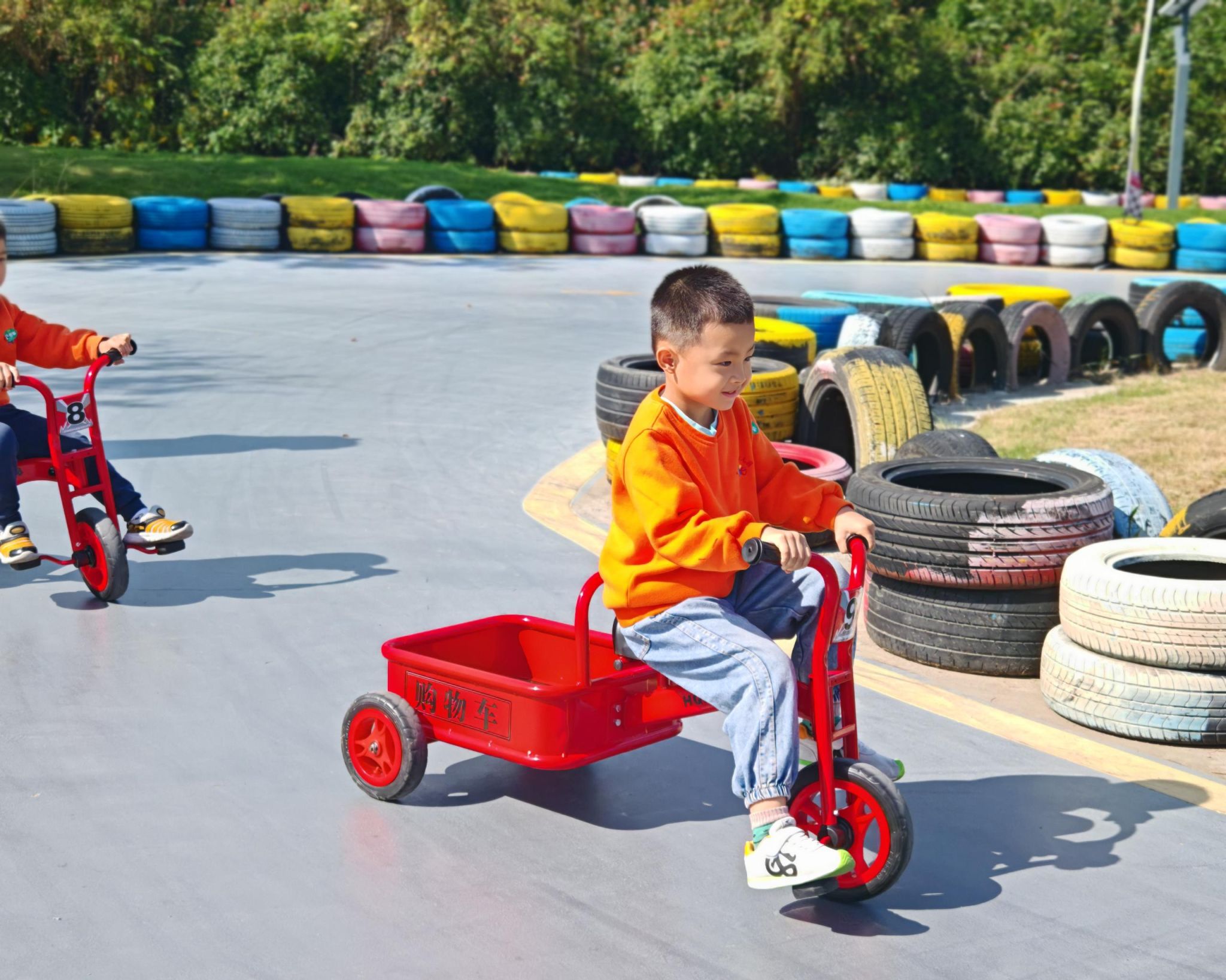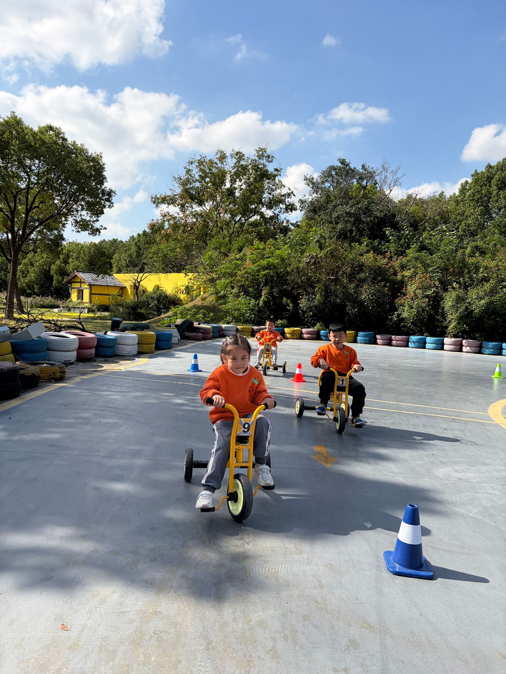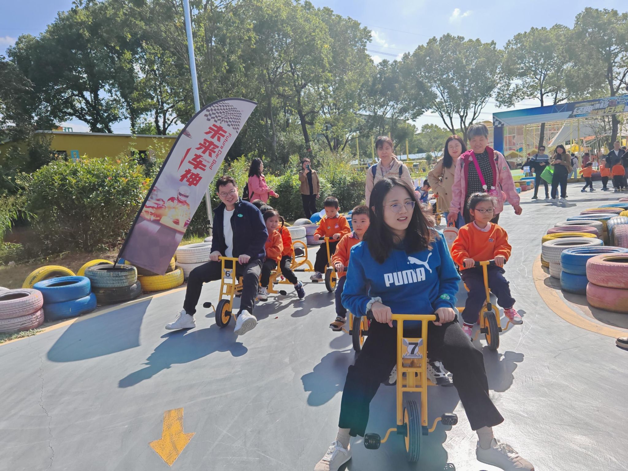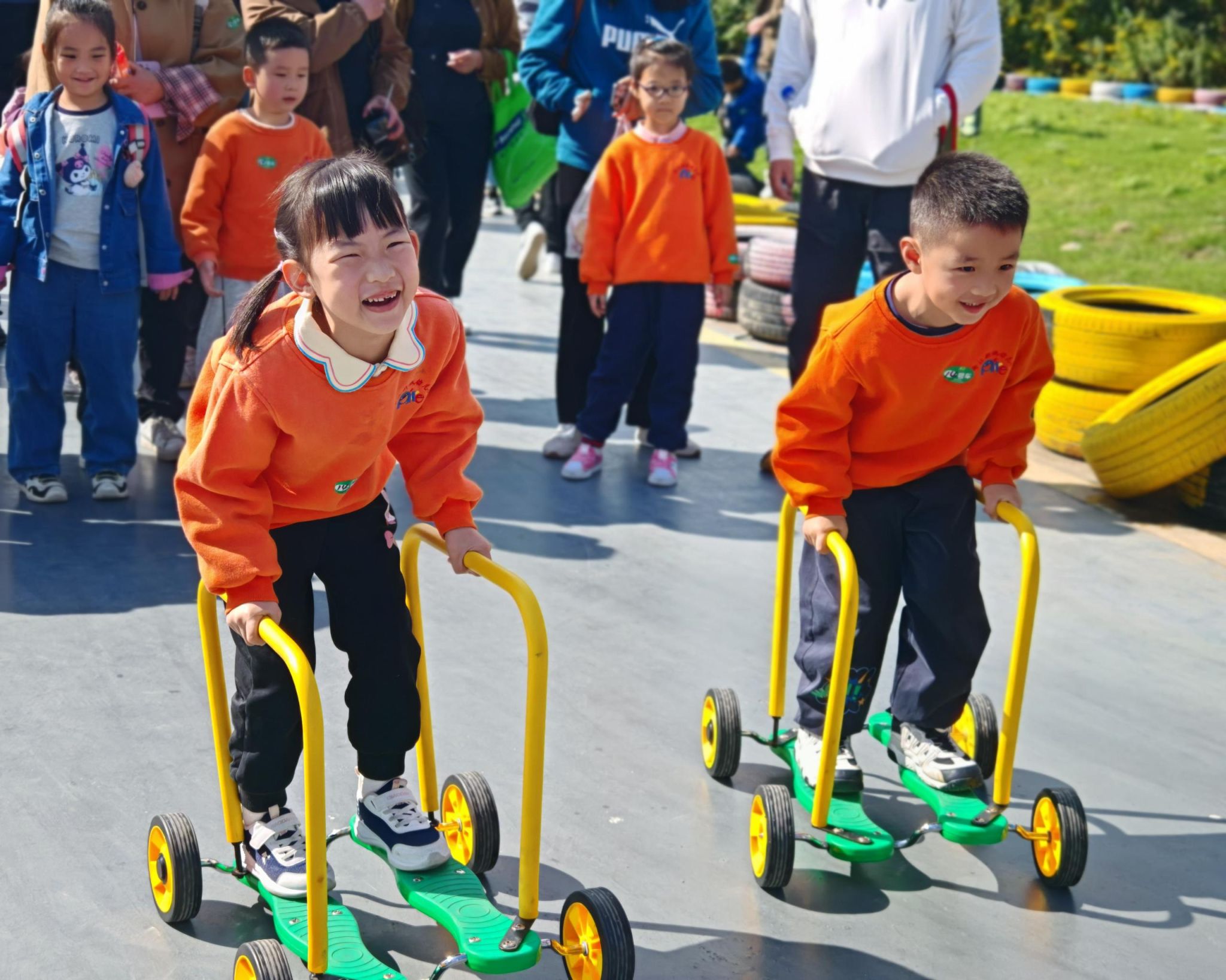 风裹着秋阳的暖,把亲子秋游酿成了甜甜的诗。 橙衣小团子们牵着家长的手,在乐园里撒开了欢:双人小车“嘀嘀”碰出笑声,连排骑行时,爸爸妈妈们的后背成了最稳的依靠,孩子们的笑脸比晴空更耀眼。 镜头定格的大合影里,每道影子都裹着暖意——这大概就是秋天最好的礼物:有自然的风,有同伴的闹,还有身边稳稳的陪伴。