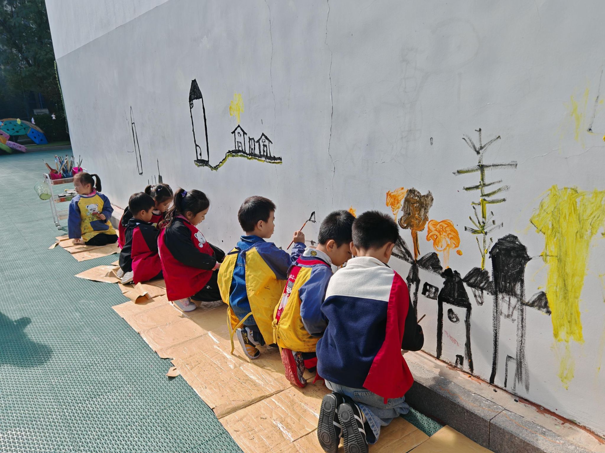 这里是孩子们的“户外艺术实验室”,没有条条框框,只有无限可能。 墙面、地面都是超大画布,蜡笔、粉笔、水刷笔任他们挑选。孩子们三两合作,画下探险的故事、心中的城堡,用大胆笔触和明亮色彩,把自然与想象都变成独一无二的作品。