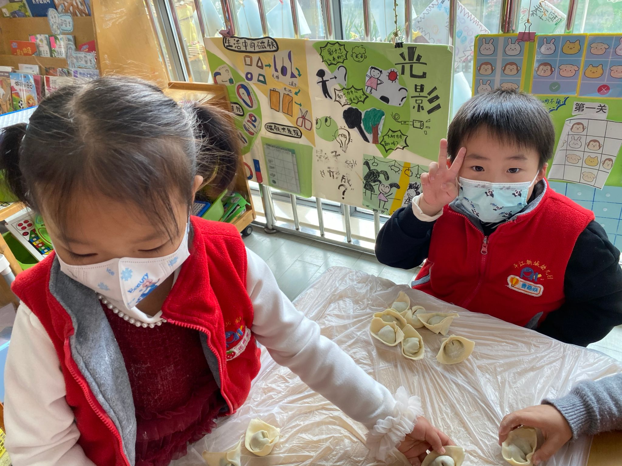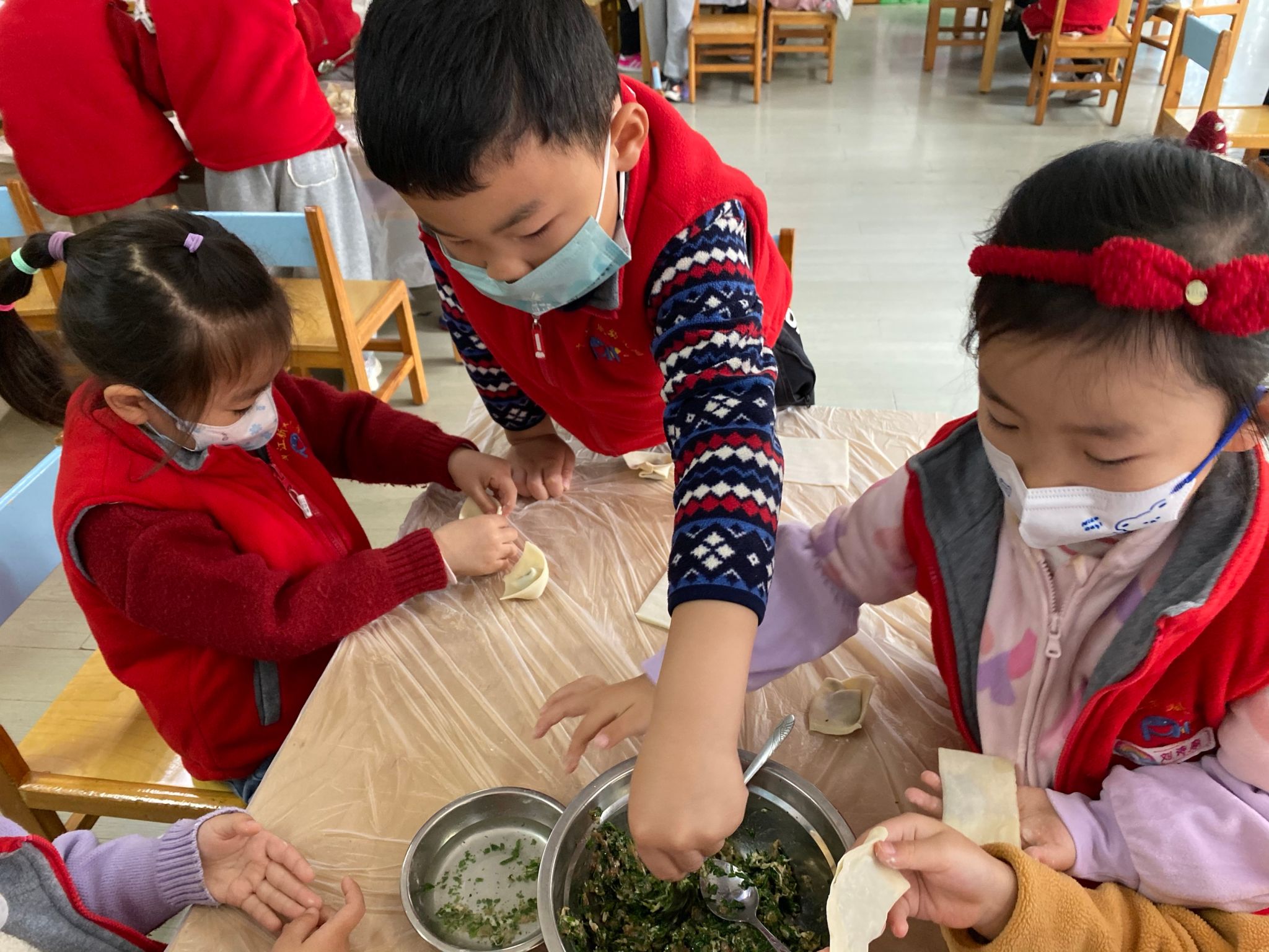 冬至时节,班级里的小朋友们围坐在桌前包馄饨啦!小手里拿着馄饨皮,认真地舀馅料、捏边儿,一个个专注又可爱。虽然包出来的馄饨形状各异,但满是童真与欢乐。亲手制作的馄饨,让孩子们在体验中感受传统节气的温暖与趣味。