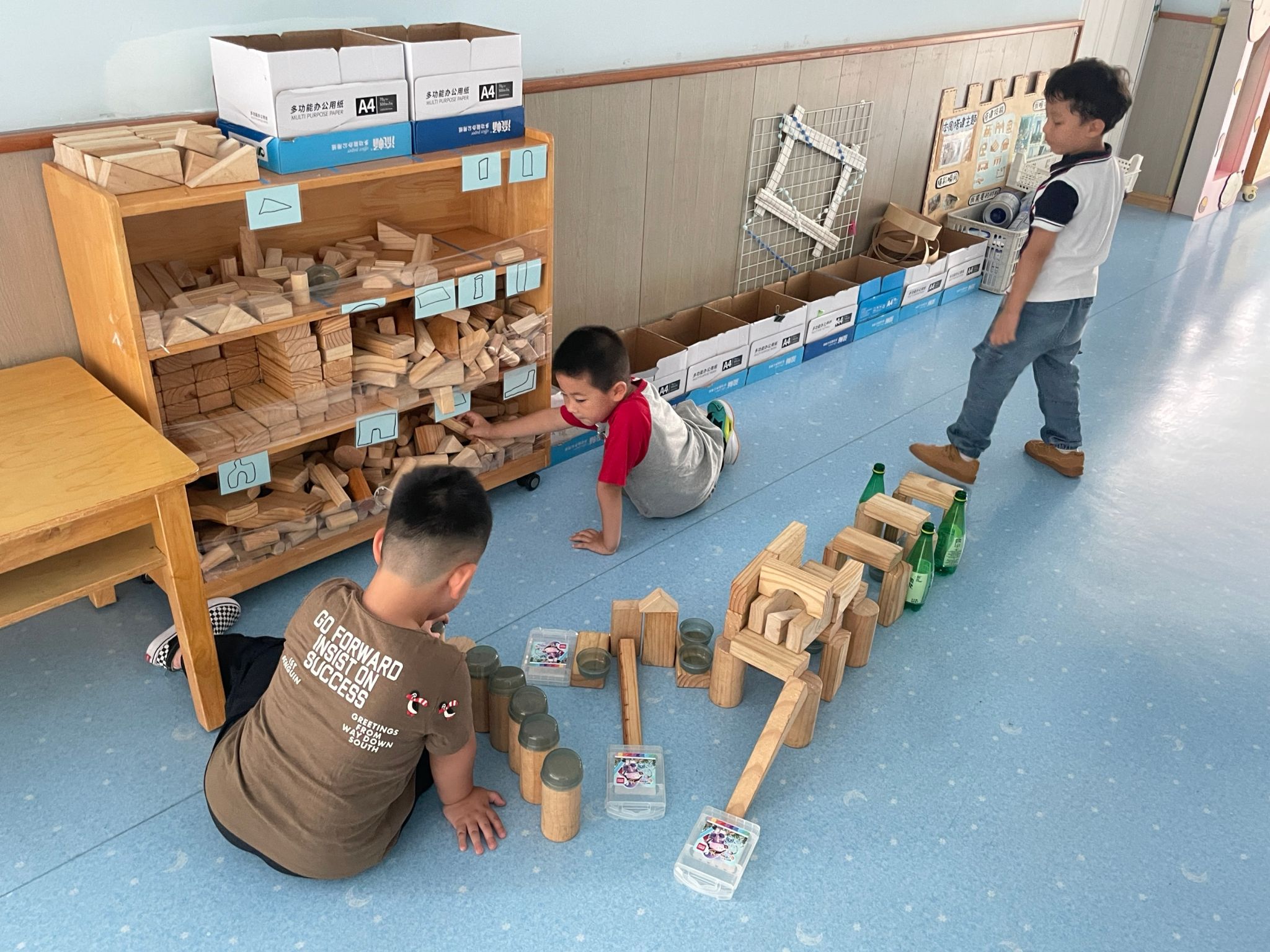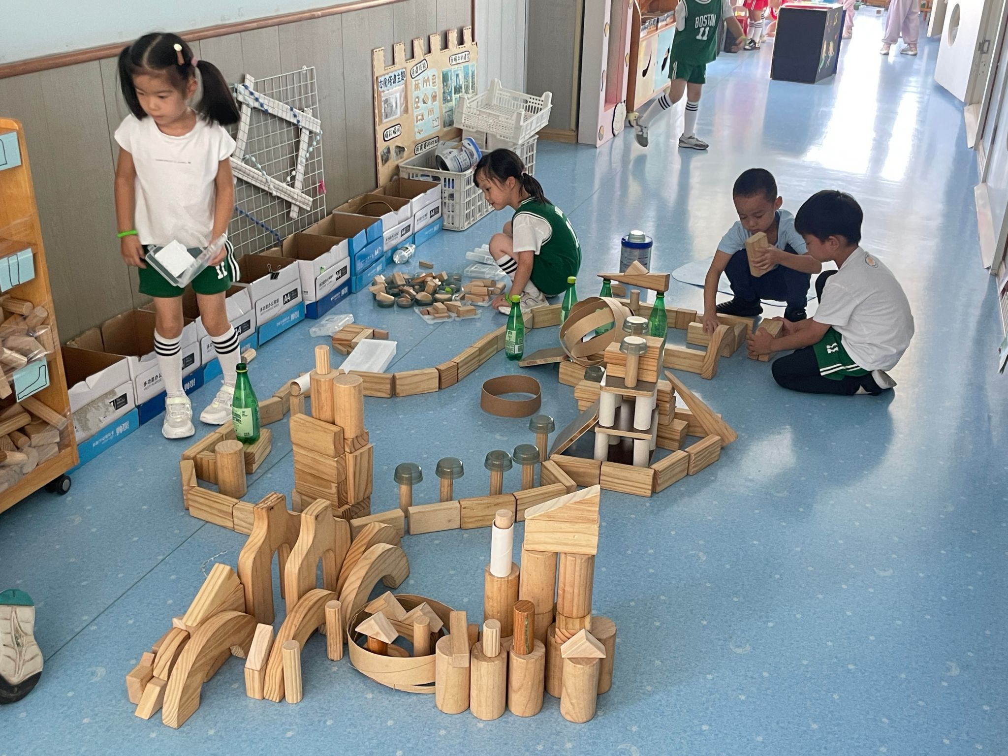 我们要搭建一个很漂亮的园林,有山有水还有小桥供人们行走,我们搭建完还会自己把积木摆放到指定位置,你们看是不是很整齐!