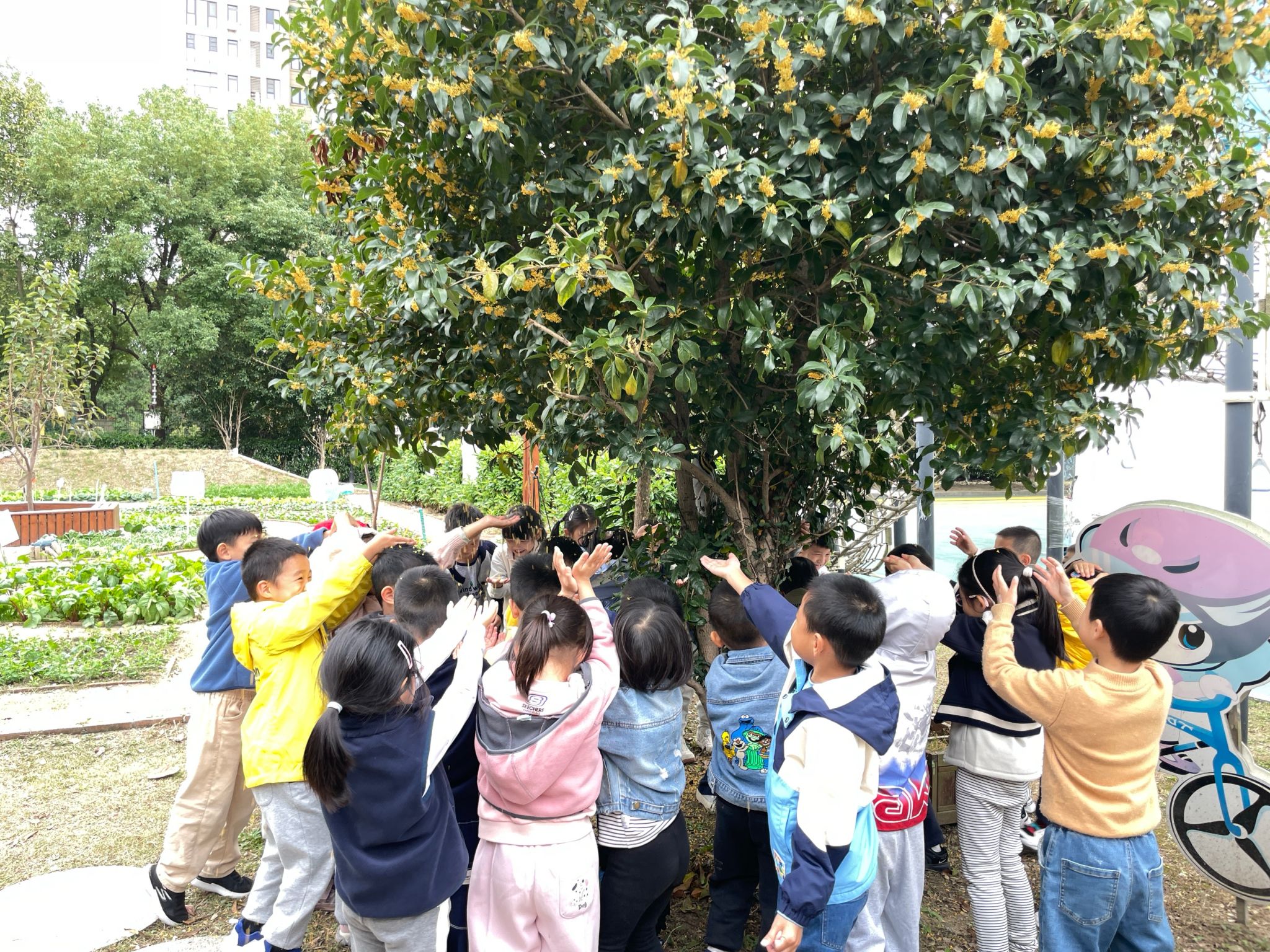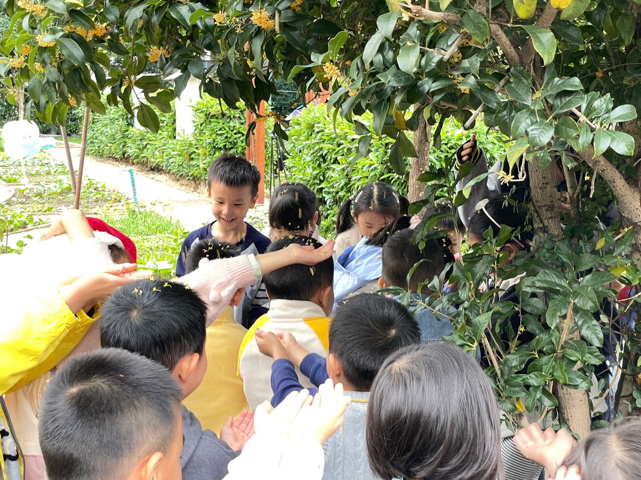 下了一场桂花雨,好香好香,我们的头都变得香喷喷的!