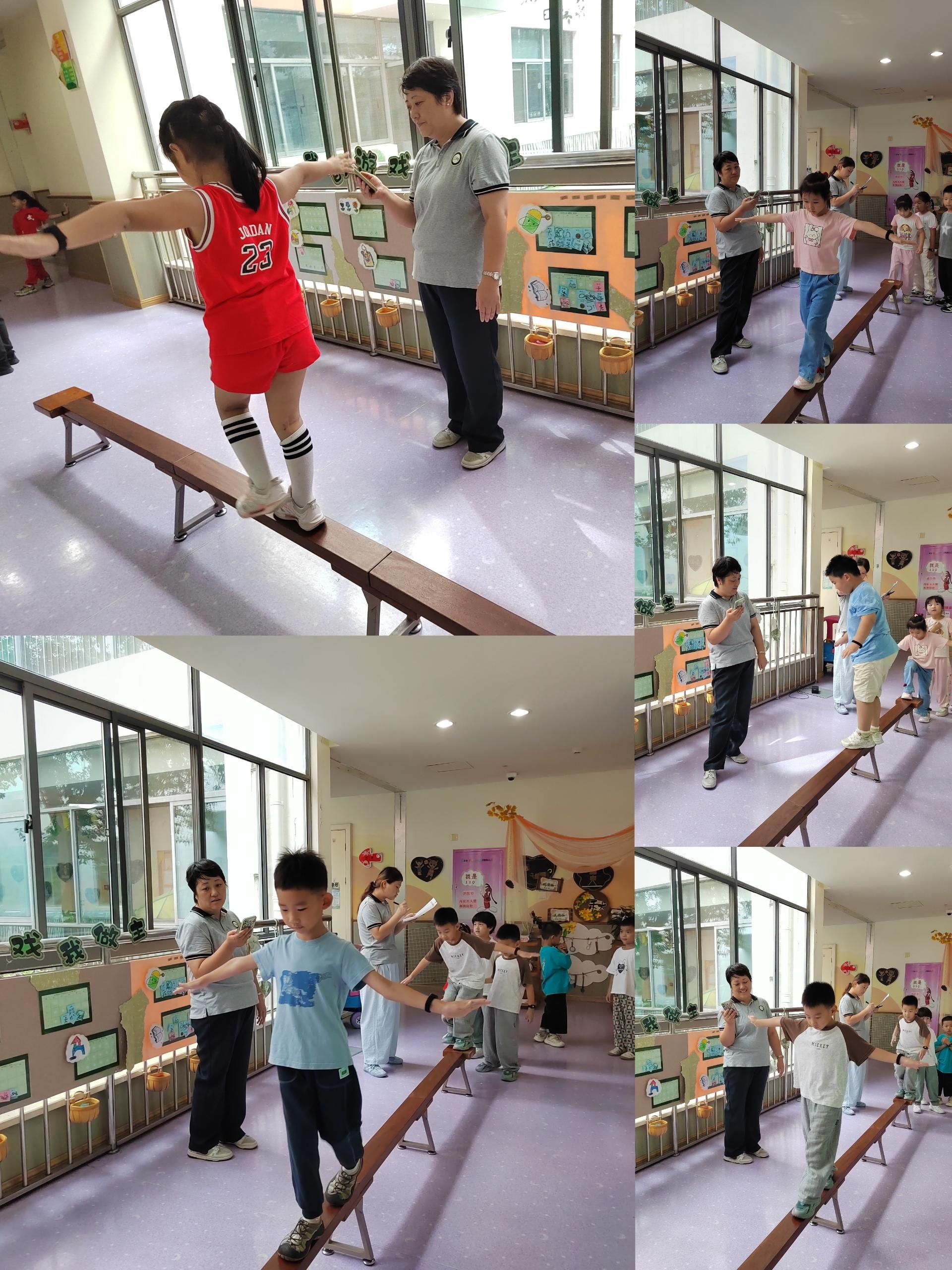 走平衡木、网球掷远、坐位体前屈、立定跳远等。