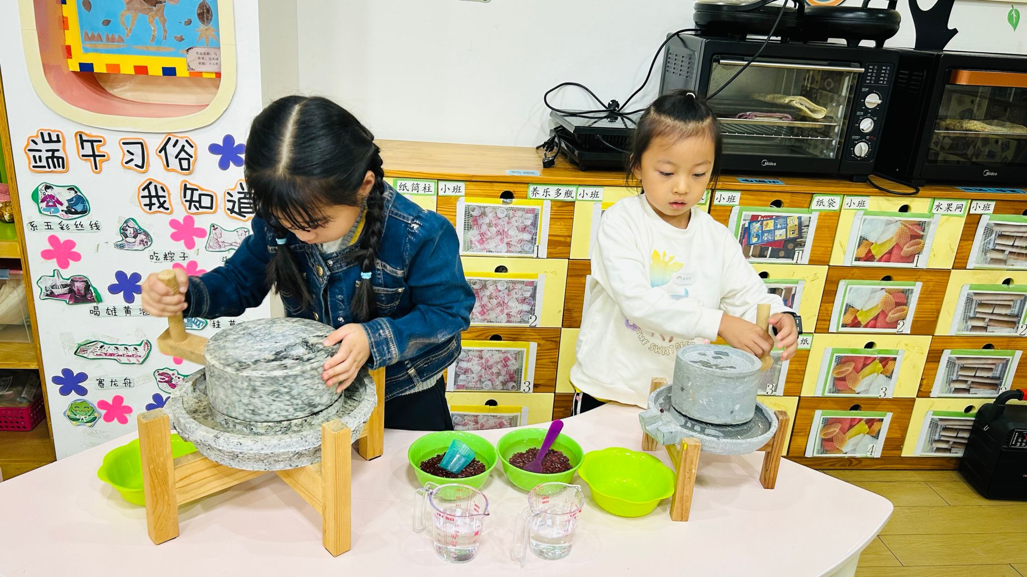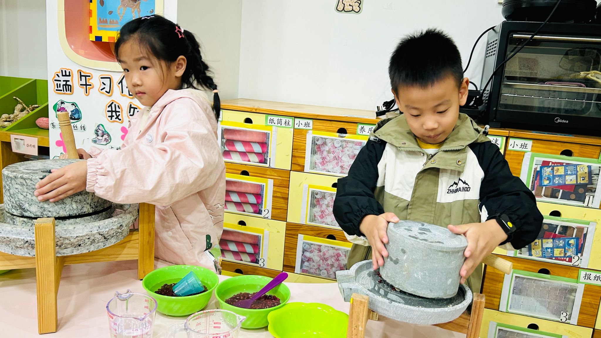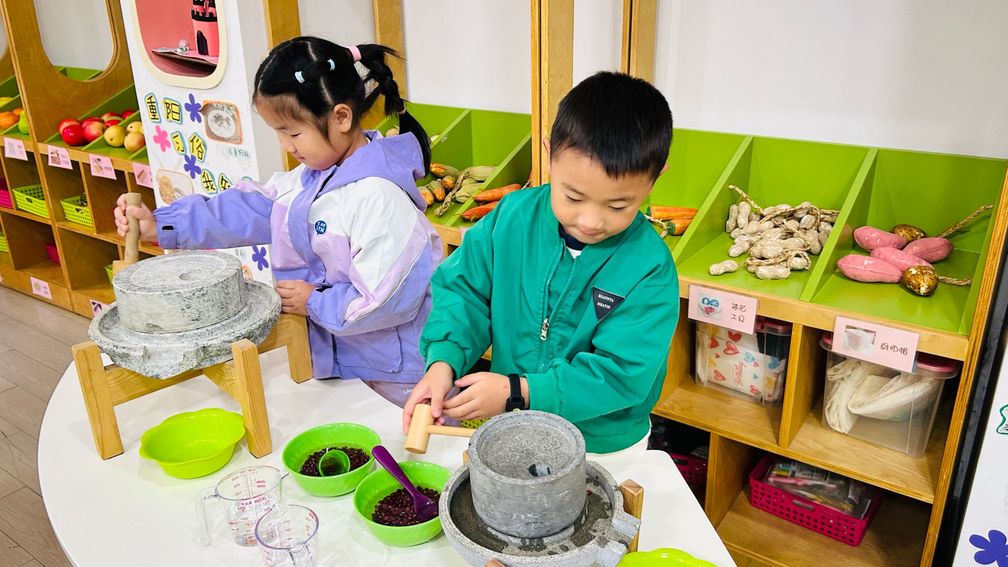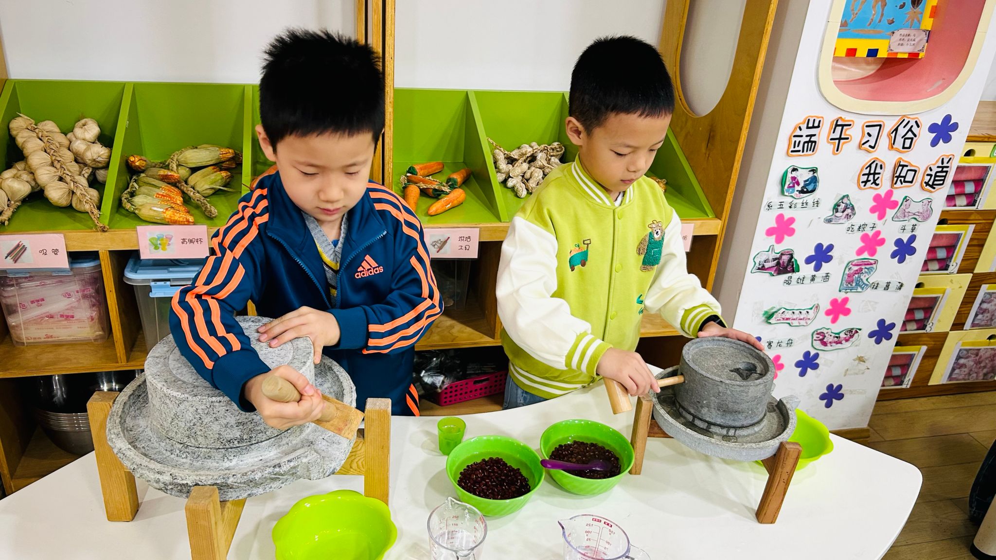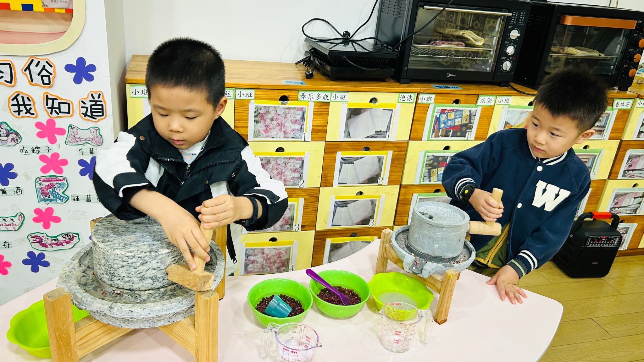 磨盘转动,豆浆沿着磨槽慢慢流出,