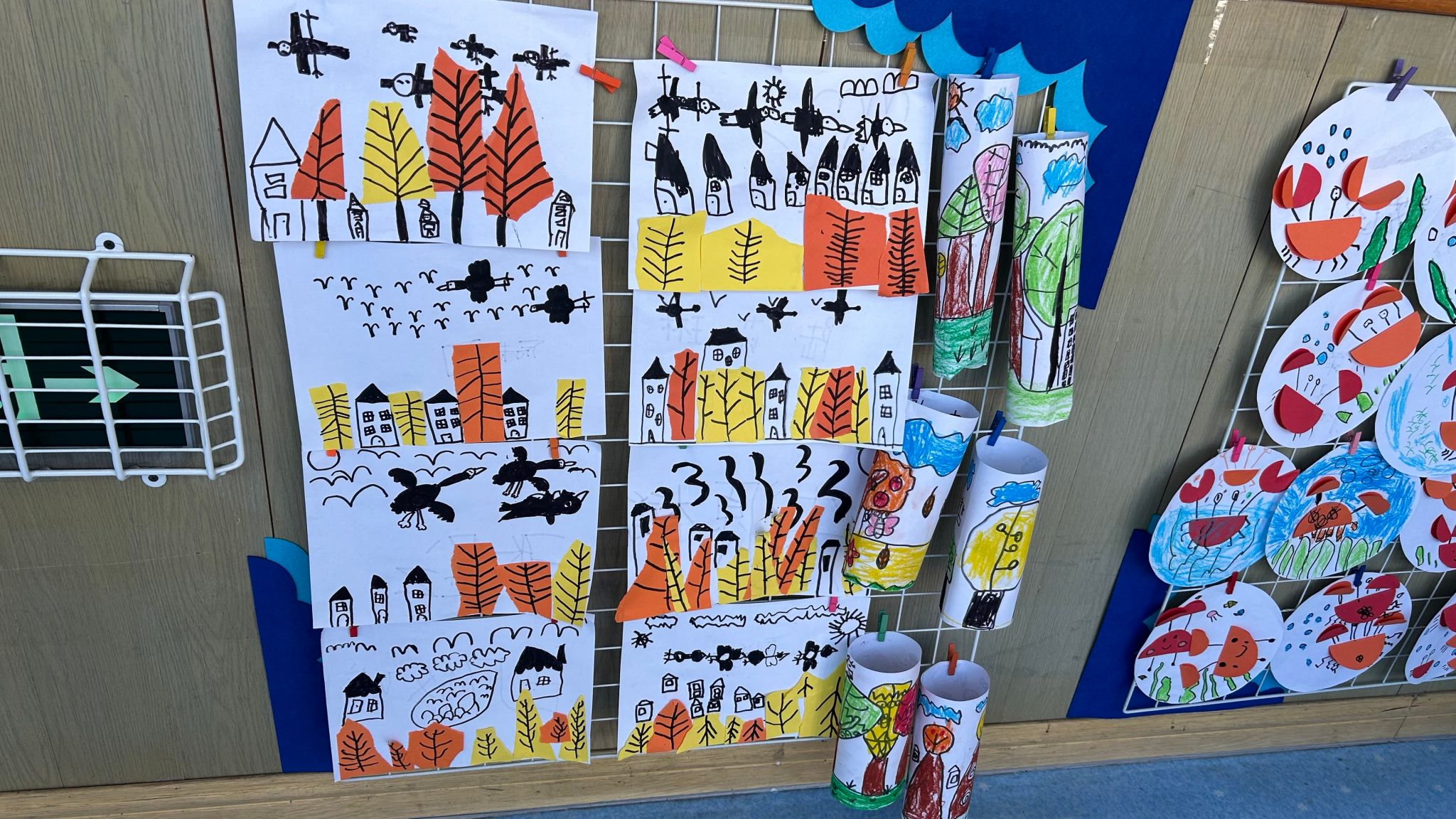 宝贝笔下的秋日童话呈现在班级的各个角落……