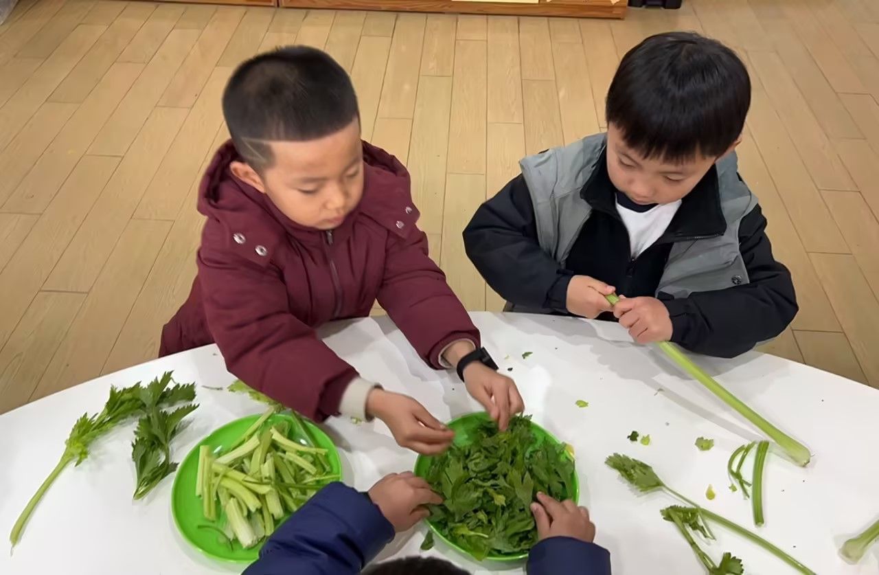 “咔嚓咔嚓”,生活技能室里传来一阵阵清脆的声响——原来是孩子们正专注地给芹菜“理头发”呢!这堂以择、切芹菜为主题的生活活动,不仅让孩子们认识了常见蔬菜,更在动手实践中收获了满满的成长能量。孩子们的小手在反复操作中变得越来越灵巧,为未来的书写、绘画等技能打下基础。
