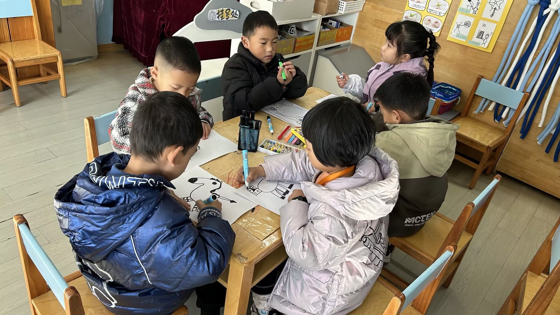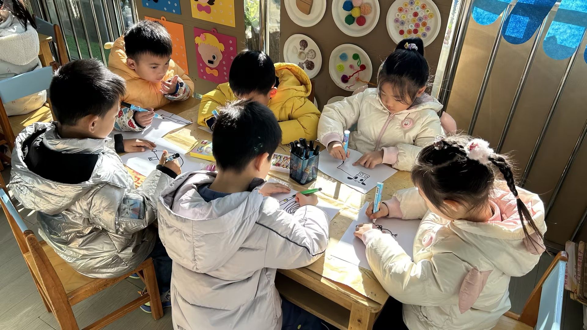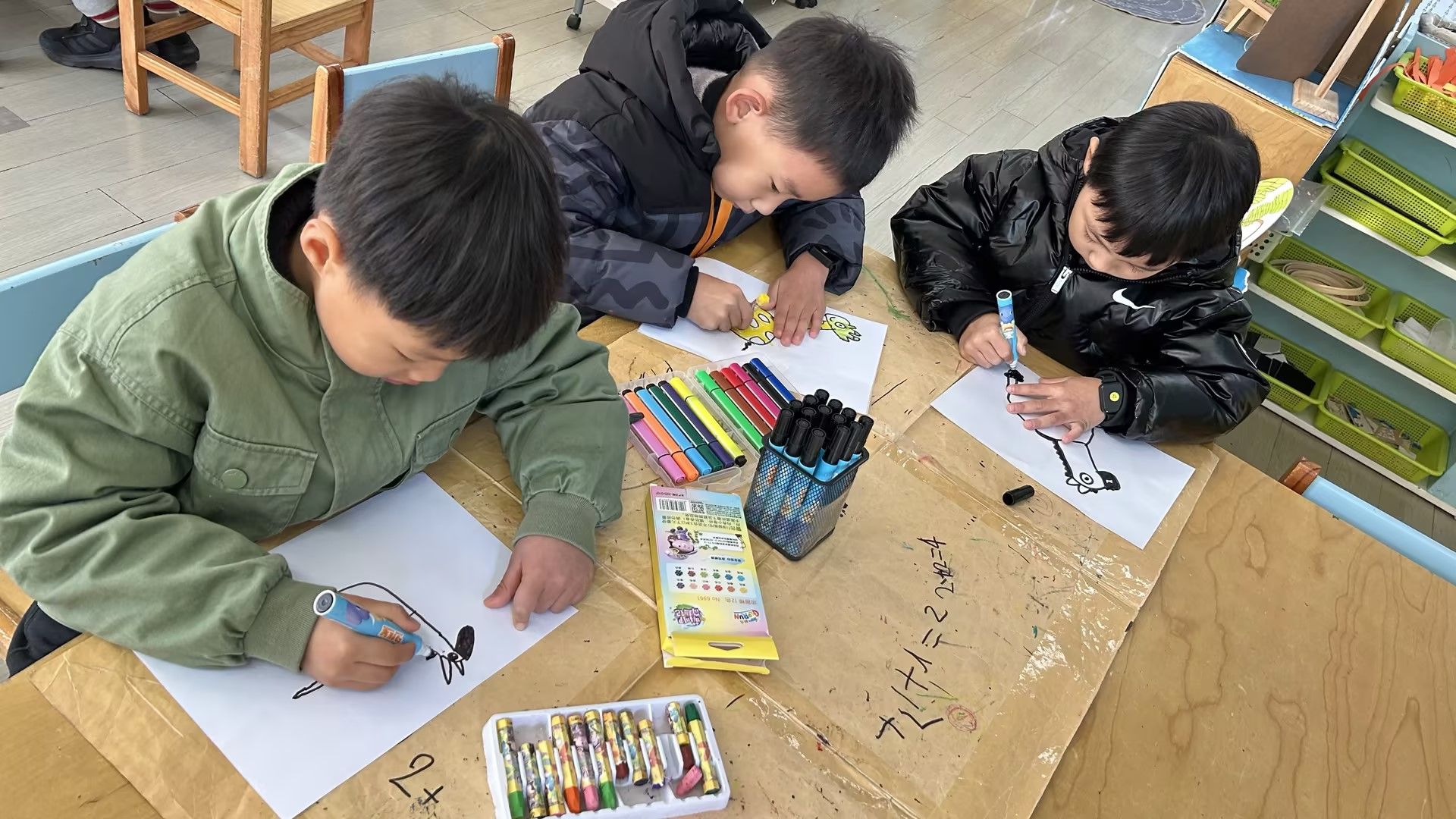 在活动中,孩子们用简单的笔当“魔法工具”,