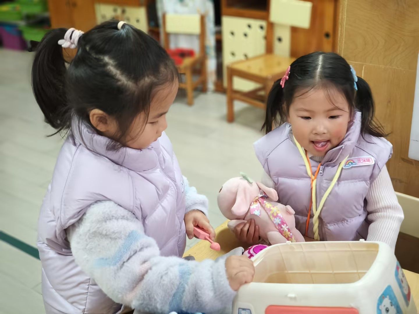 幼儿园里最开心的时光,一定就是创造性游戏了。在游戏里,我们扮演爸爸妈妈、医生、歌唱家等,和小朋友一起玩,真是太幸福了……