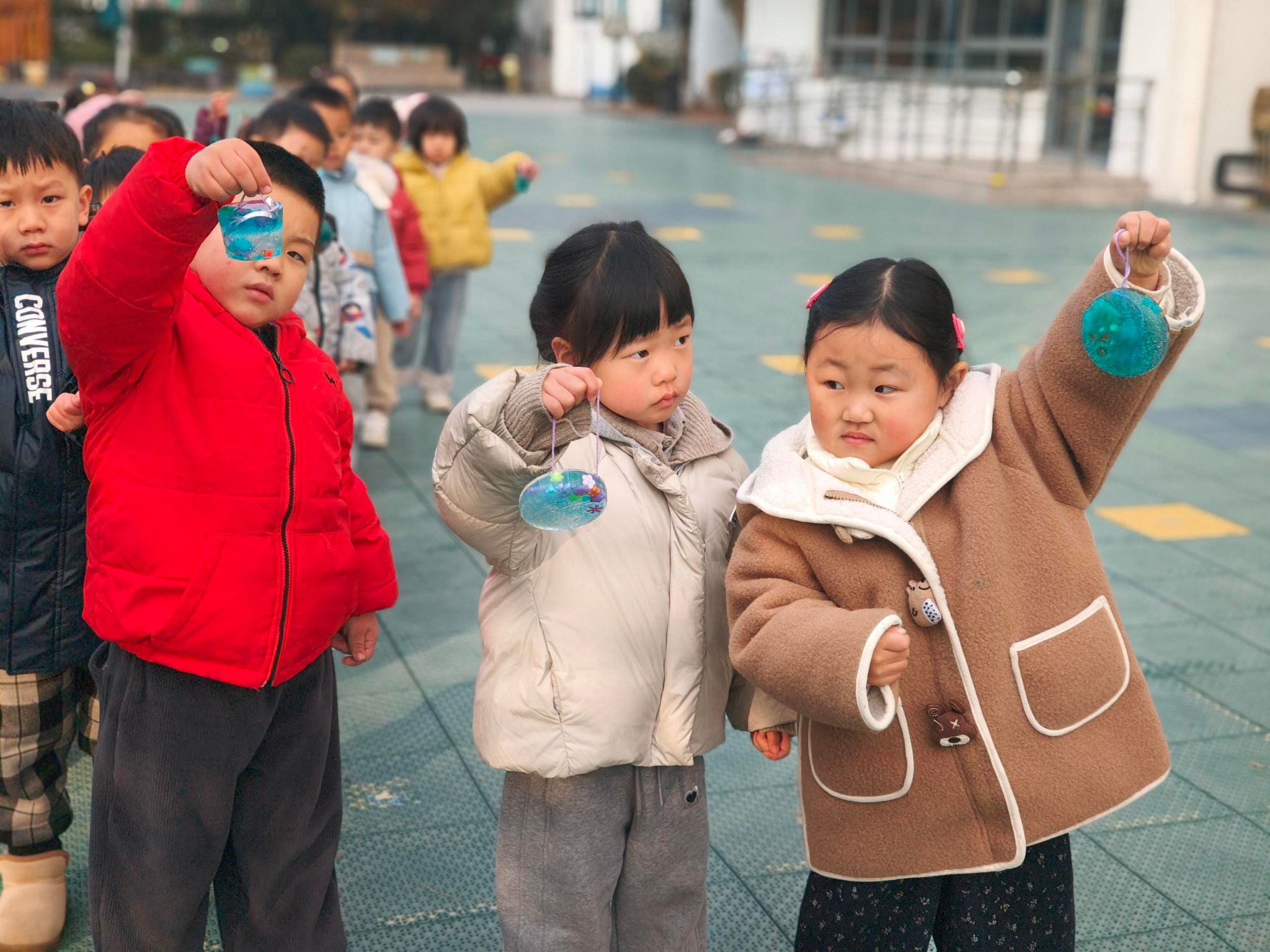 今天天气很冷,我们一起冻了美丽的冰花,在阳光的照射下,冰花太漂亮了……