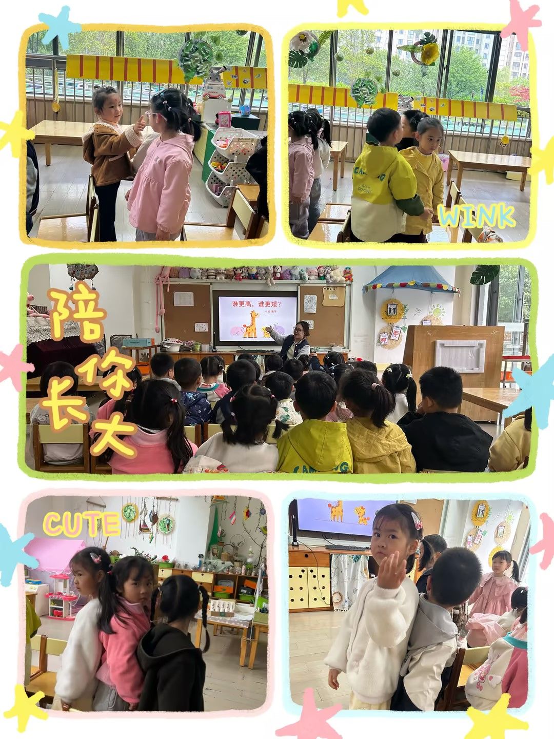 今天孩子们认识了高、矮的概念,开启了有趣的对比小探索✨小朋友先观察身边的小伙伴,两两之间比一比身高,直观感受谁高、谁矮;同时还用积木、玩偶、绘本等各类玩具物品进行对比,动手又动脑,区分物体的高矮差异。在轻松的游戏互动中,孩子们学会仔细观察、大胆表达,理解高矮是相对的概念,也愿意主动和同伴交流分享自己的发现。