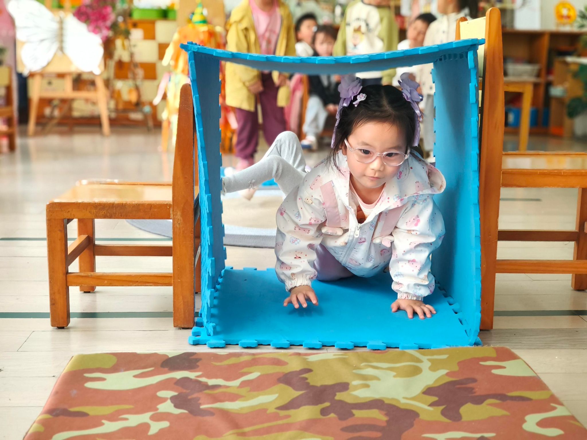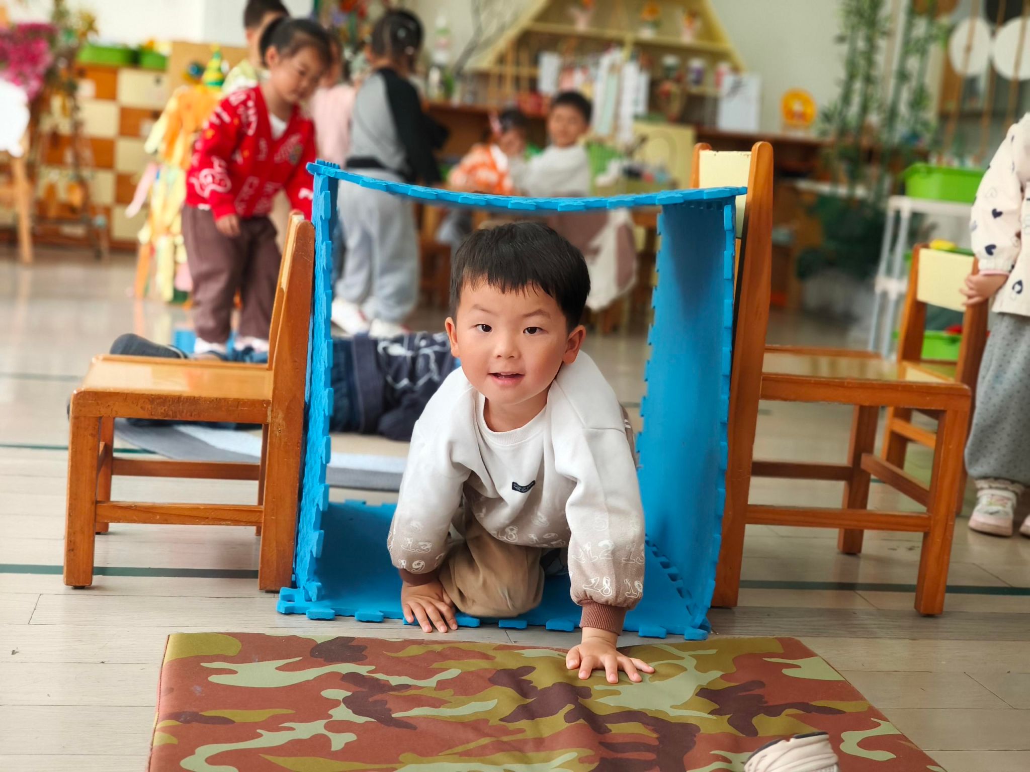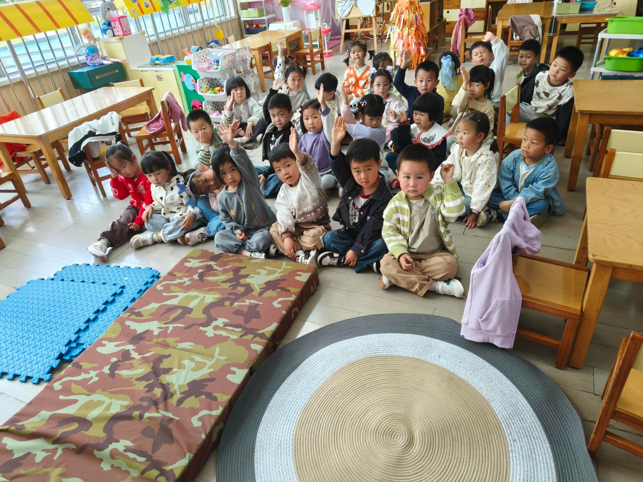 本周我们一起上关于垫子的班本课程,今天我们一起认识了垫子,知道垫子有薄、有厚、有方、有圆等,我们还一起摆垫子一起进行游戏呢。