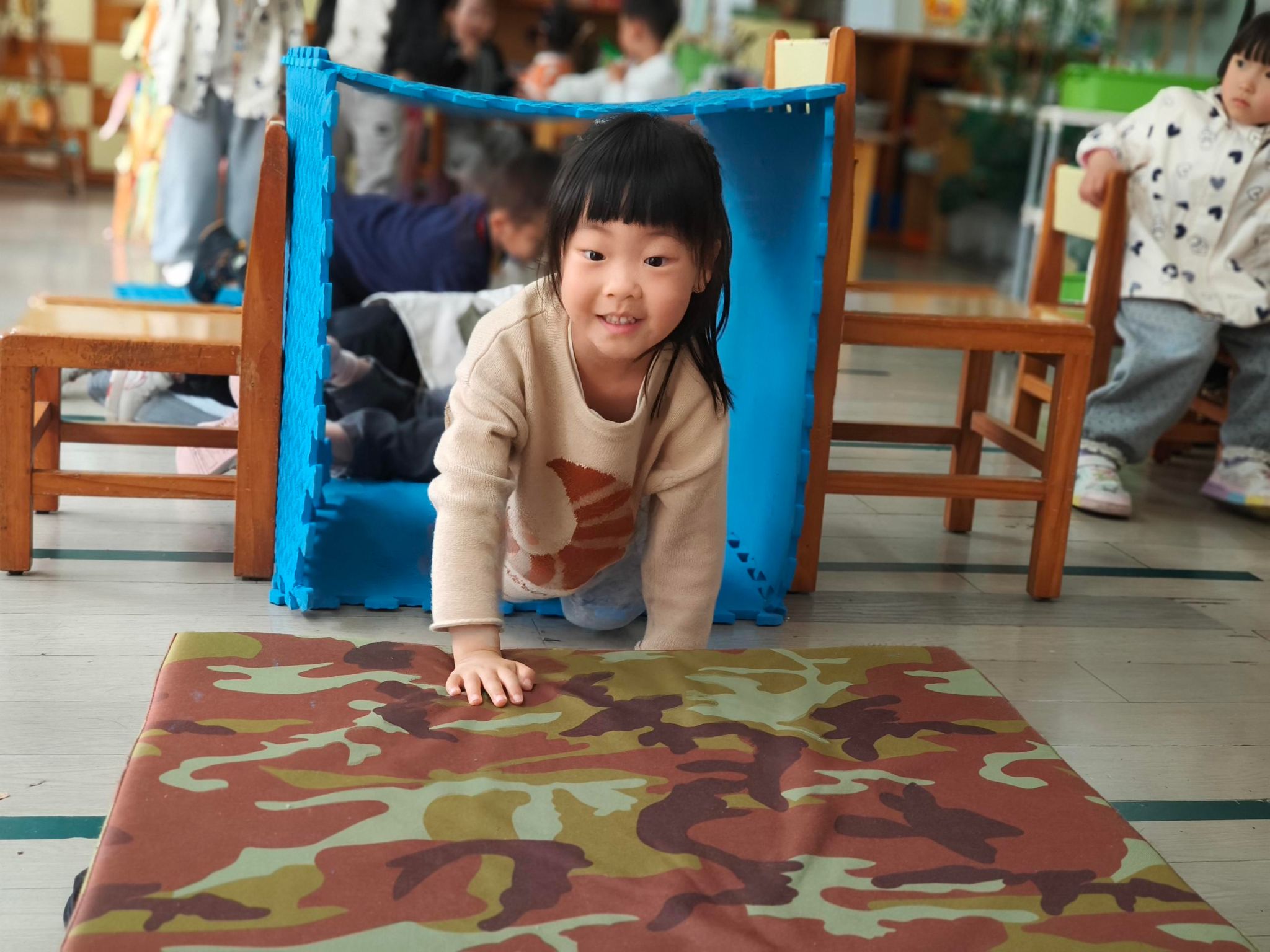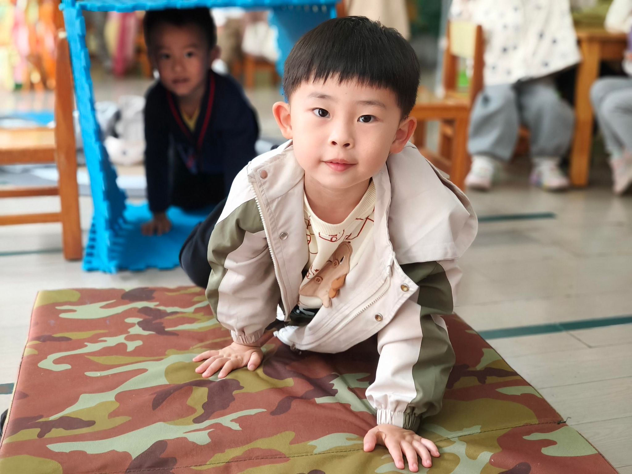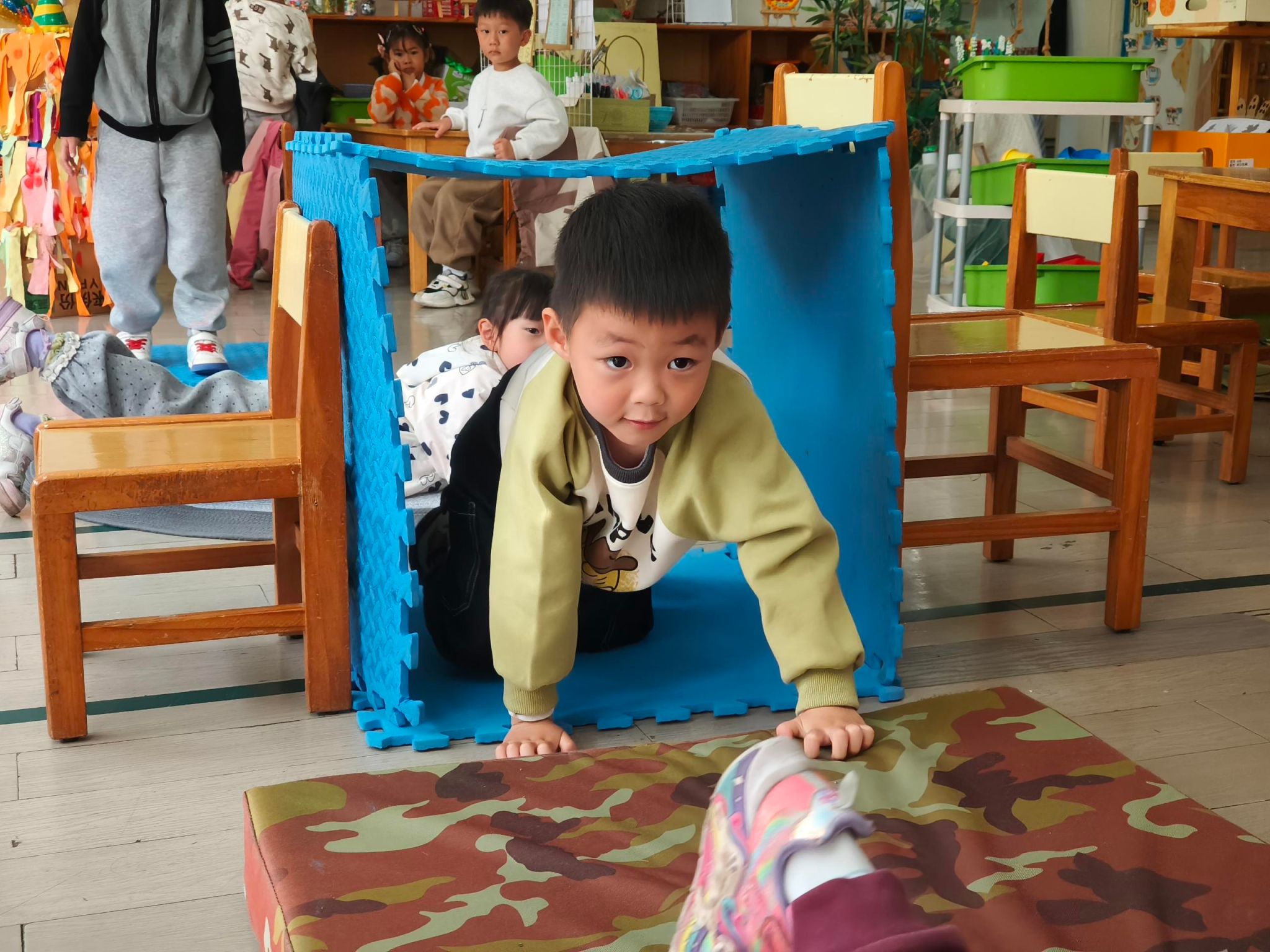 本周我们一起上关于垫子的班本课程,今天我们一起认识了垫子,知道垫子有薄、有厚、有方、有圆等,我们还一起摆垫子一起进行游戏呢。