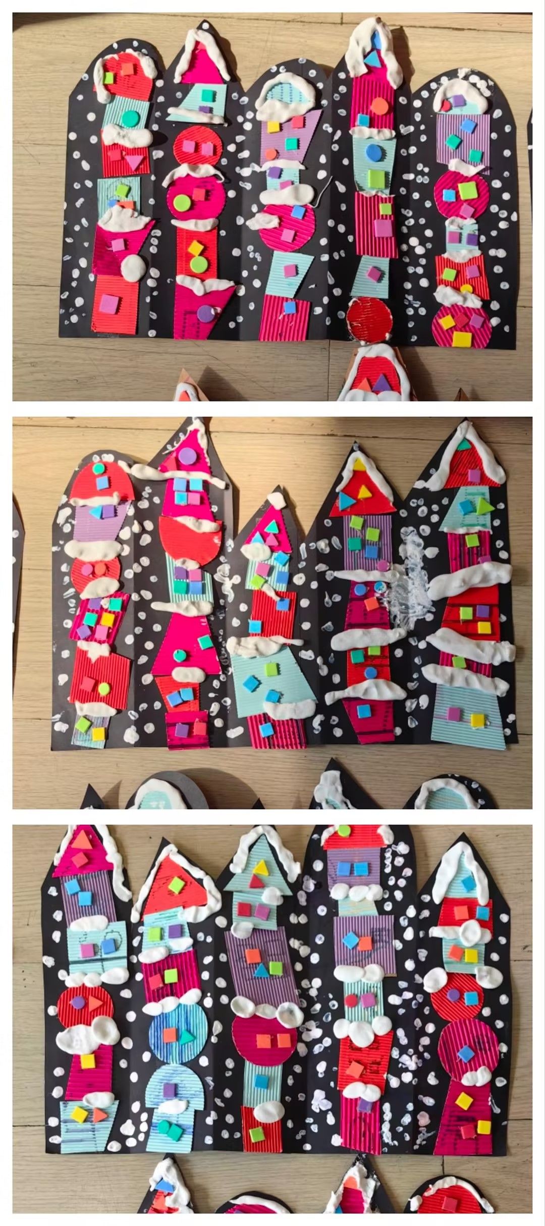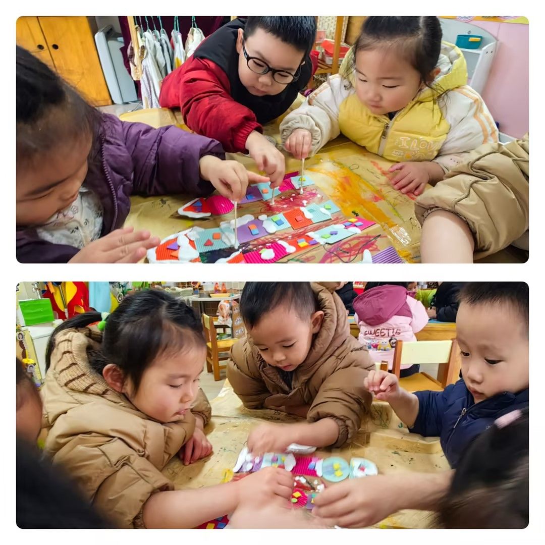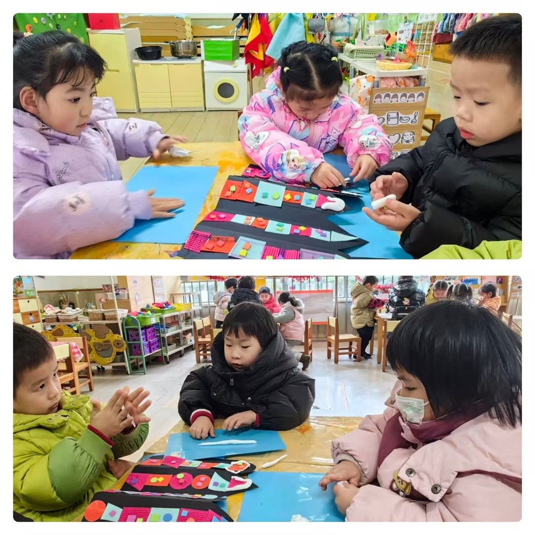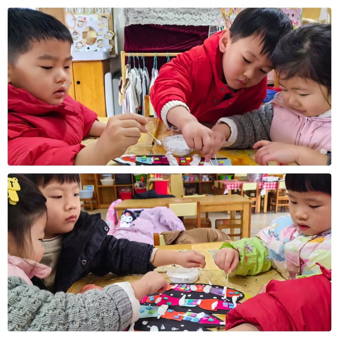美术活动《雪花飘飘》中,孩子们兴致勃勃地用粘土捏塑、颜料点缀,为房屋模型创作“雪花”。他们专注地粘贴、涂抹,在动手实践中感受冬日氛围,体验创作乐趣。