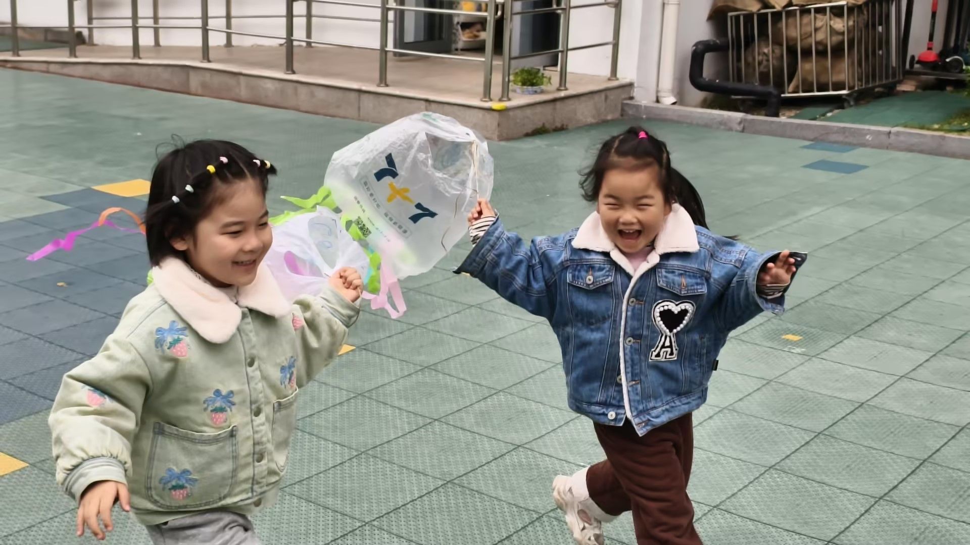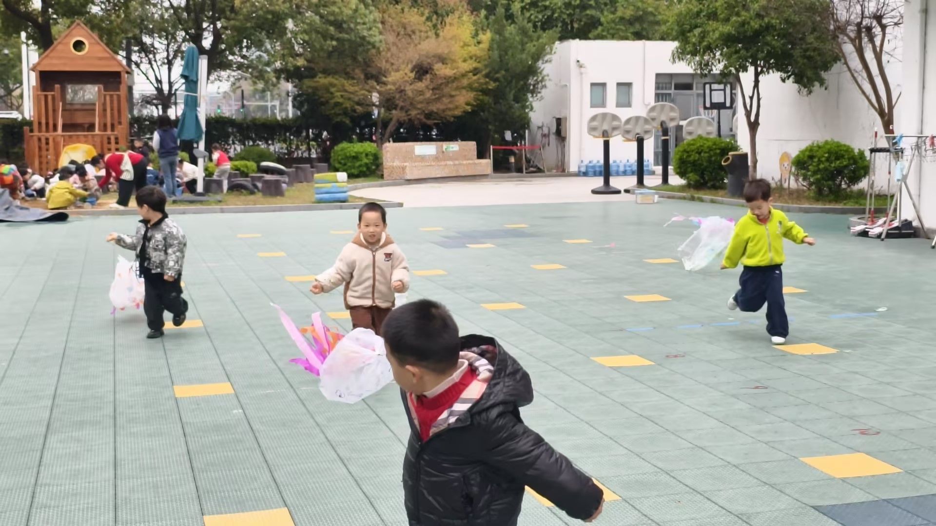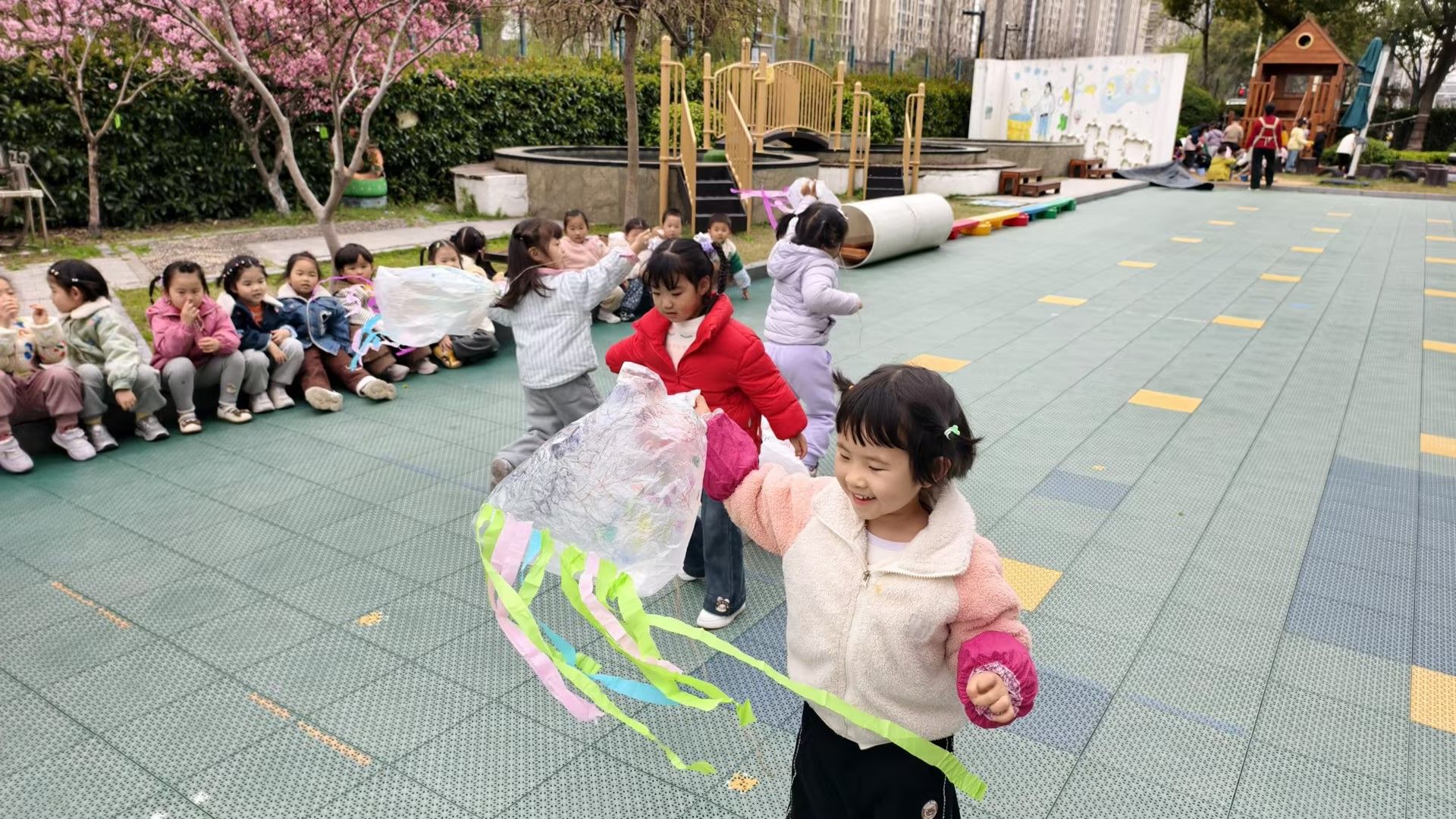 从绘制到粘贴,再到放飞~孩子们体会到了合作的乐趣与创造的成就感。在绘制环节,叽叽喳喳的讨论声里满是兴奋。当风筝终于做好,来到户外准备放飞时,孩子们更是激动不已。他们拉着线迎着风跑,看着亲手制作的水母风筝晃晃悠悠地升上天空,欢呼声此起彼伏。这一刻,他们不仅感受到了春天的美好,更在动手实践中懂得了分工合作的重要性,也体验到了从无到有创造出一件作品的奇妙与喜悦。