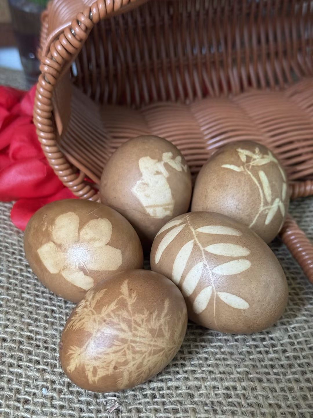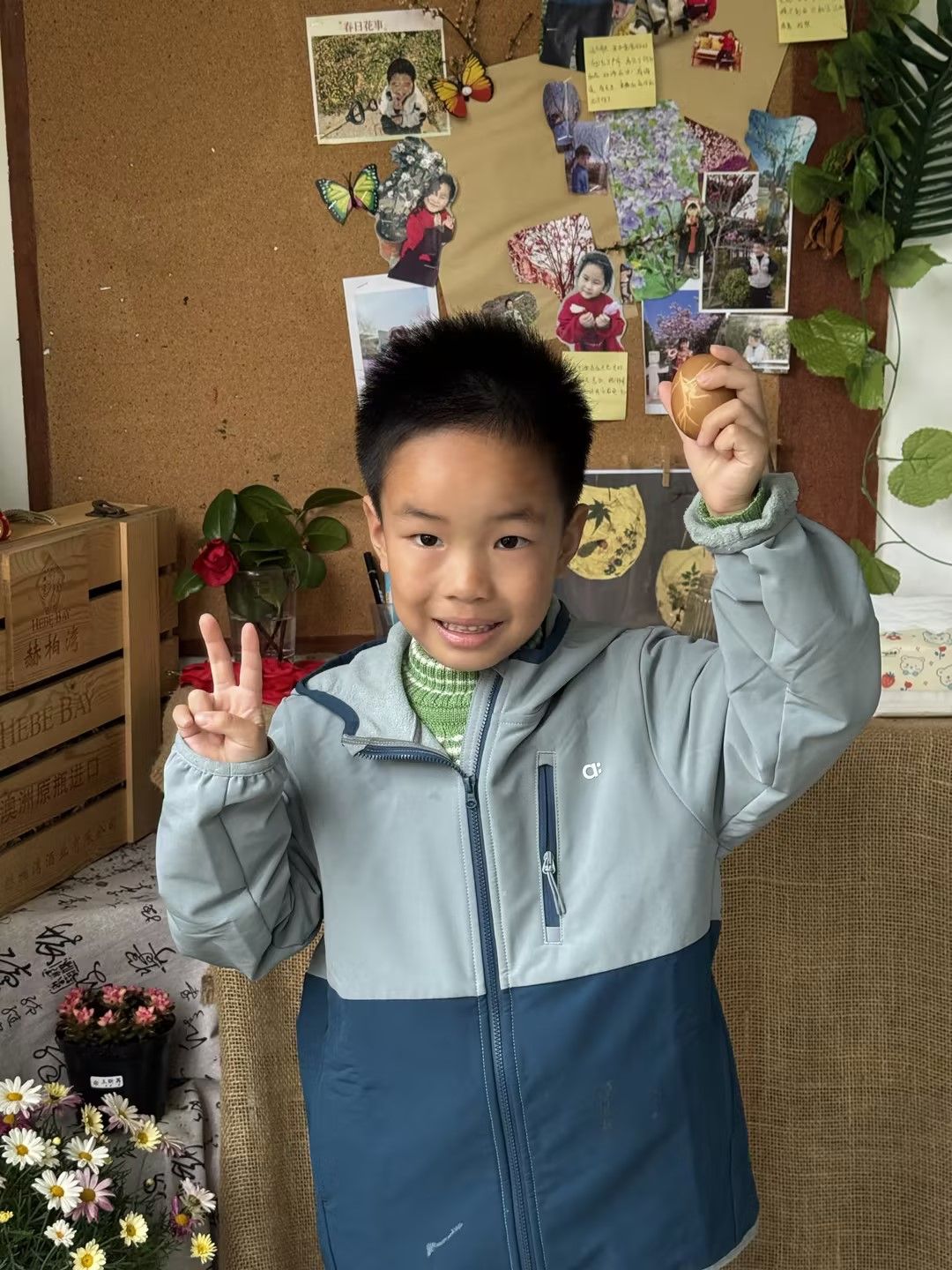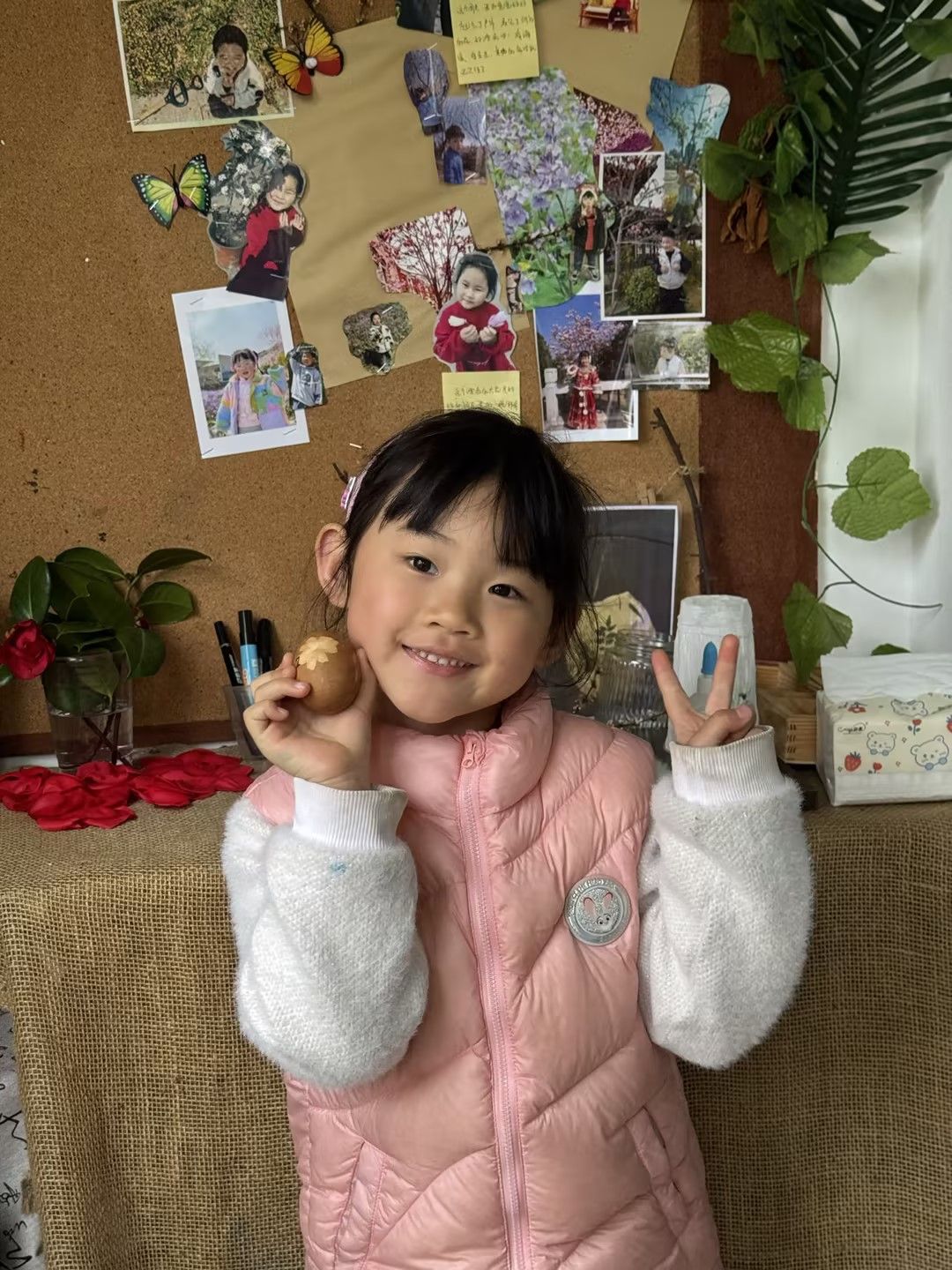 清明时节,中班的小朋友们化身小小美食家,开展了花草蛋制作活动。孩子们采摘新鲜花草,在老师的帮助下,将春日美好包裹进蛋壳里。一枚枚印着花草纹路的彩蛋诞生,既感受了传统习俗,又留住了春天的味道。
