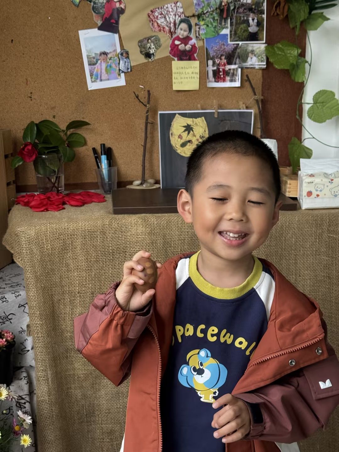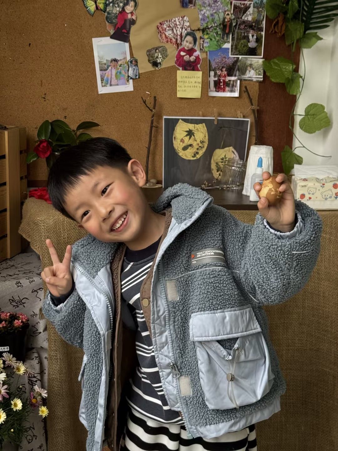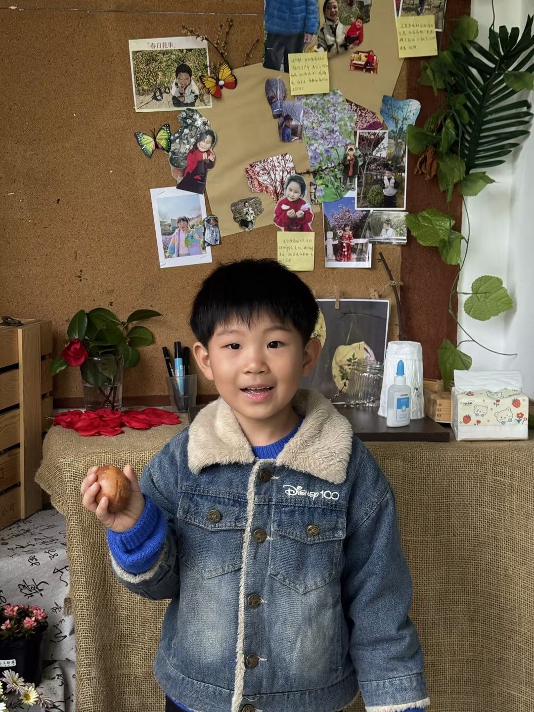清明时节,中班的小朋友们化身小小美食家,开展了花草蛋制作活动。孩子们采摘新鲜花草,在老师的帮助下,将春日美好包裹进蛋壳里。一枚枚印着花草纹路的彩蛋诞生,既感受了传统习俗,又留住了春天的味道。